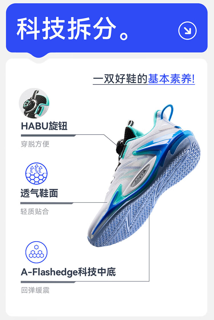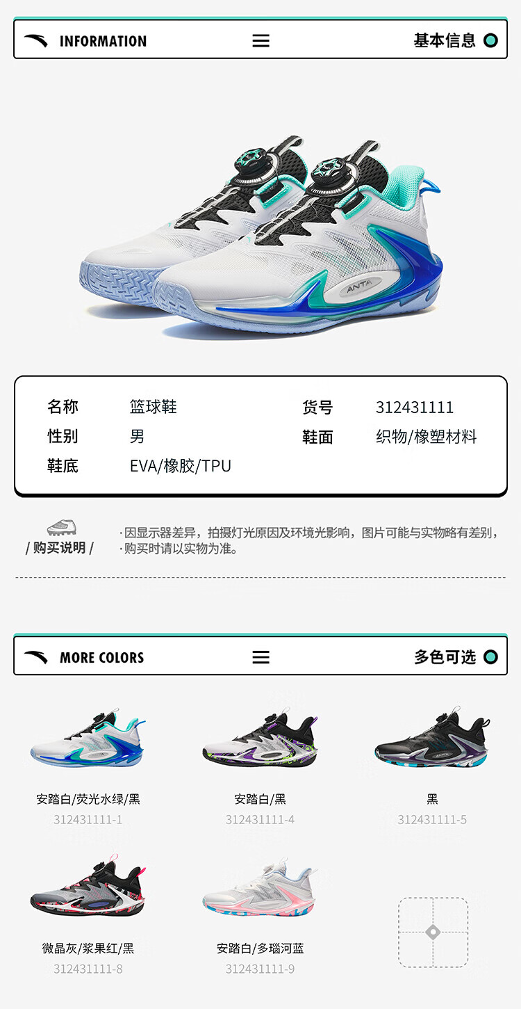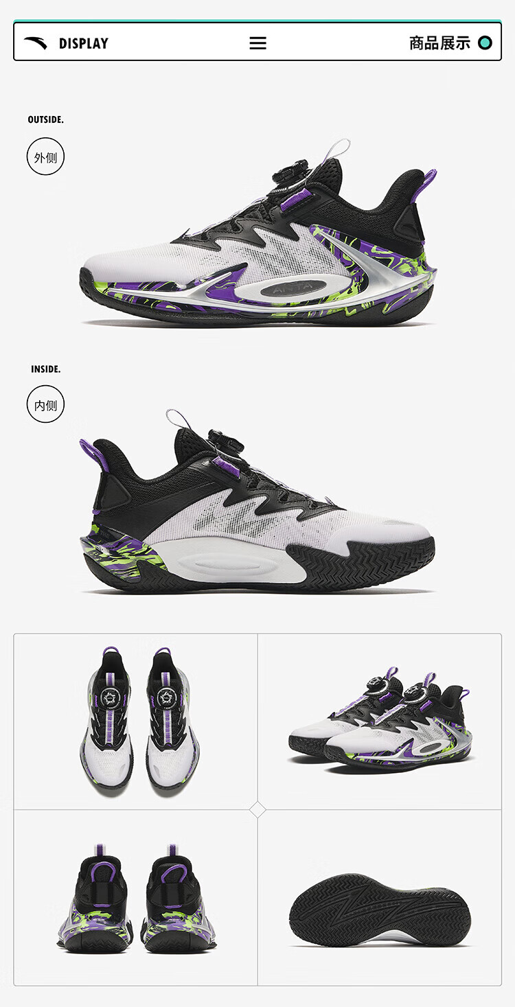 安踏儿童运动鞋男大童旋钮扣低帮青狂-刺篮球鞋312431111