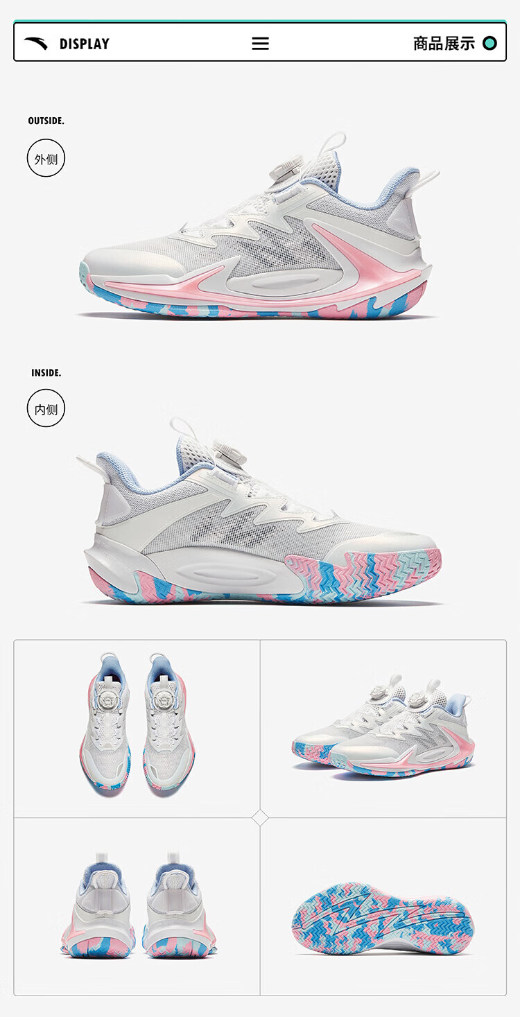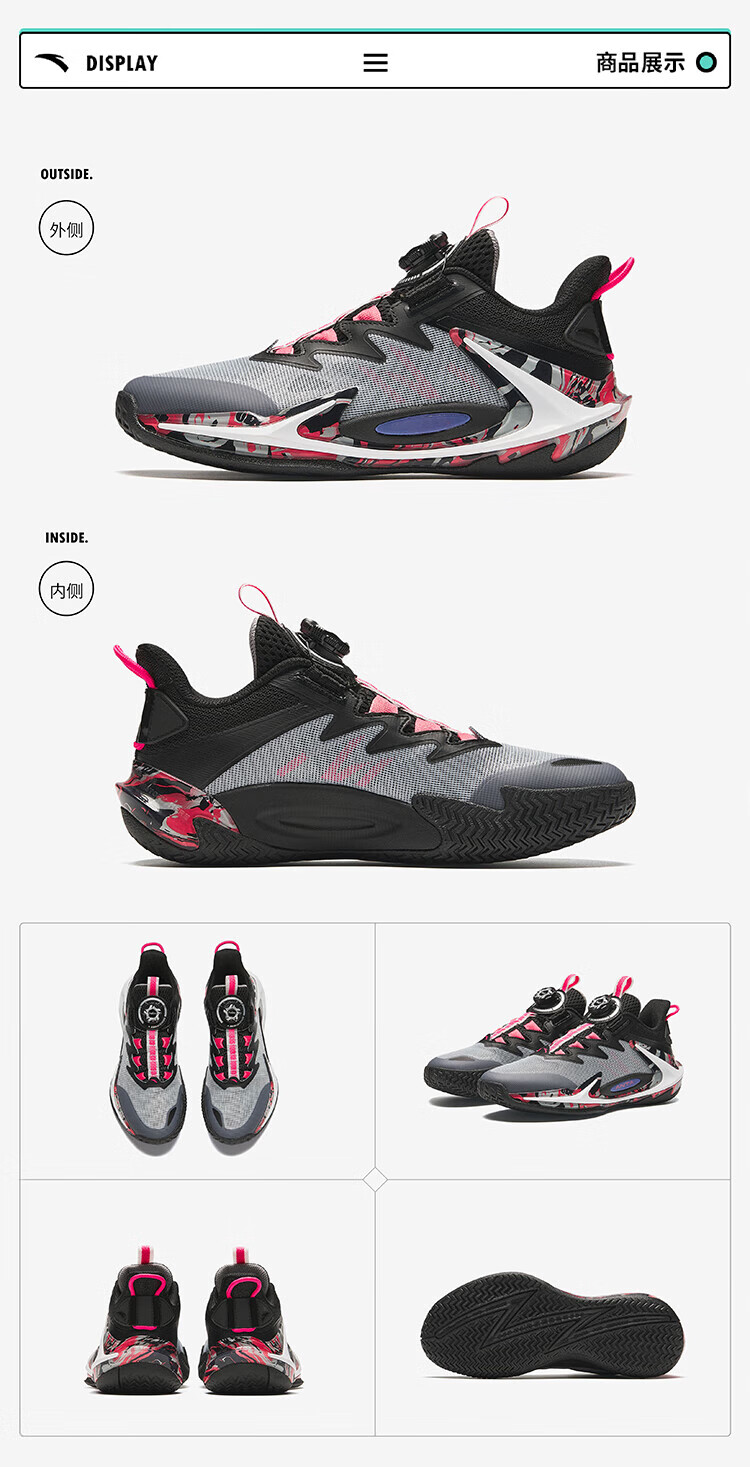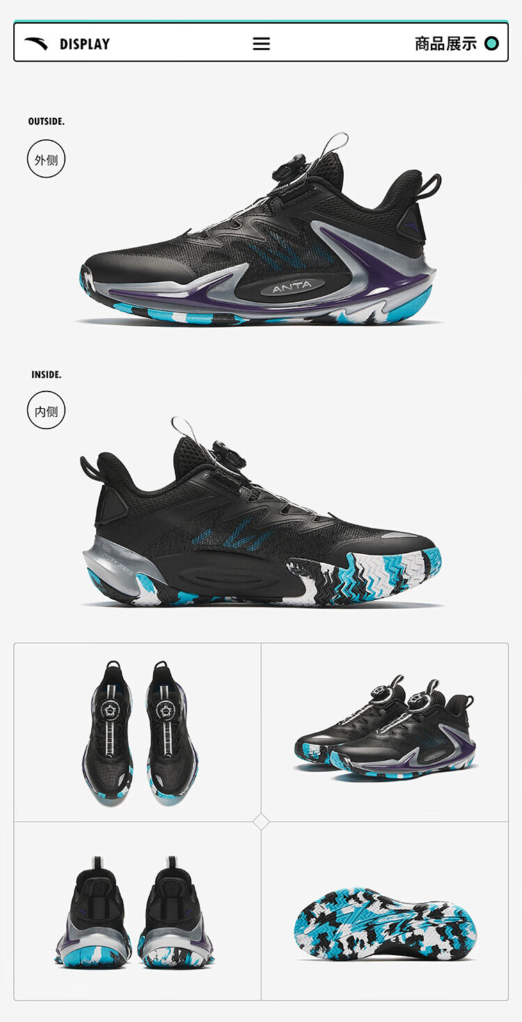 安踏儿童运动鞋男大童旋钮扣低帮青狂-刺篮球鞋312431111