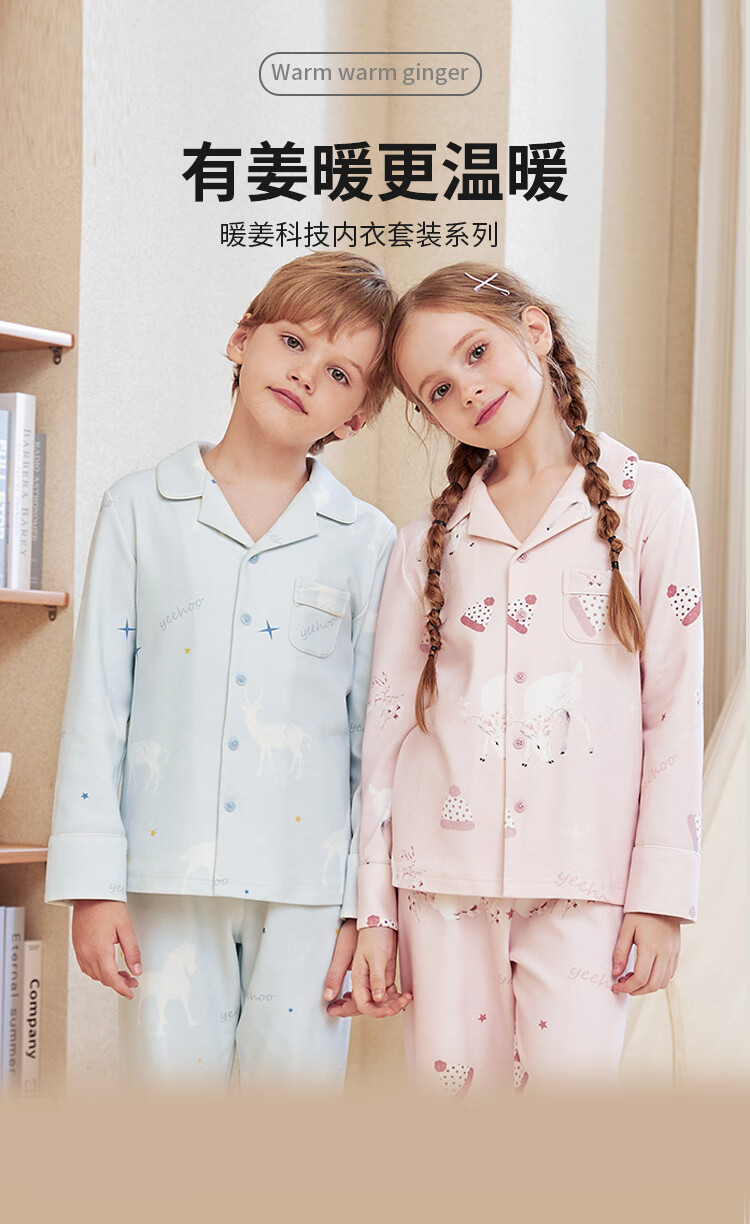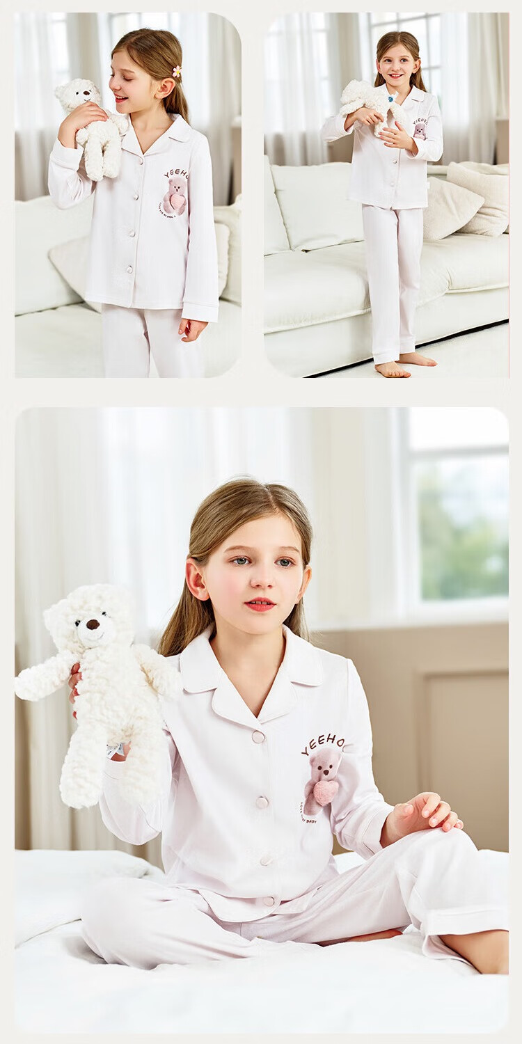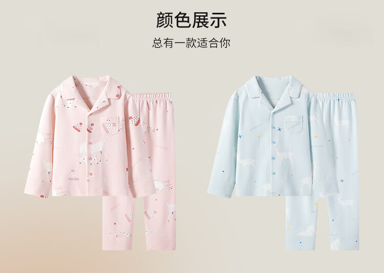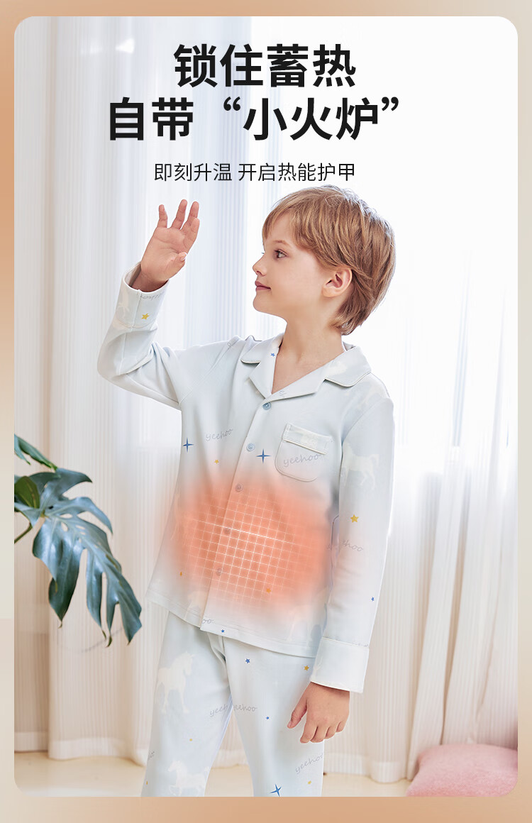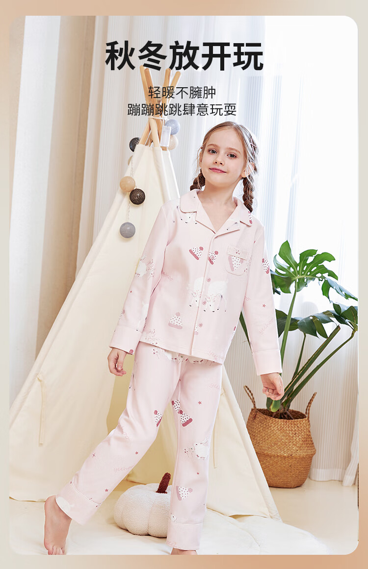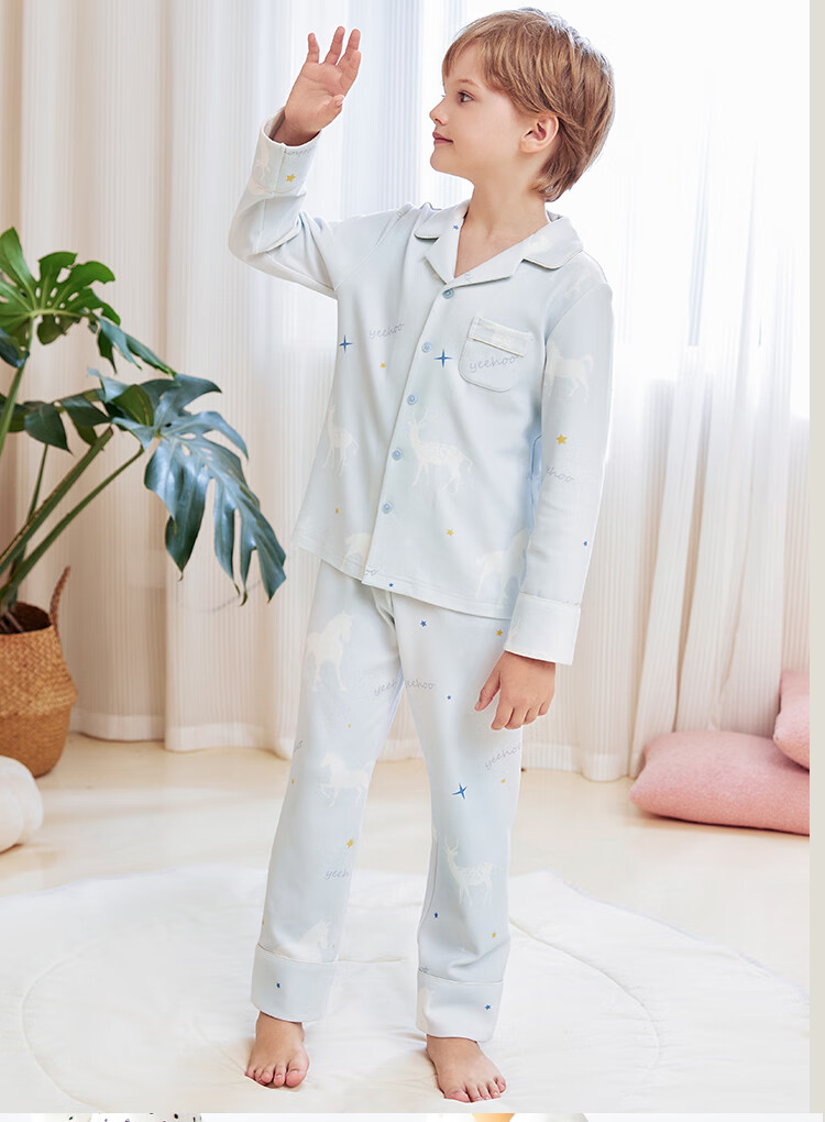 英氏儿童睡衣套装秋冬男童女童家居服套装中大童A类抑菌衣服 蓝色 (翻领) 130