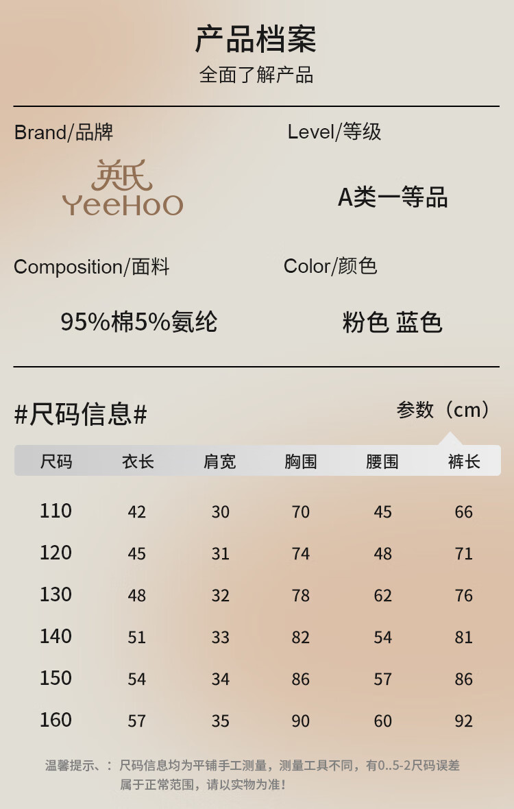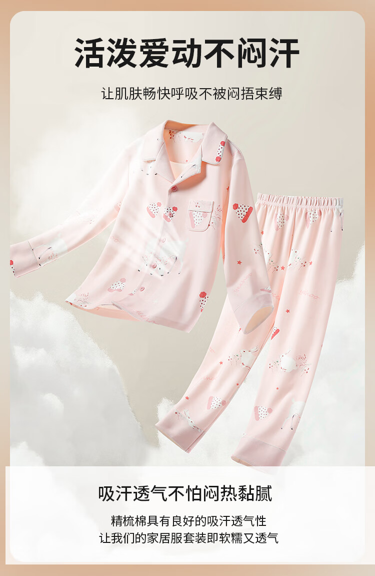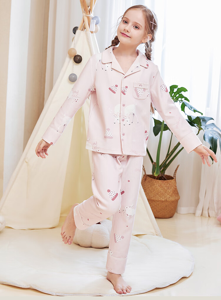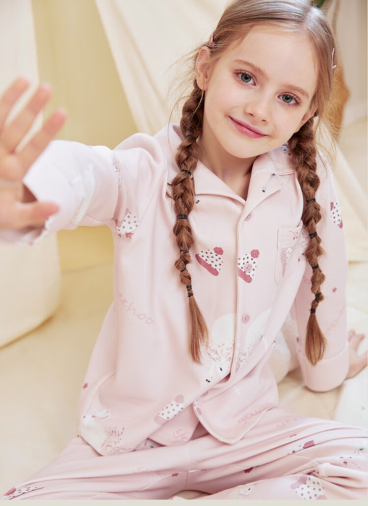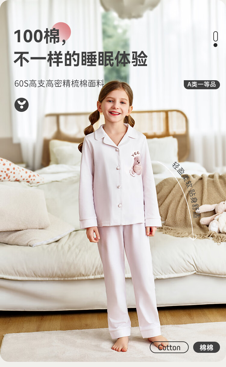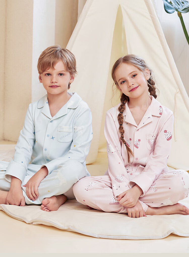 英氏儿童睡衣套装秋冬男童女童家居服套装中大童A类抑菌衣服 蓝色 (翻领) 130