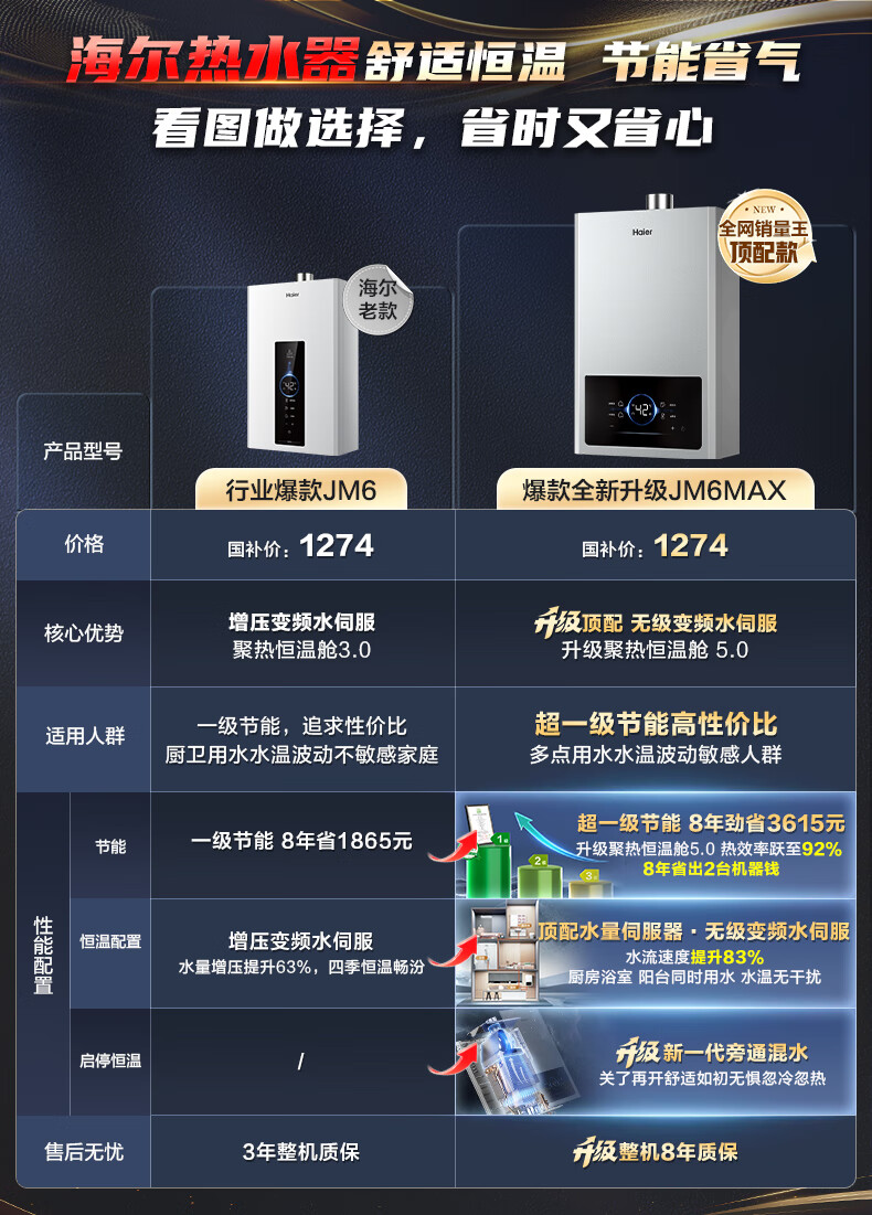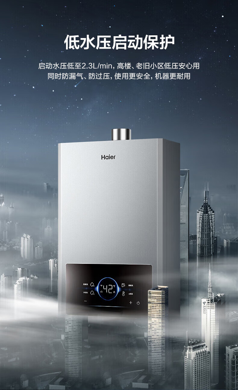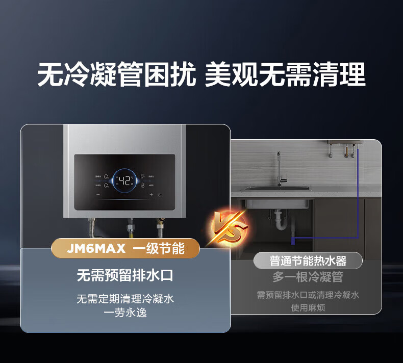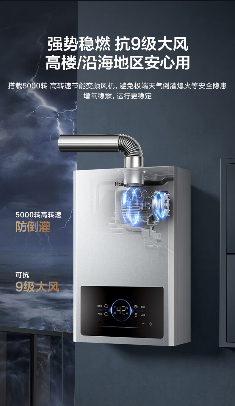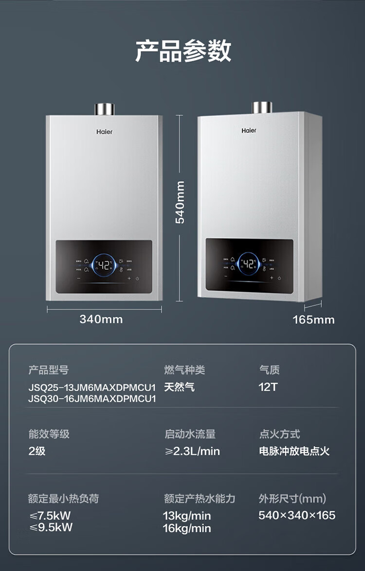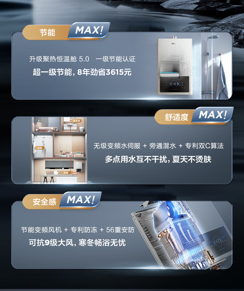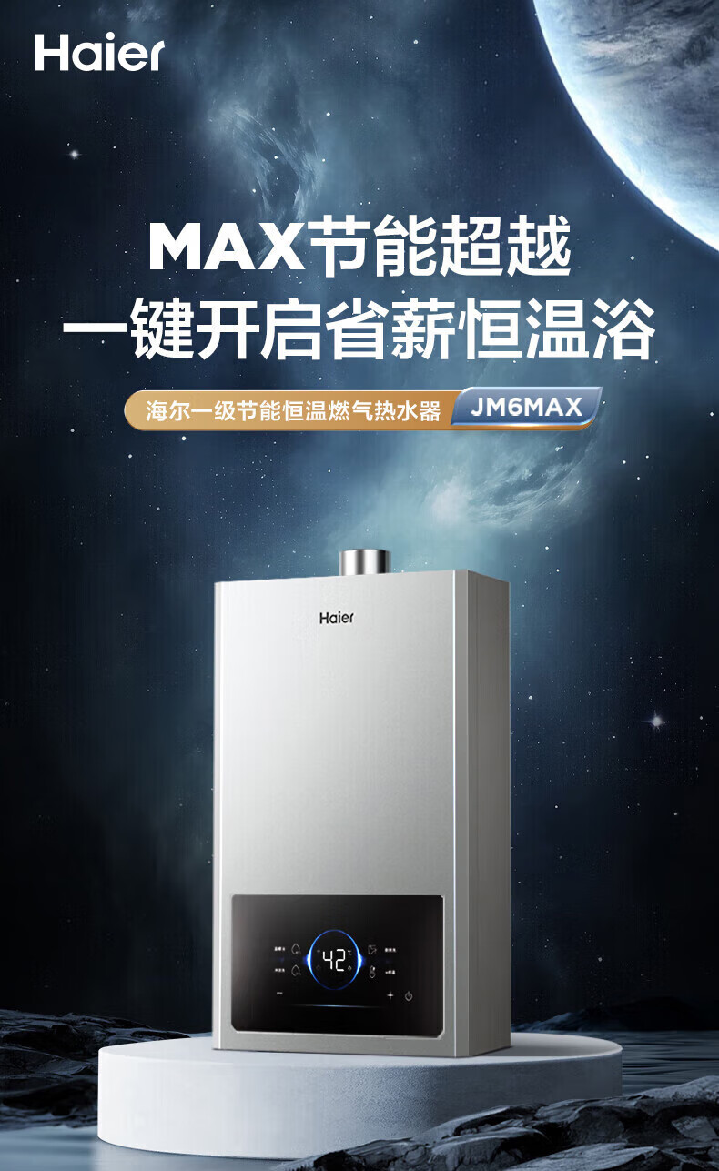 海尔燃气热水器【国补立减15%】一级节能JM6MAX真无级变频水伺服恒温 升级【整机质保8年】 16L JM6MAX多点用水,真全程恒温