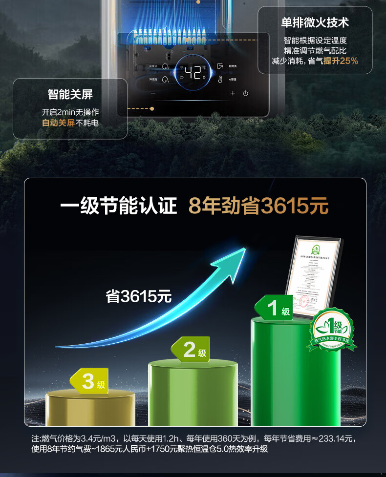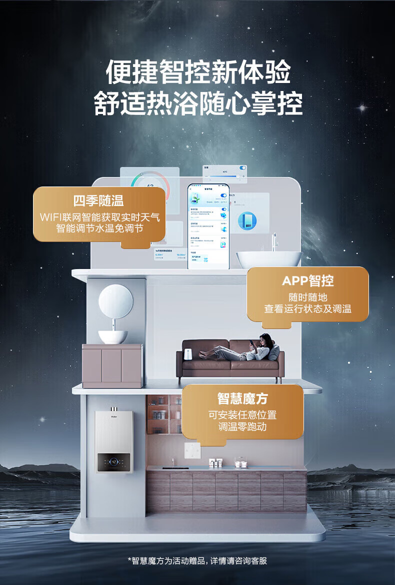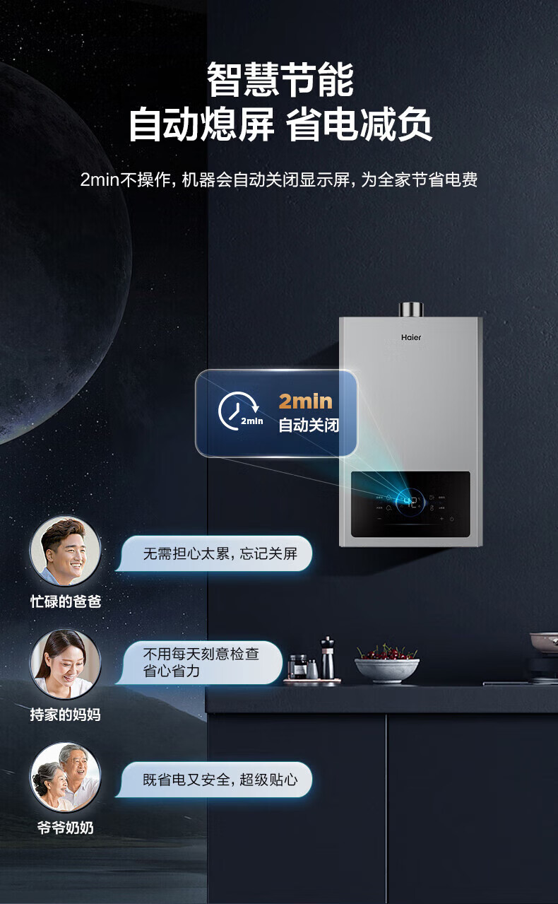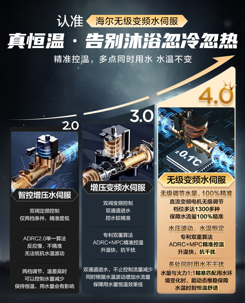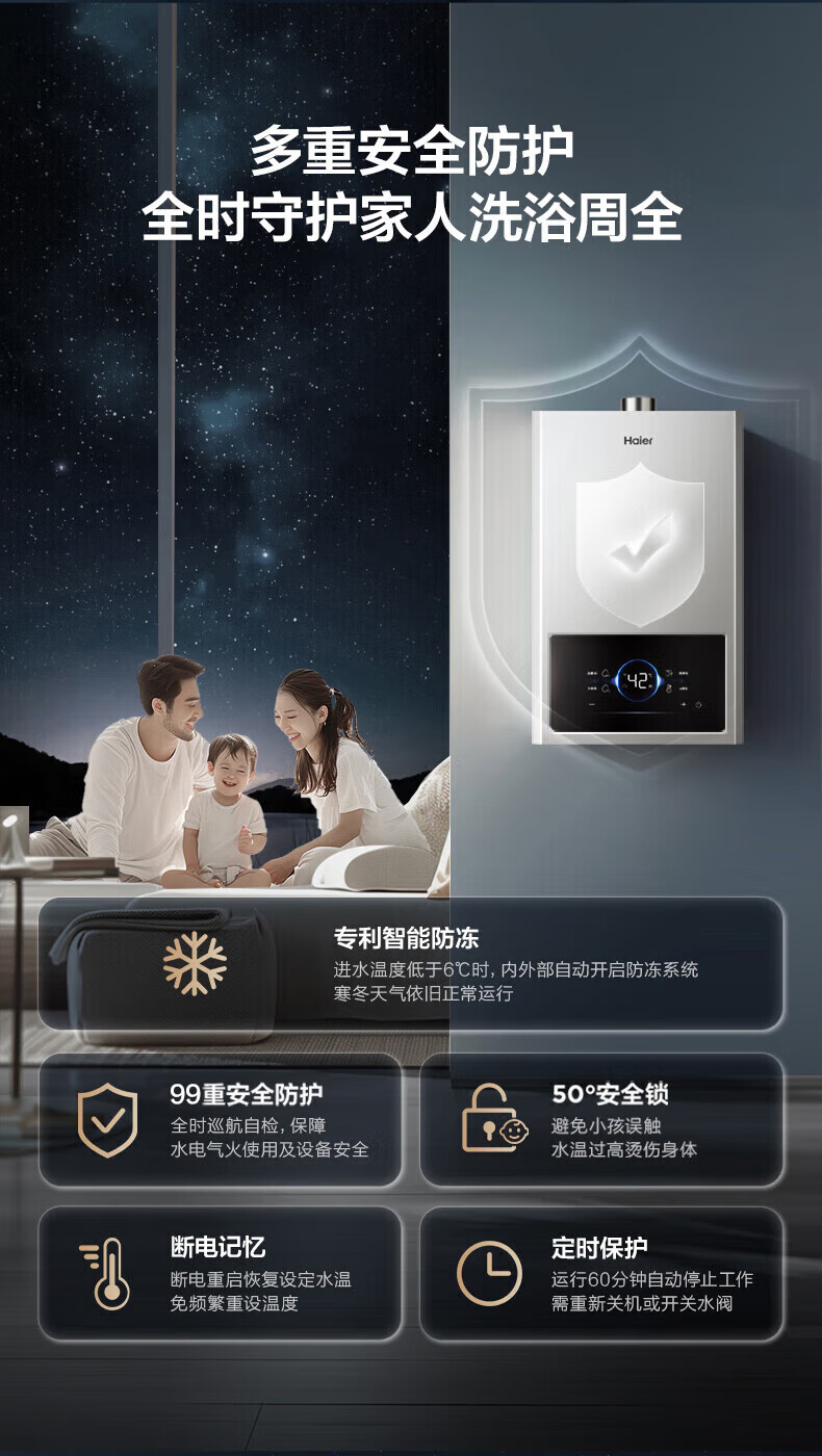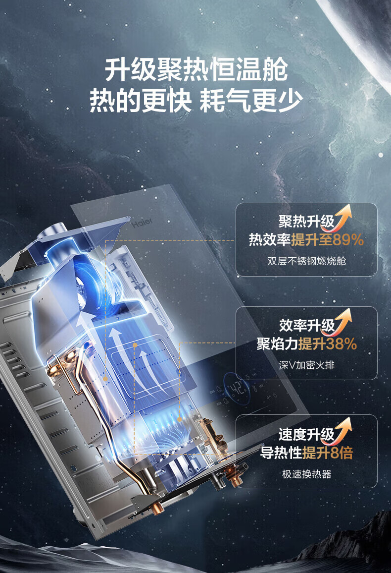 海尔燃气热水器【国补立减15%】一级节能JM6MAX真无级变频水伺服恒温 升级【整机质保8年】 16L JM6MAX多点用水,真全程恒温