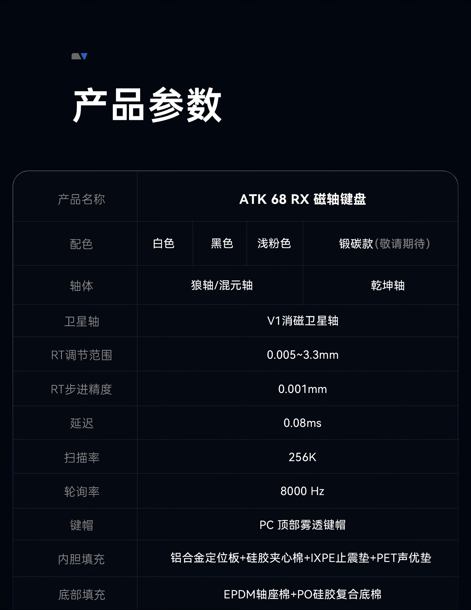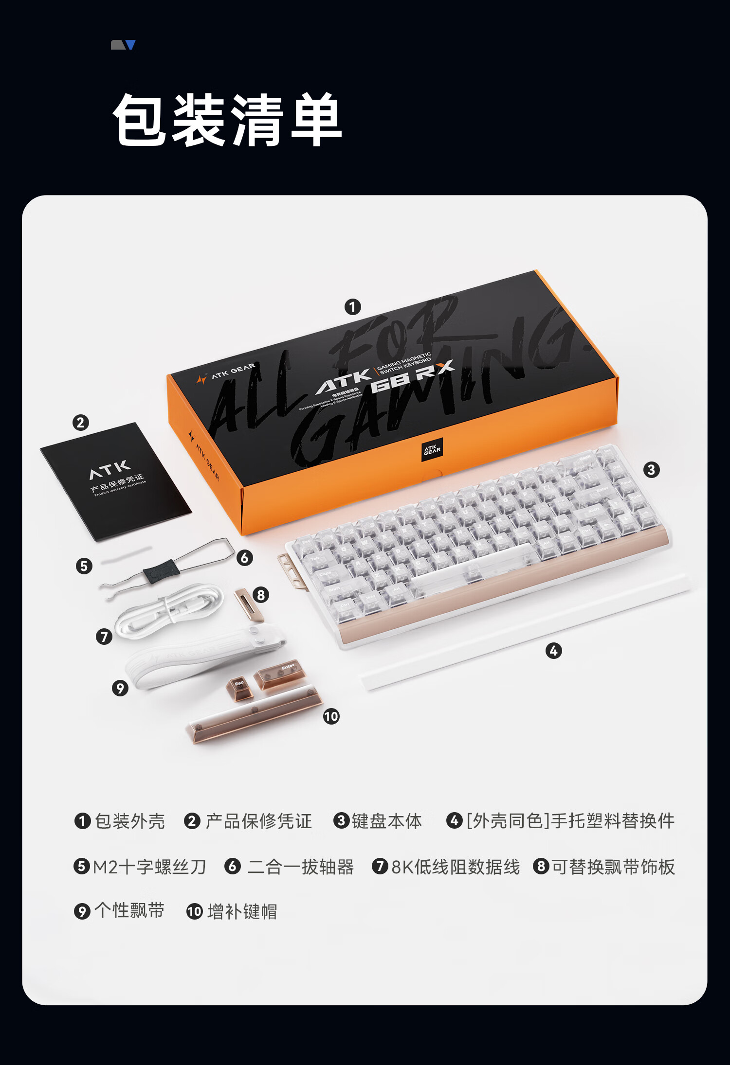 ATK68RX 磁轴键盘 有线单模 客制化电竞无畏契约 雾透键帽RT模式68键游戏办公机械键盘 白色-混元轴