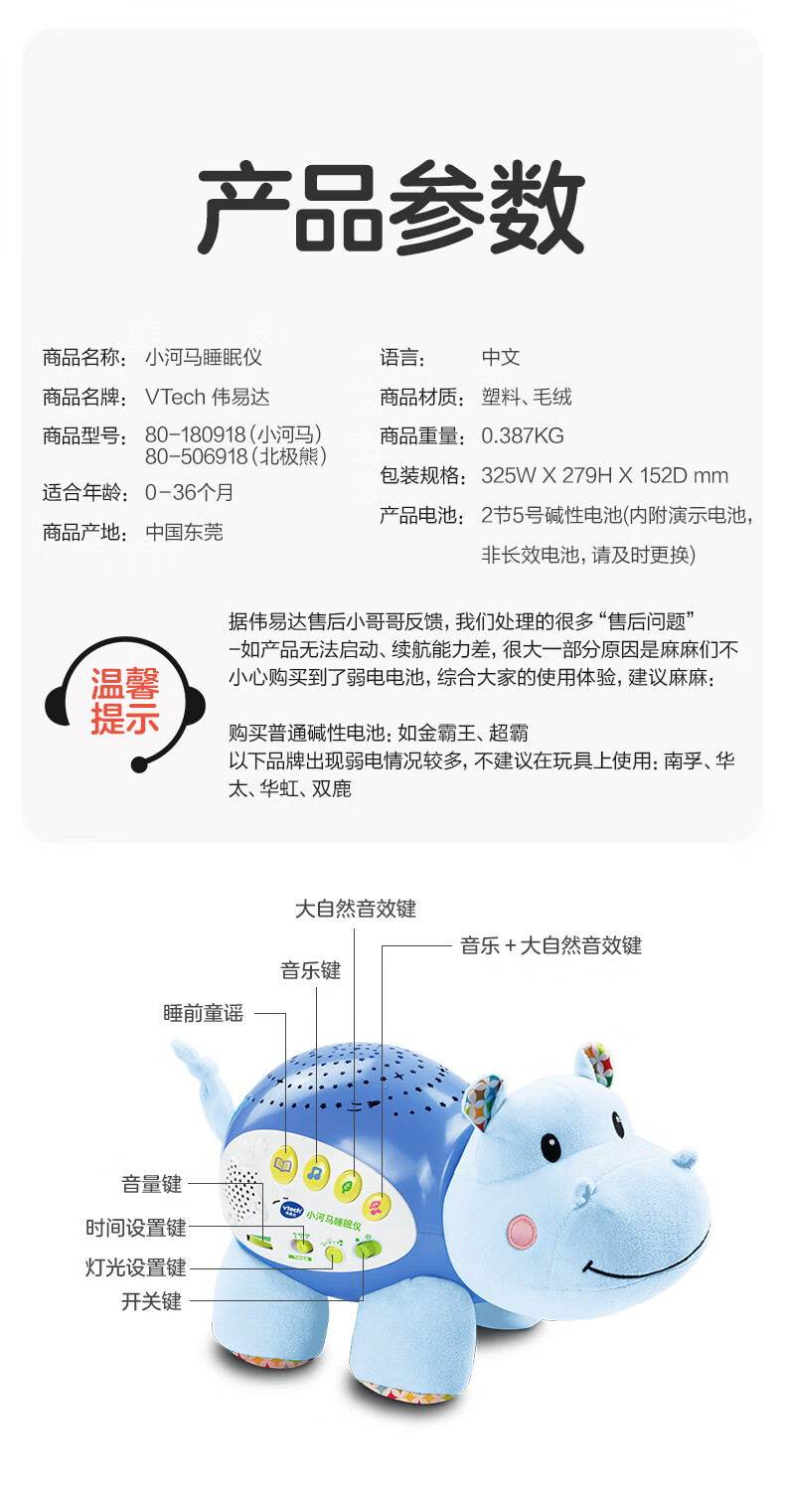 伟易达(Vtech)婴儿玩具小河马睡眠仪北极熊玩偶安抚哄睡新生宝宝生日礼物 小河马睡眠仪【0M+】