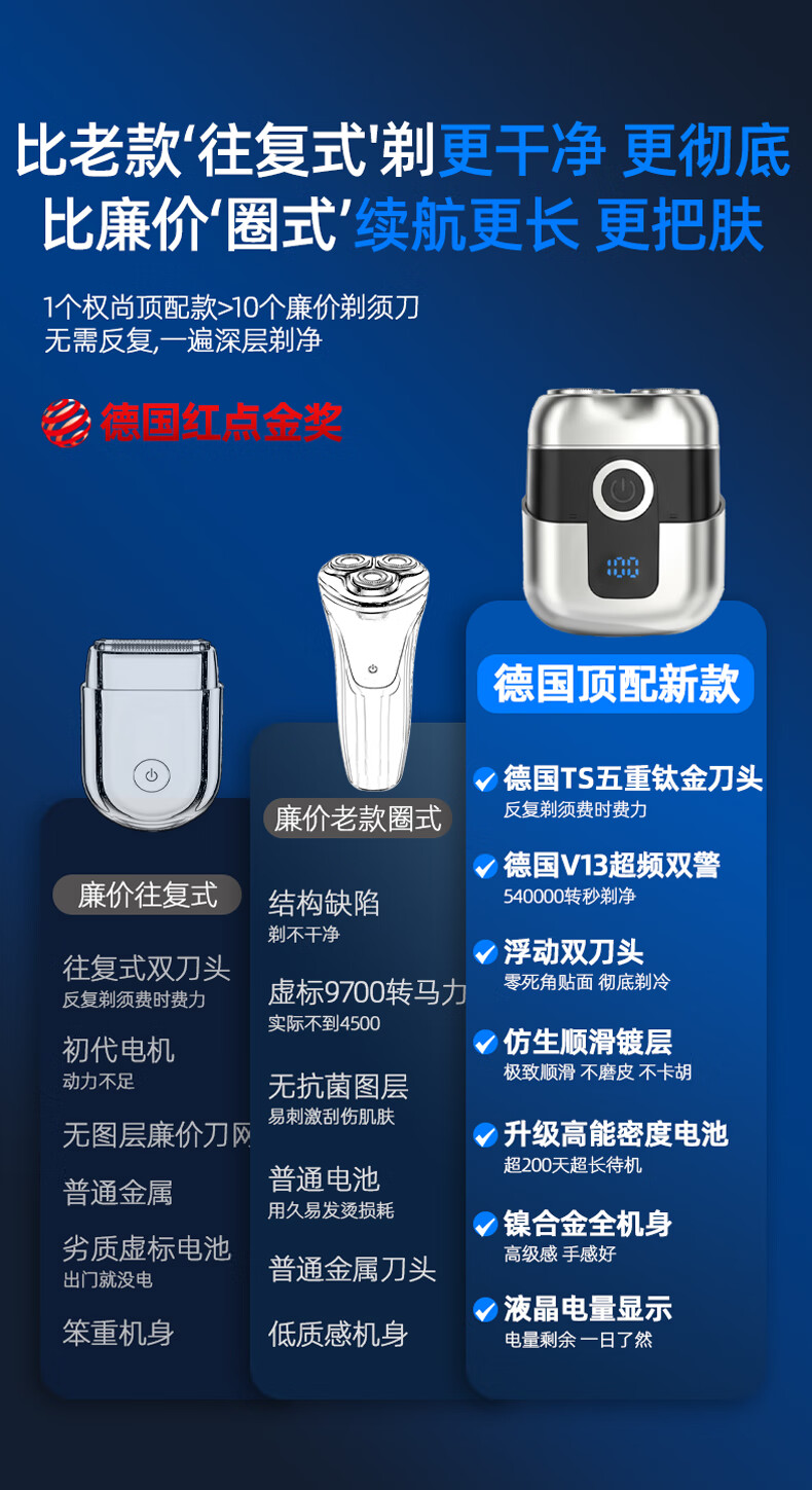 小洁匠选德国精工电动剃须刀男士2025新款刮胡子刀迷你便携不留黑点小钢炮 【德国品质】10年质保售 当次日达丨百万热销丨干湿两剃丨不留黑点丨全身水洗