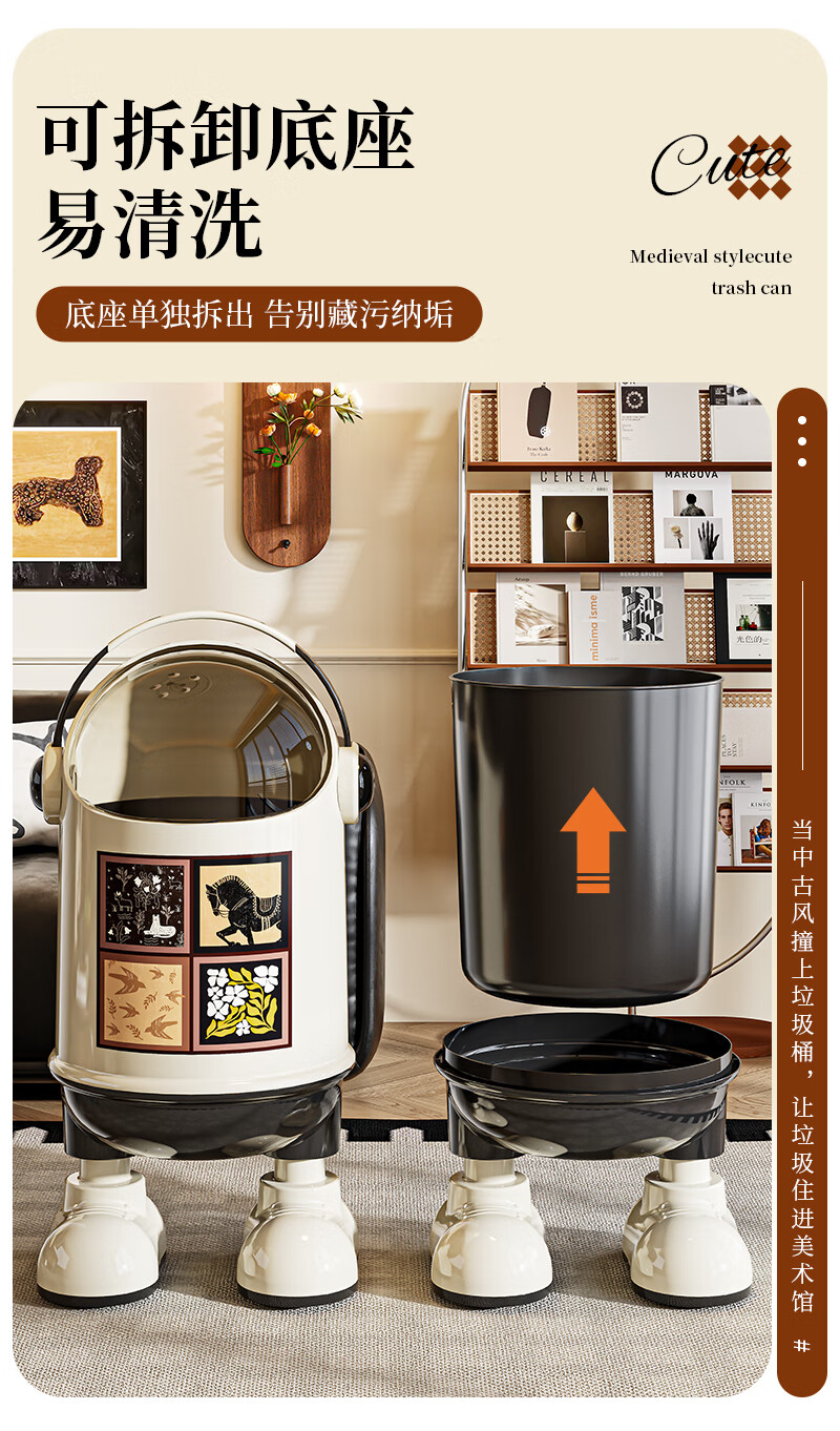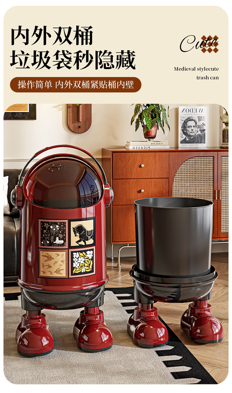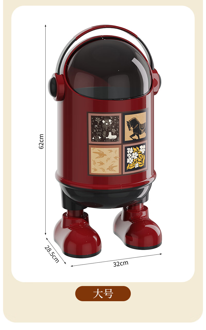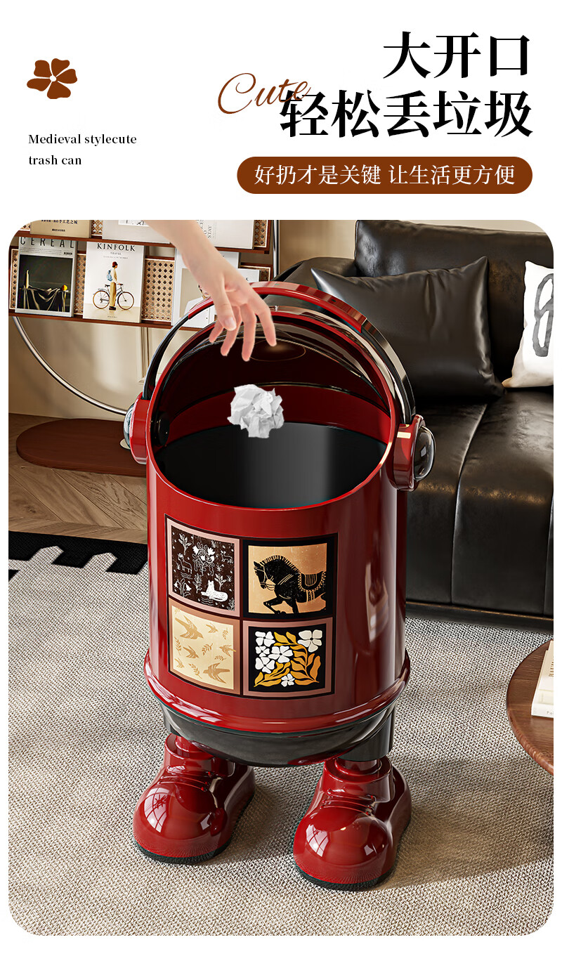 纳鸣垃圾桶客厅家用网红2025新款高颜值卧室厨房卫生间厕所大容量纸篓 酒红款【站姿】约 18L