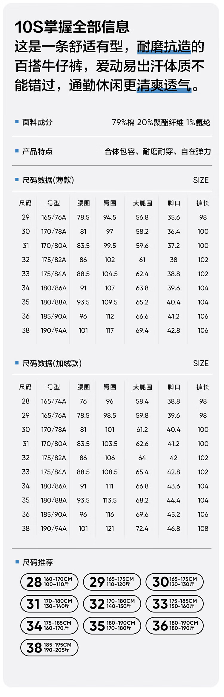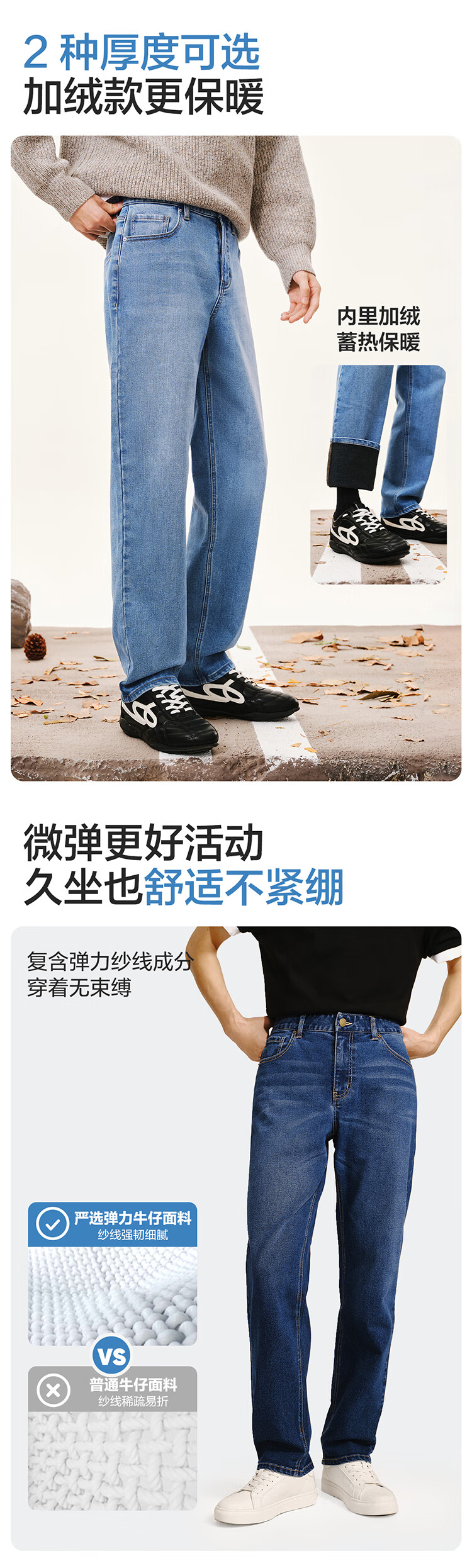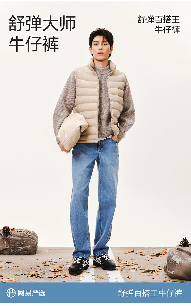 网易严选25新品舒弹大师男士牛仔裤加绒直筒亲肤透气不闷耐磨基础百搭 A款微弹合体款-牛仔浅蓝 32