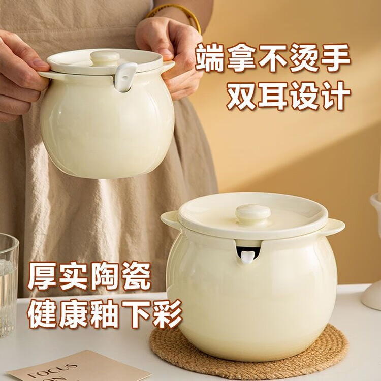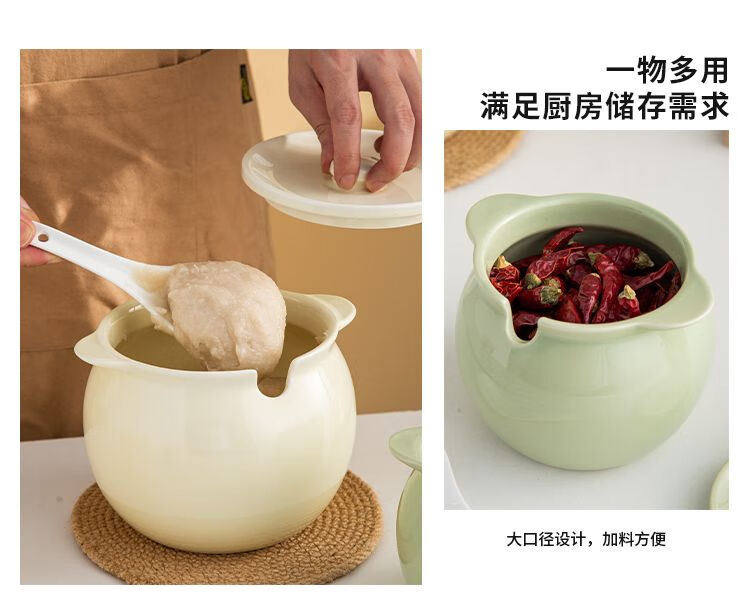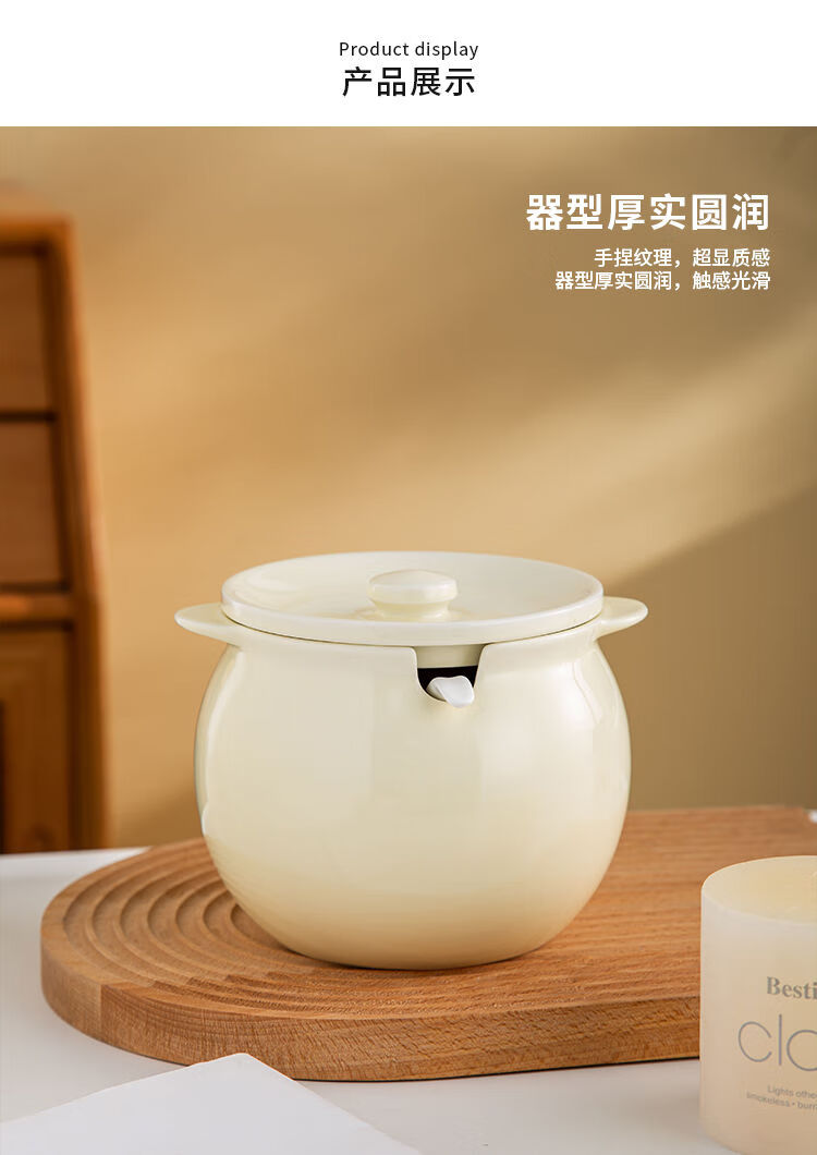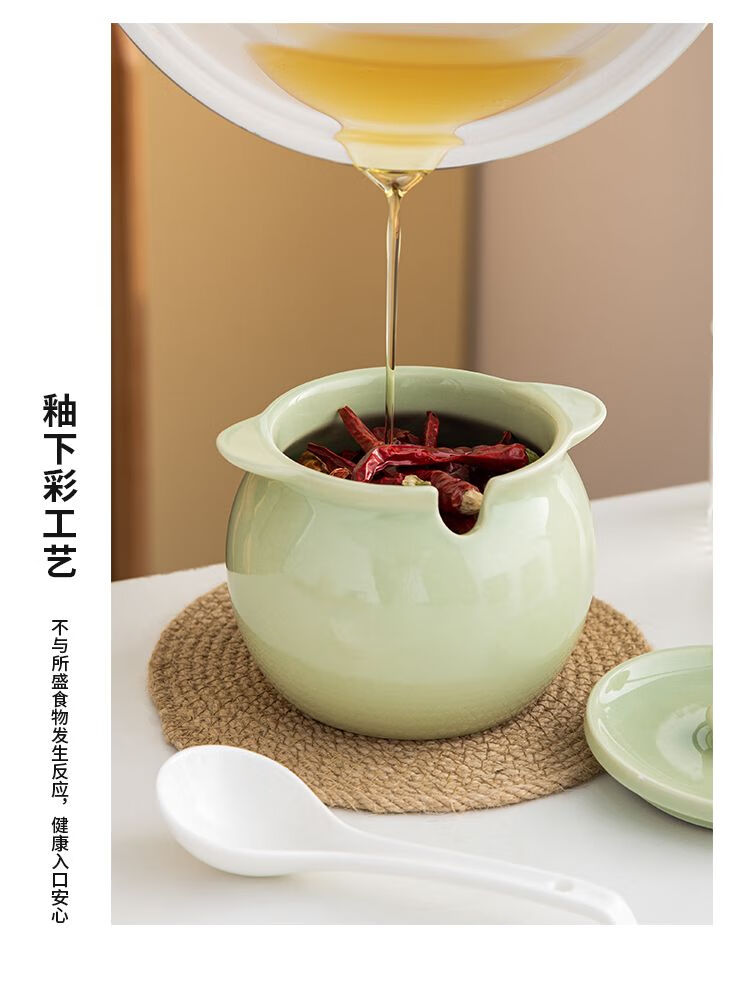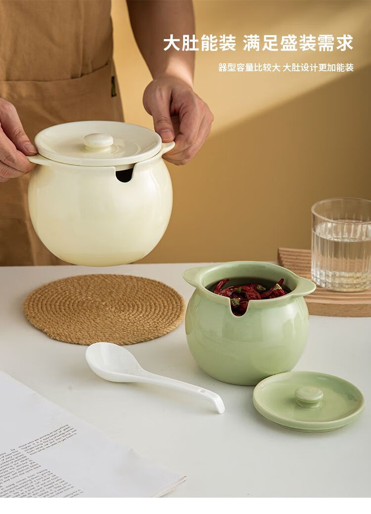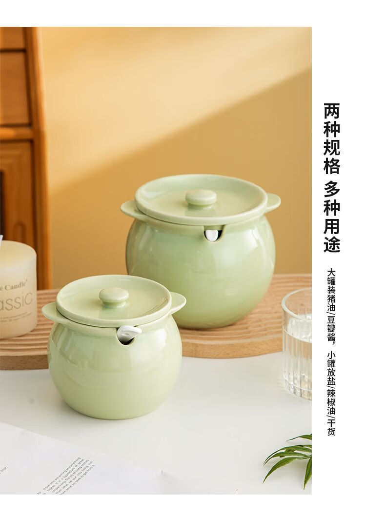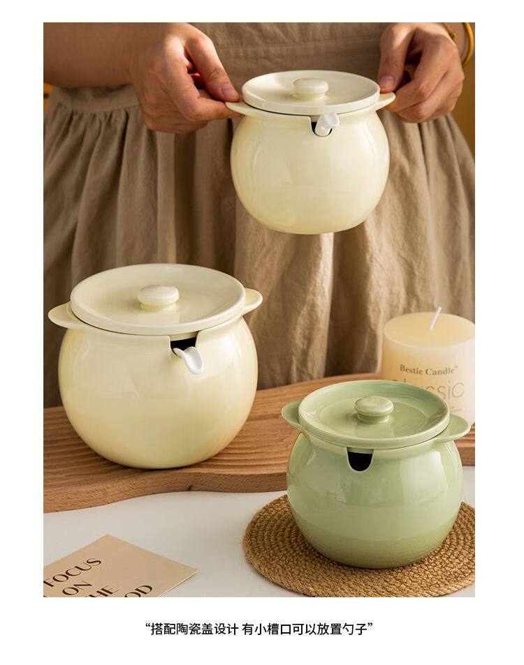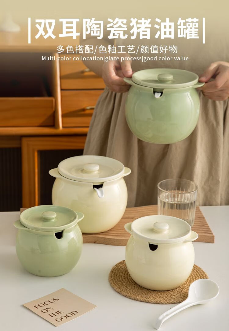 花沐禧油罐猪油罐陶瓷耐高温带盖双耳储油罐厨房油泼辣子专用罐调料罐子 奶白色大号700ml+勺