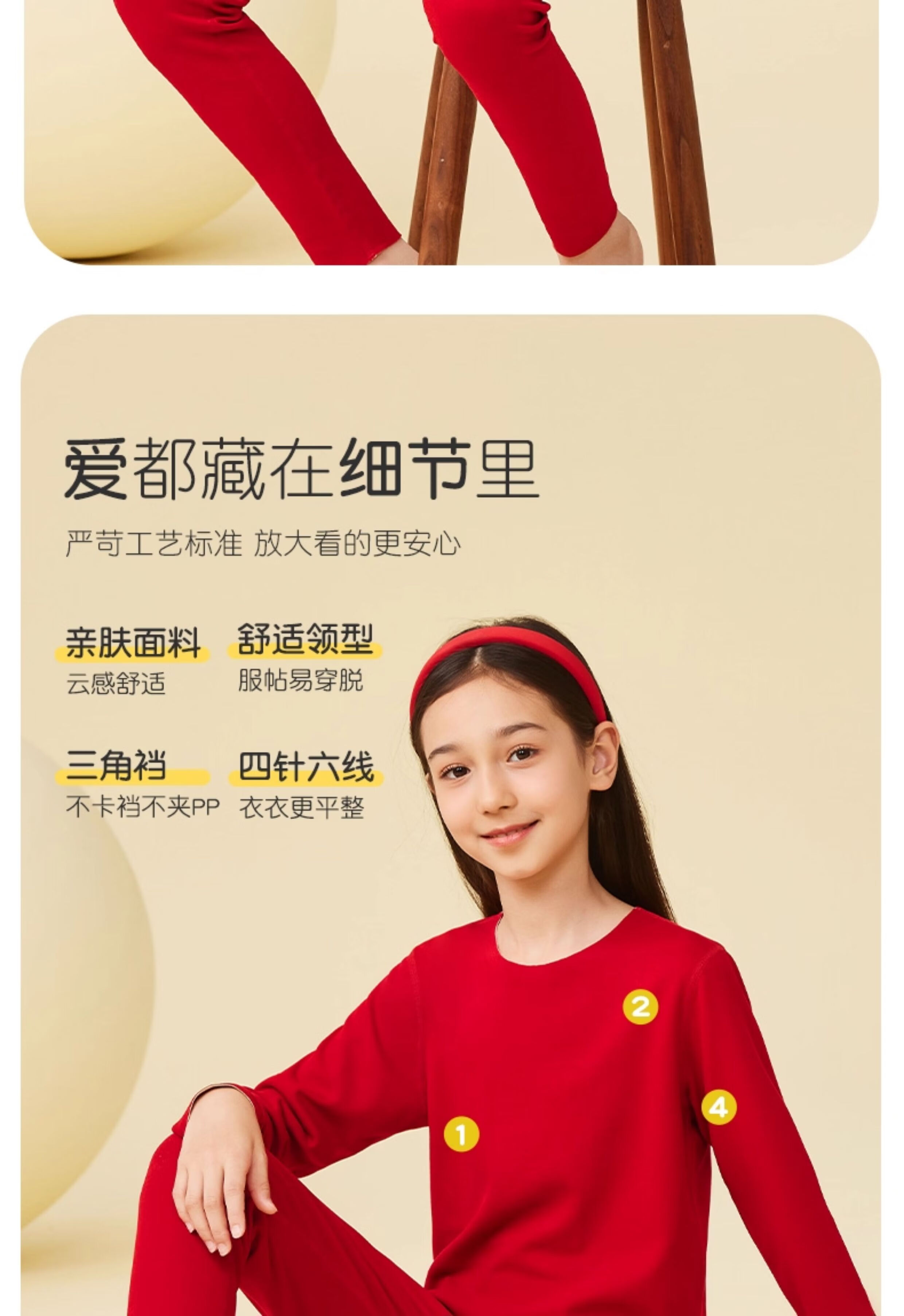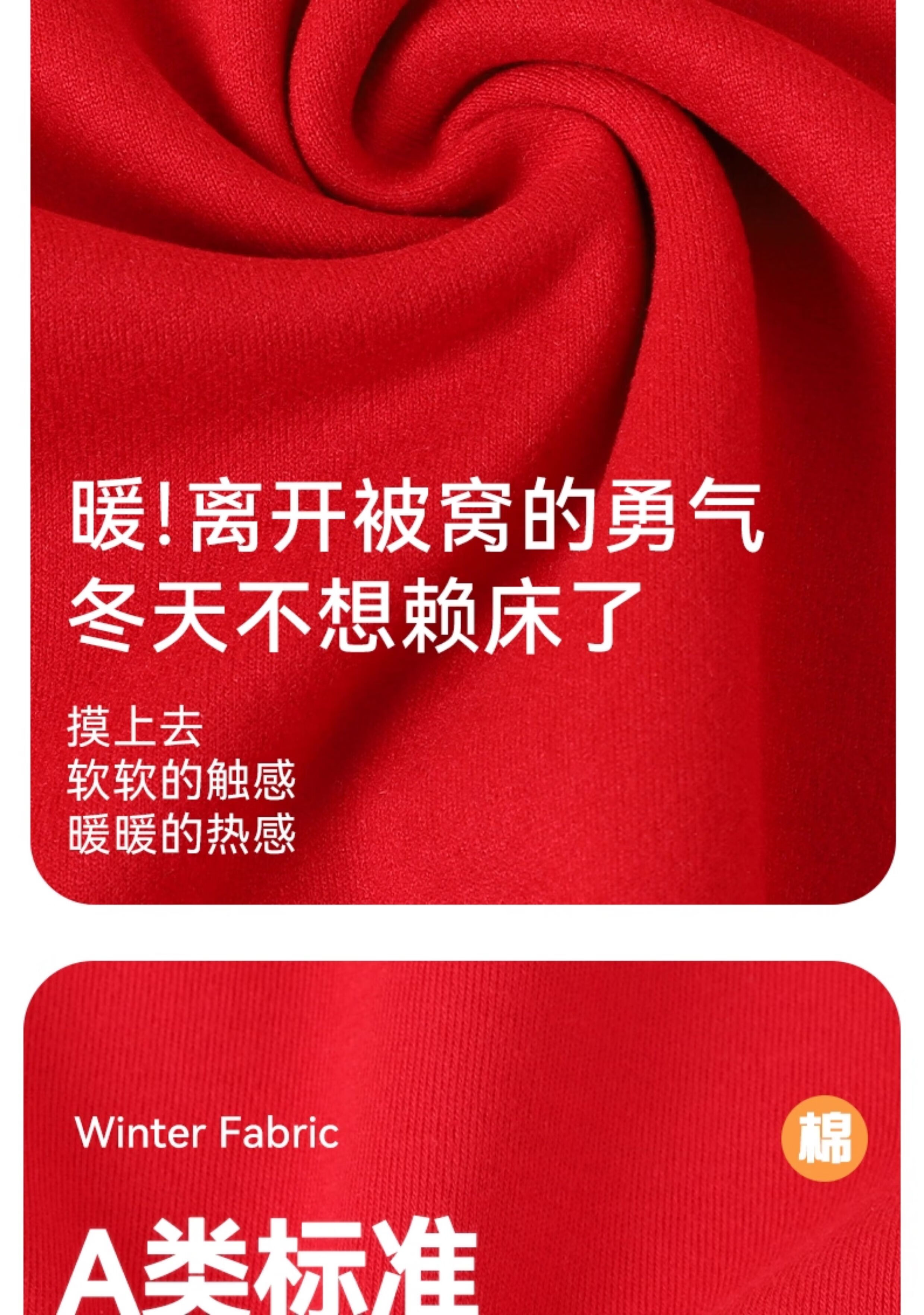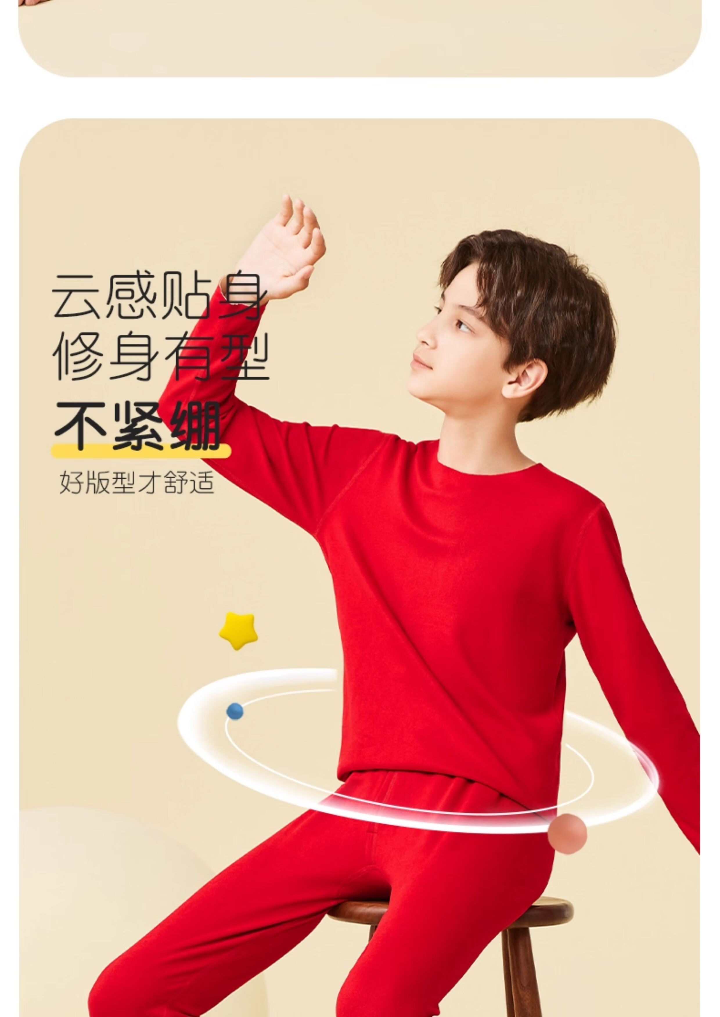 猫人(MiiOW)儿童本命年内衣套装纯棉12岁男童女童大童红色属龙年秋衣秋裤 男童圆领-马年限定 160 建议体重69-99斤