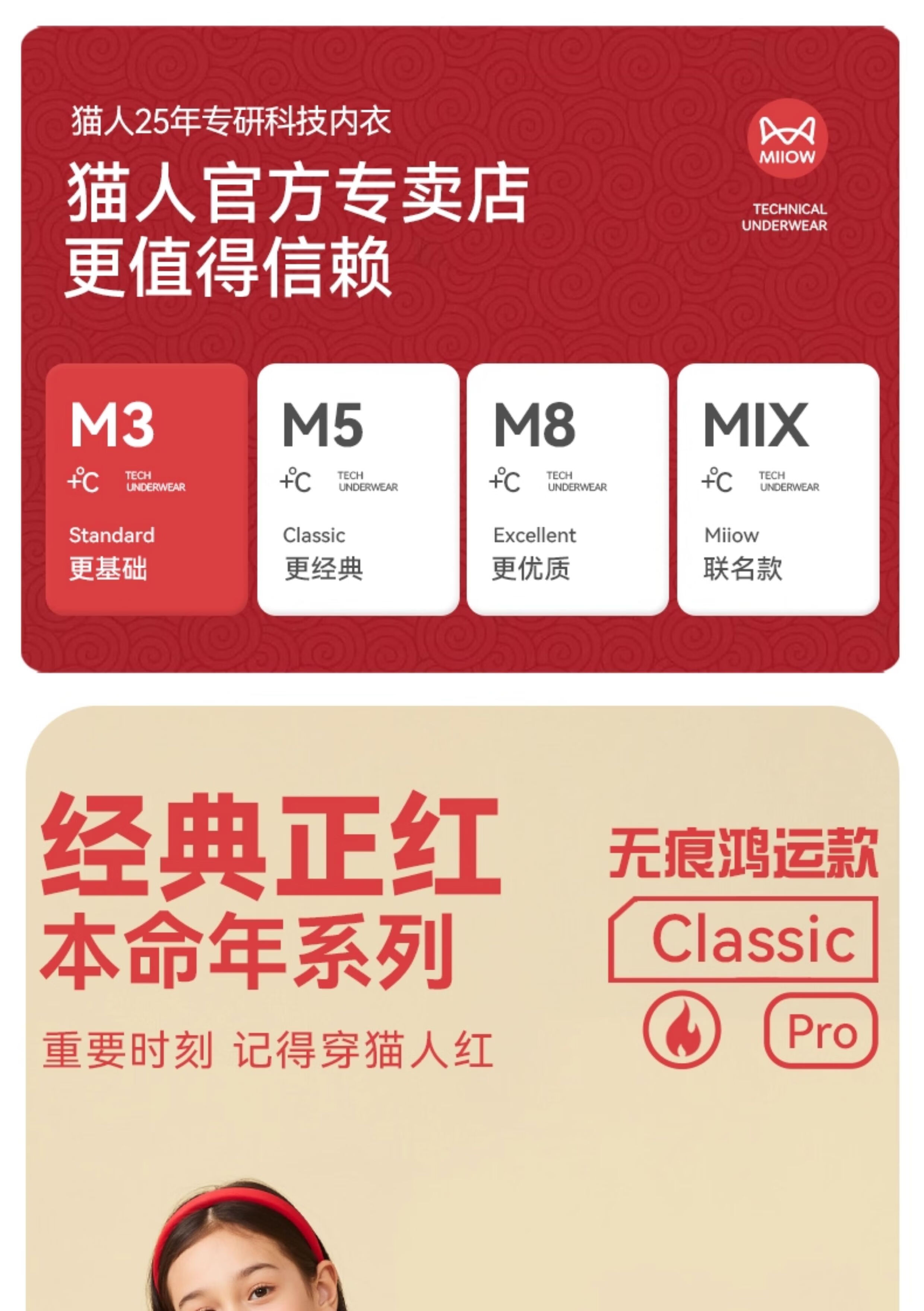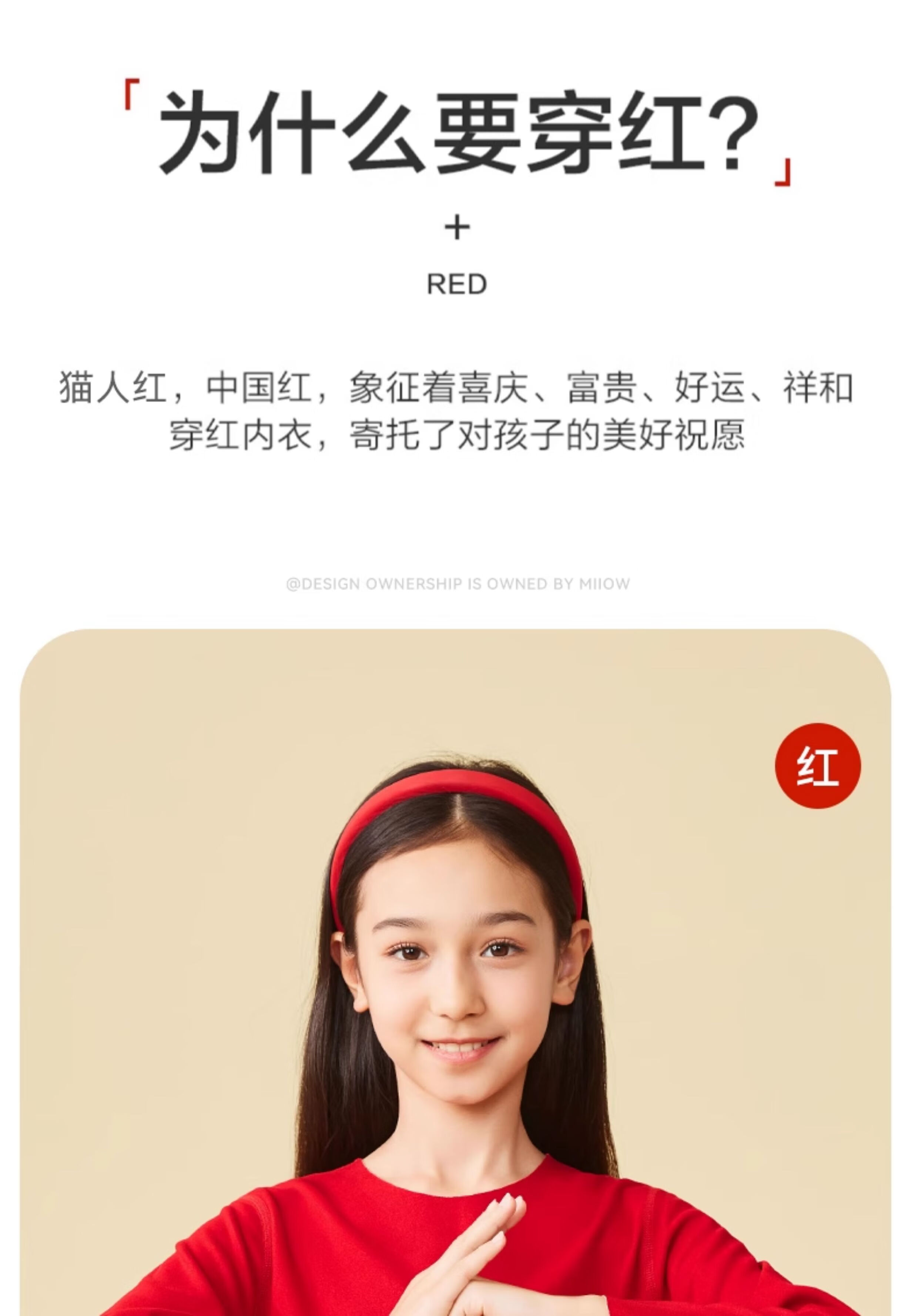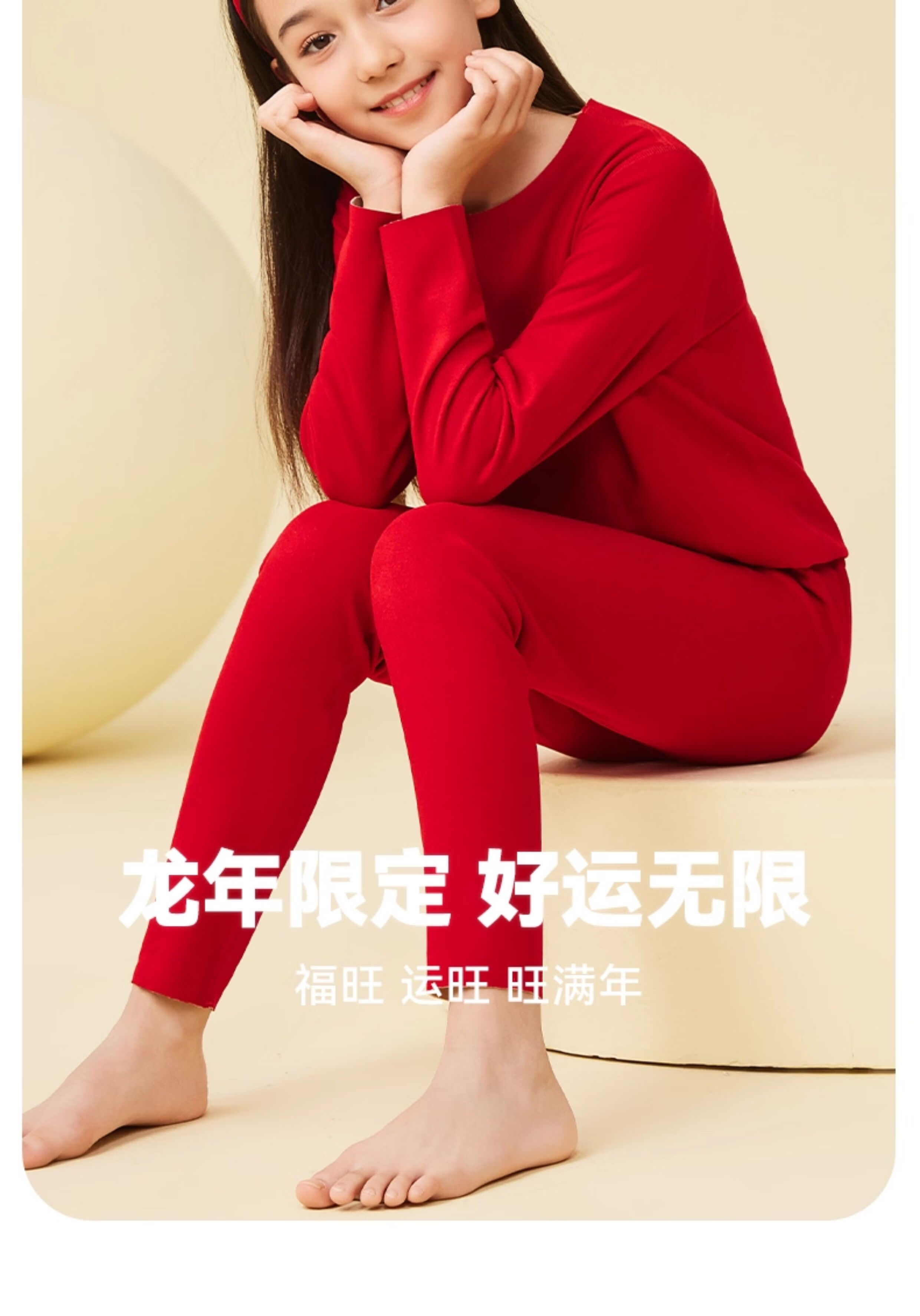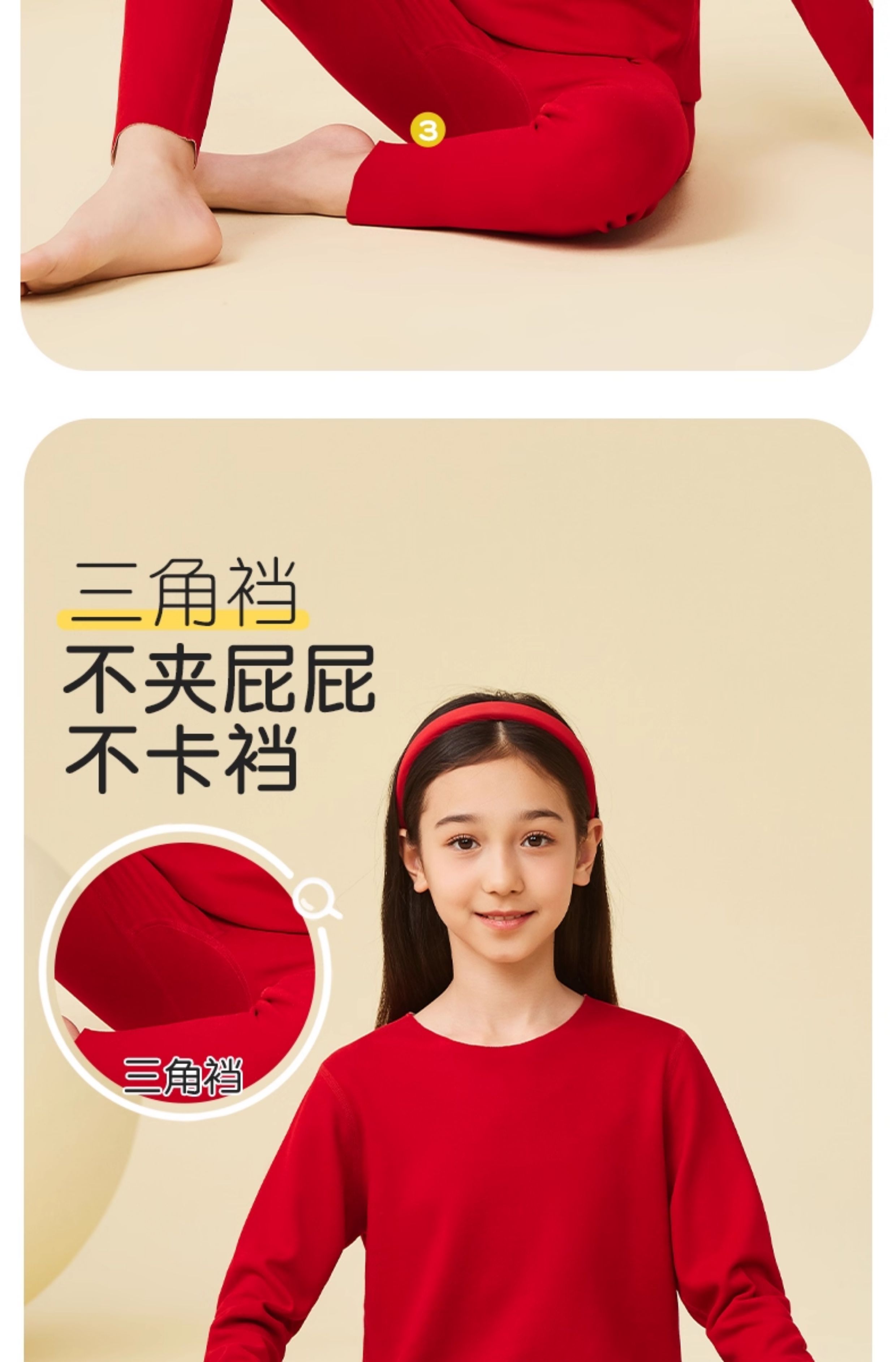 猫人(MiiOW)儿童本命年内衣套装纯棉12岁男童女童大童红色属龙年秋衣秋裤 男童圆领-马年限定 160 建议体重69-99斤