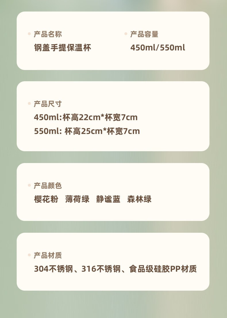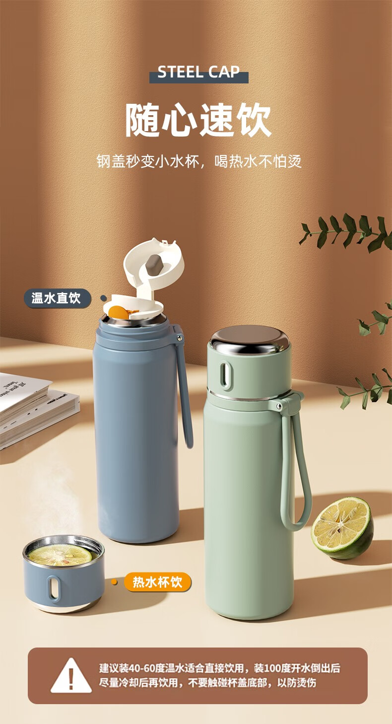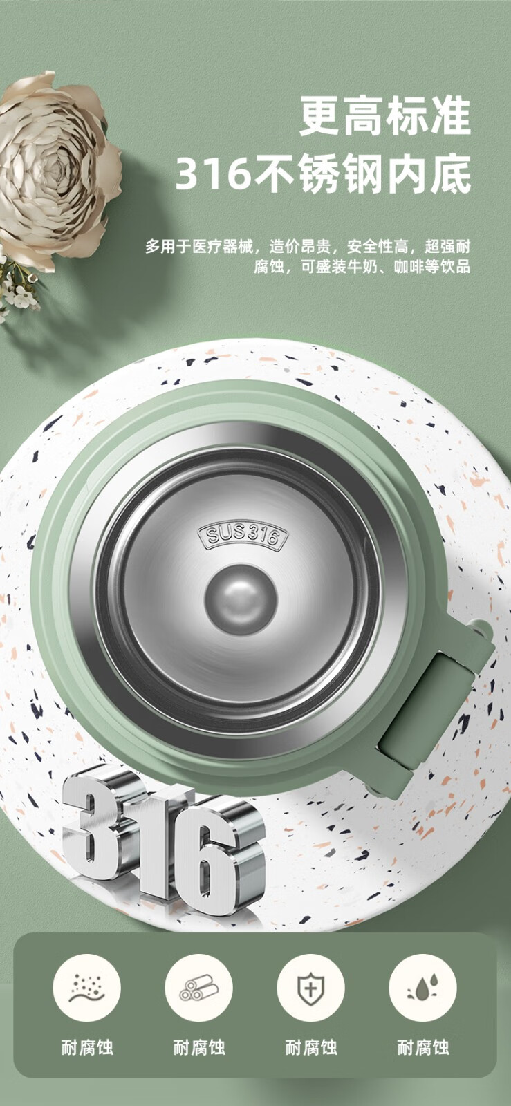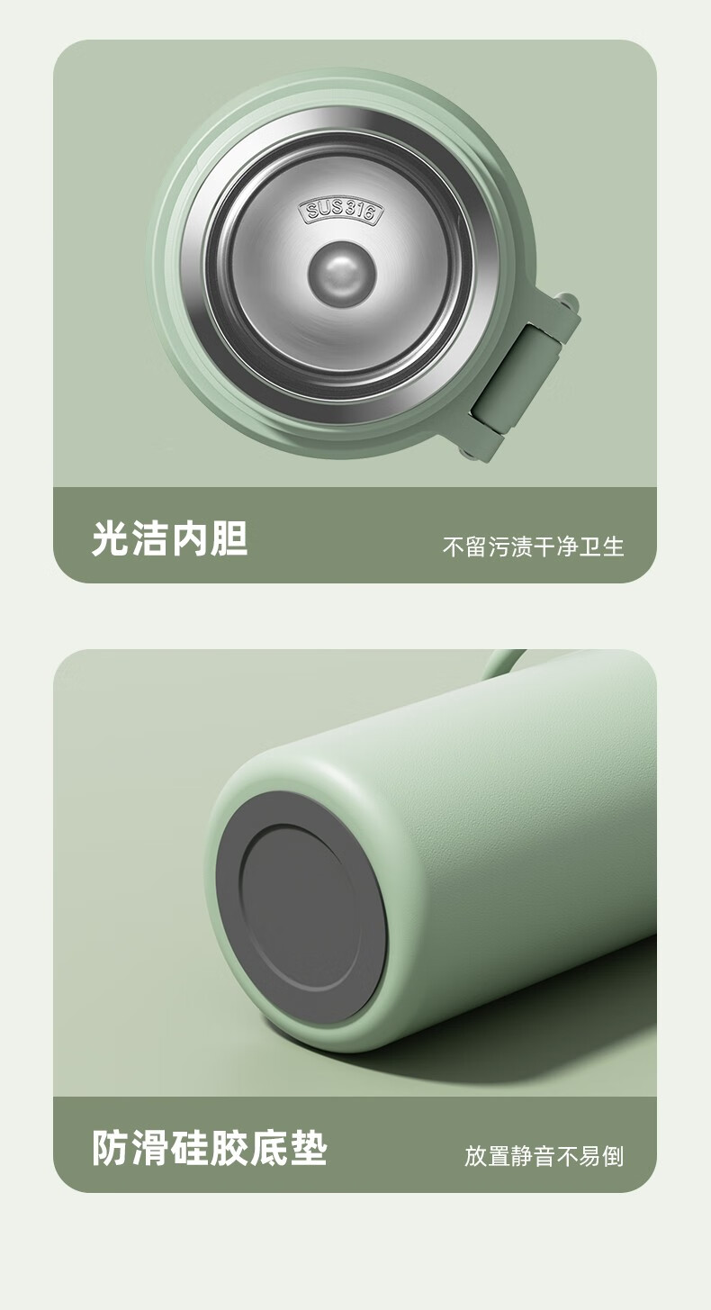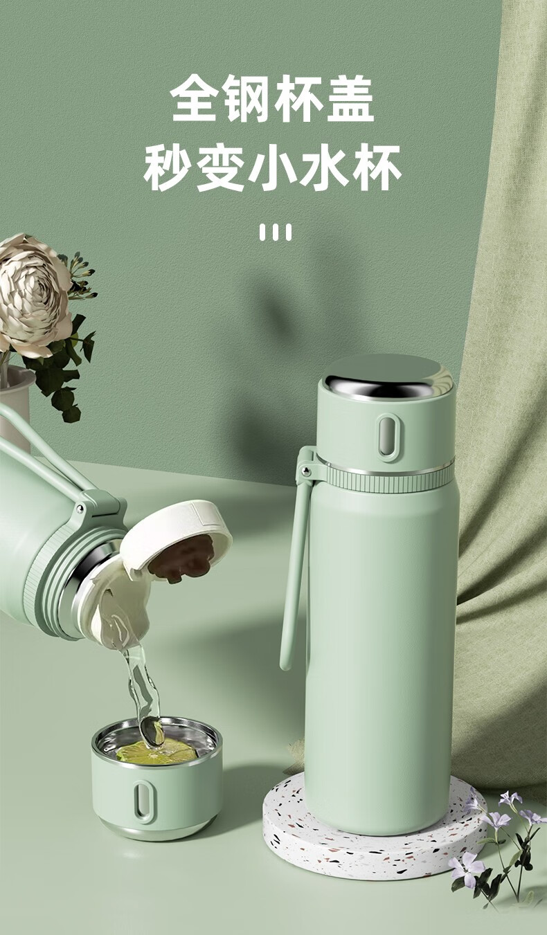 皇家洛克保温杯316不锈钢大容量茶水分离带杯盖水杯学生车载户外杯子 【316+茶水分离】薄荷绿450ml