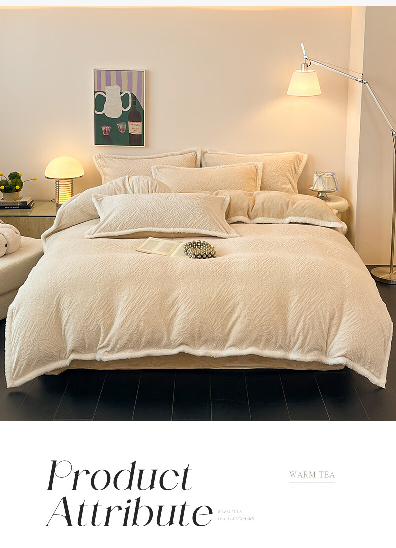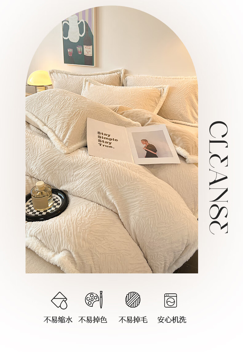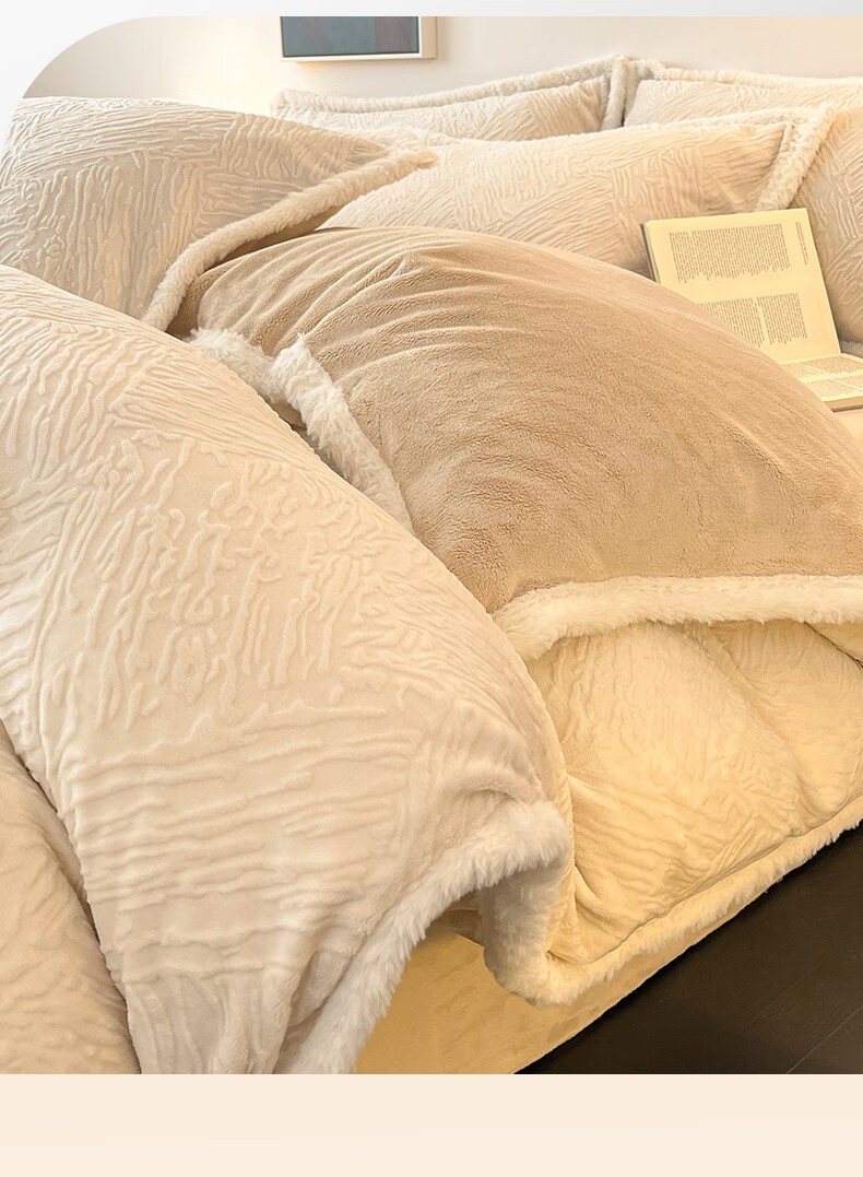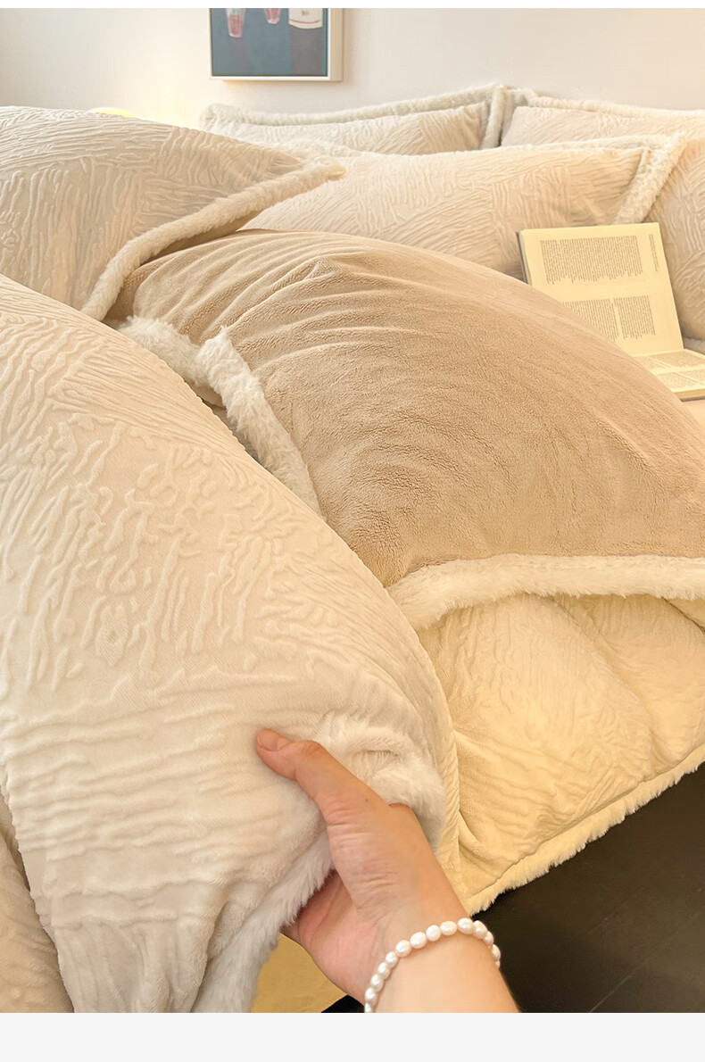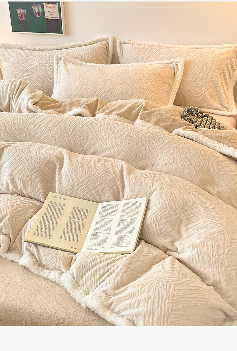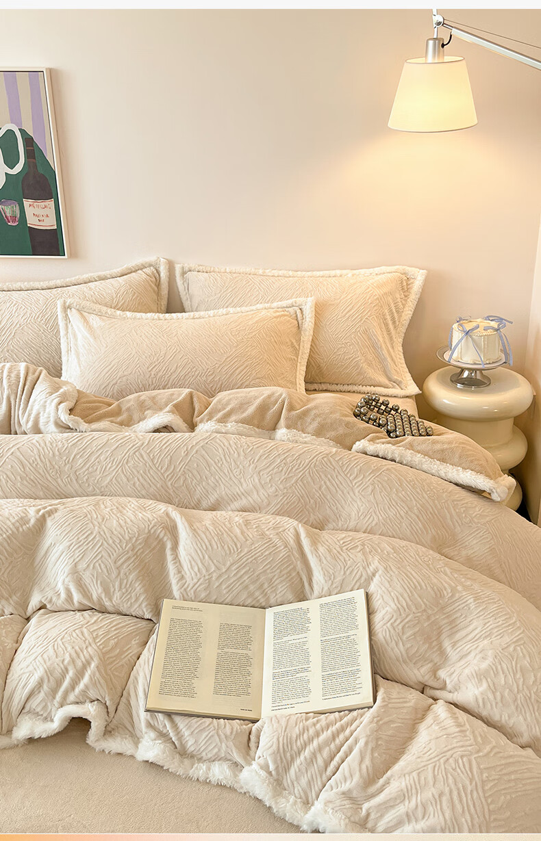无印良品兔毛绒床上用品四件套秋冬牛奶绒2025新款高端轻奢床单被套三件套 罗拉-奶白【加厚保暖舒适裸睡】 1.5/1.8m 床单款 四件/被套200*230