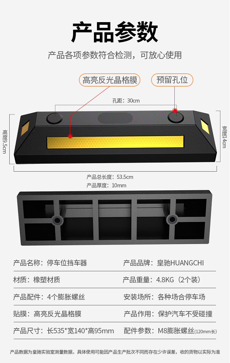 皇驰 停车位挡车位限位器橡塑车轮定位器倒车止步器停车挡车器两个装