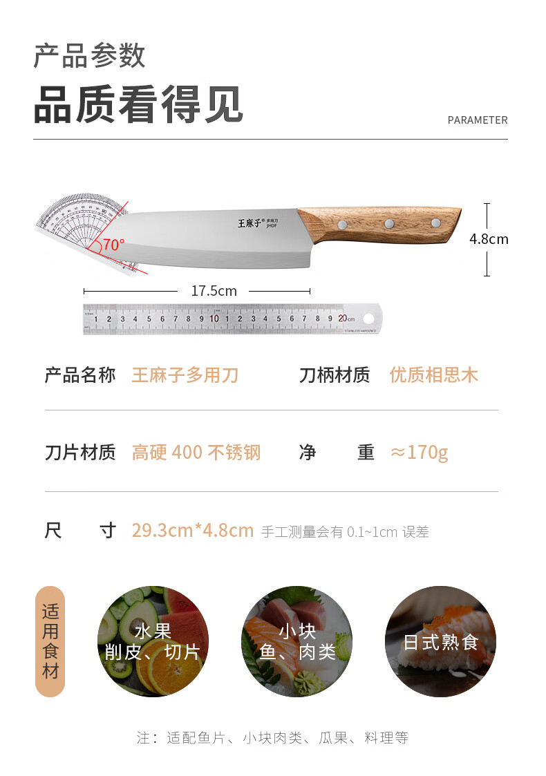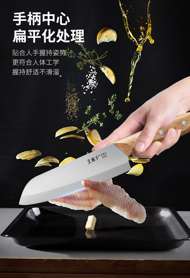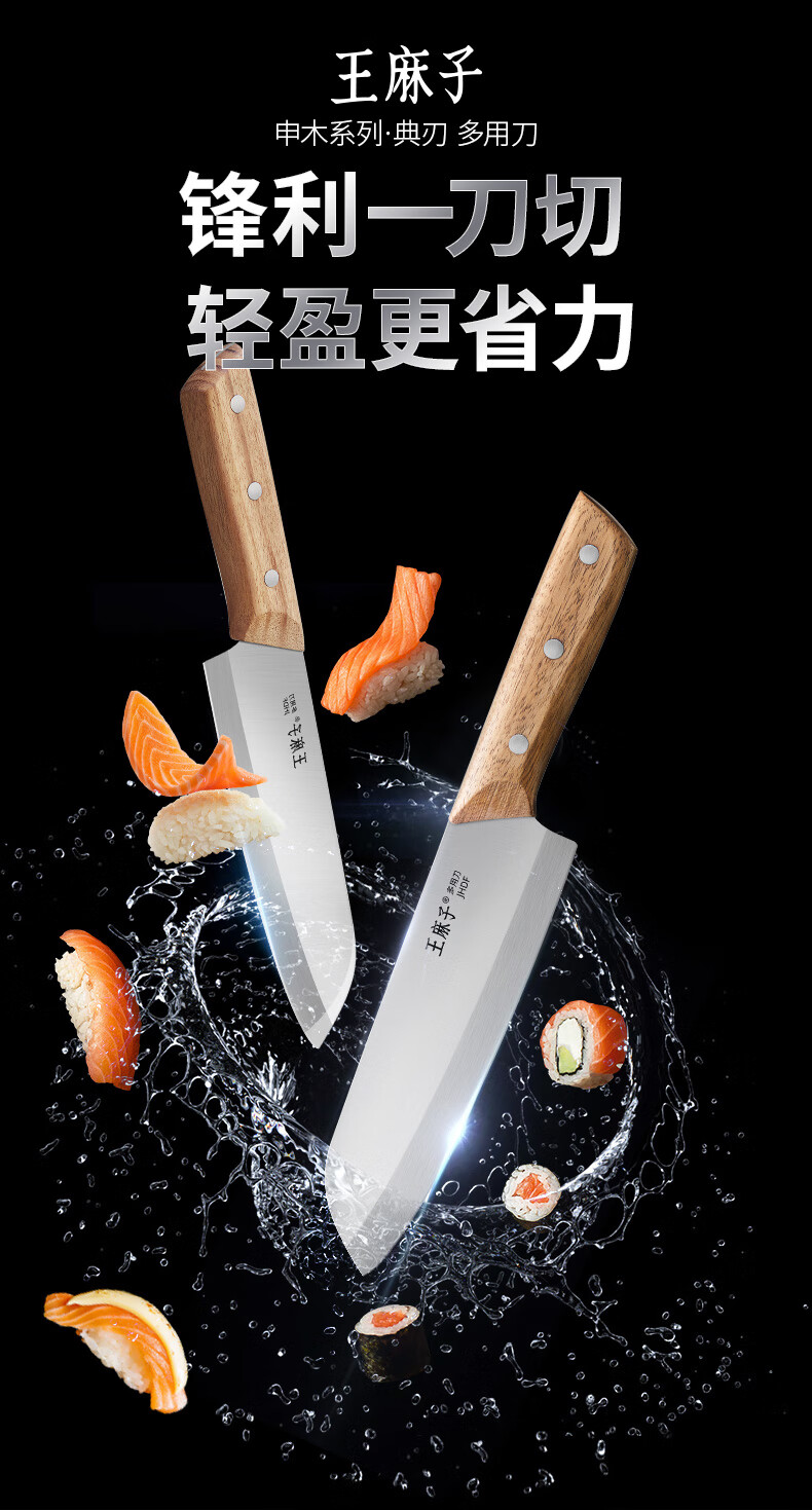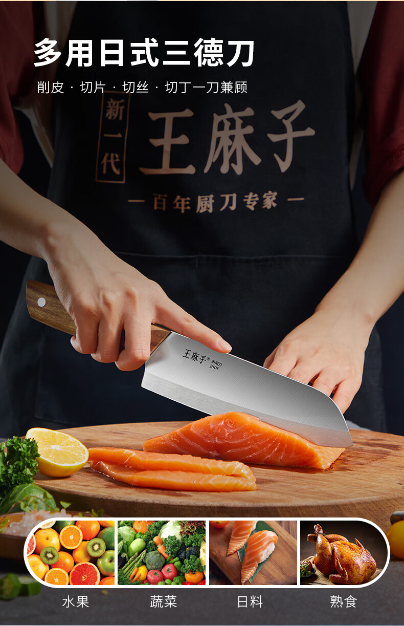 王麻子刀具小菜刀家用多用三德刀寿司熟食料理辅食水果刀切菜切肉厨师刀