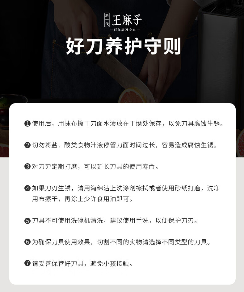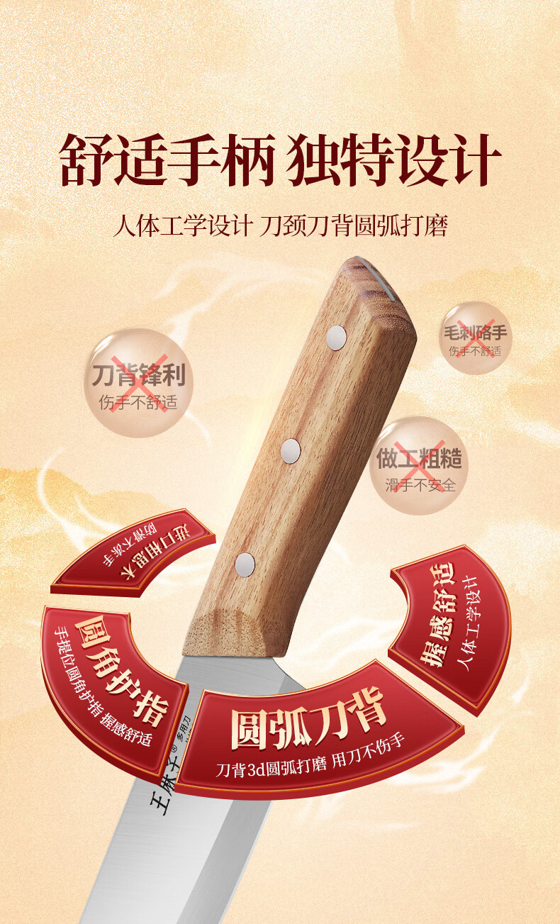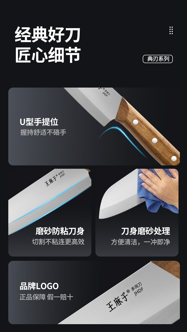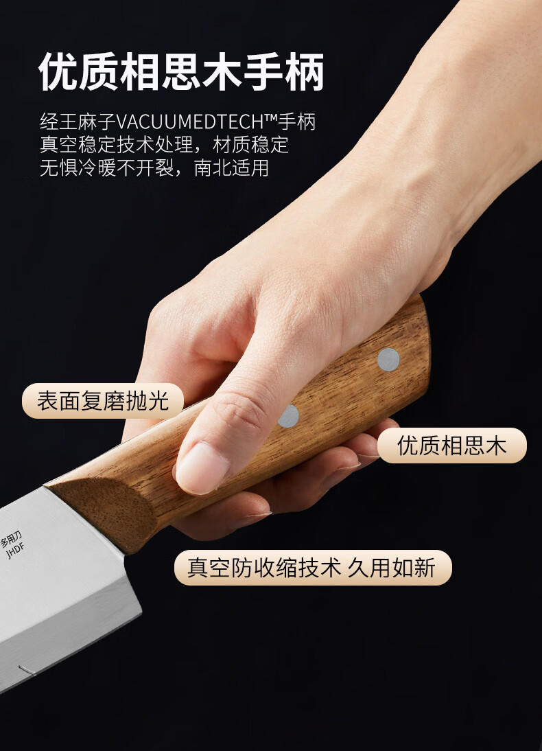 王麻子刀具小菜刀家用多用三德刀寿司熟食料理辅食水果刀切菜切肉厨师刀