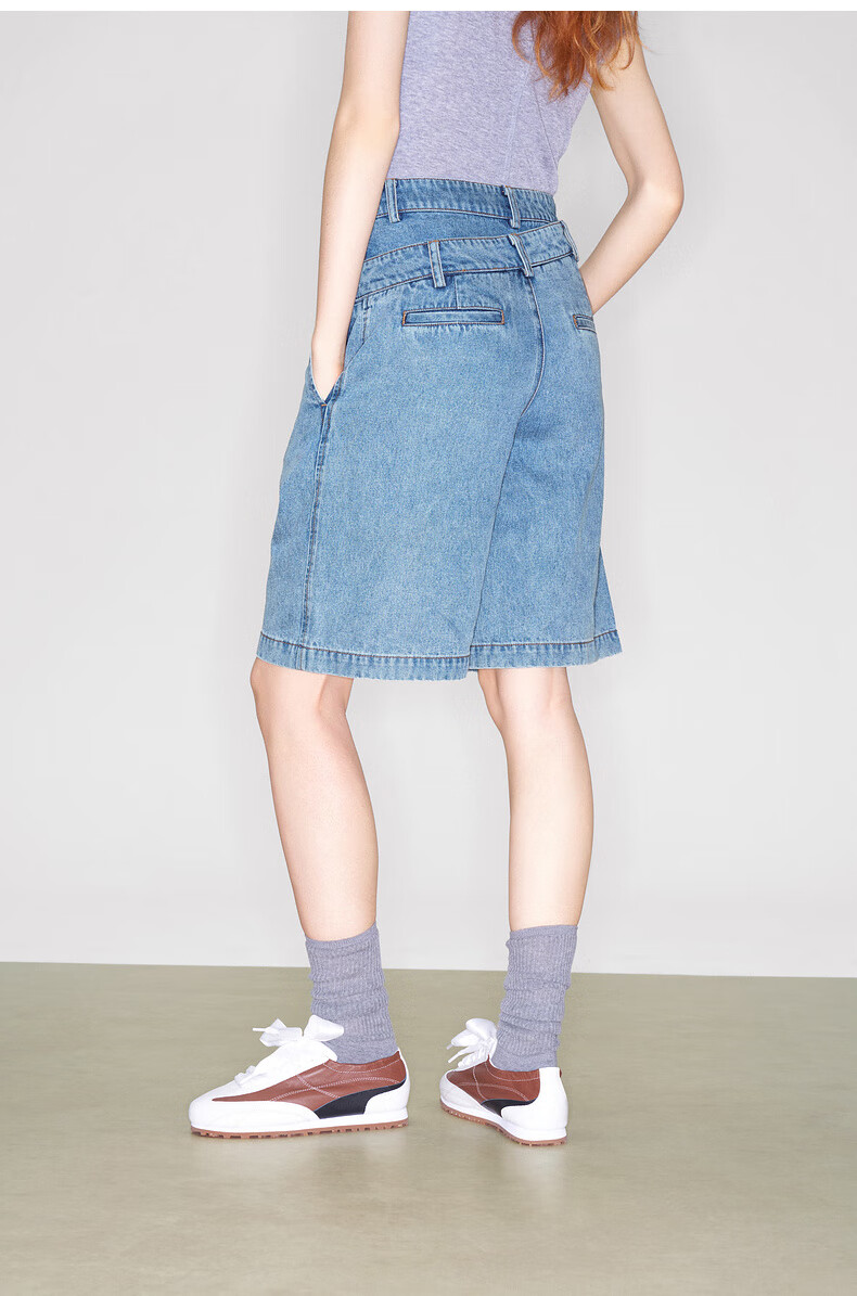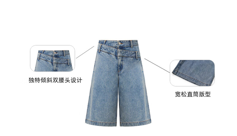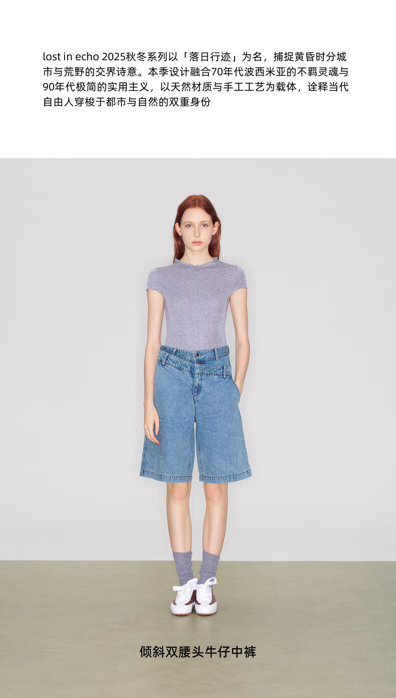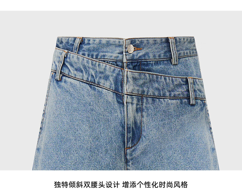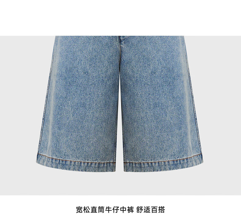 lost in echo2025秋冬新款宽松直筒个性双腰头百搭牛仔阔腿中裤女 水洗浅蓝 S