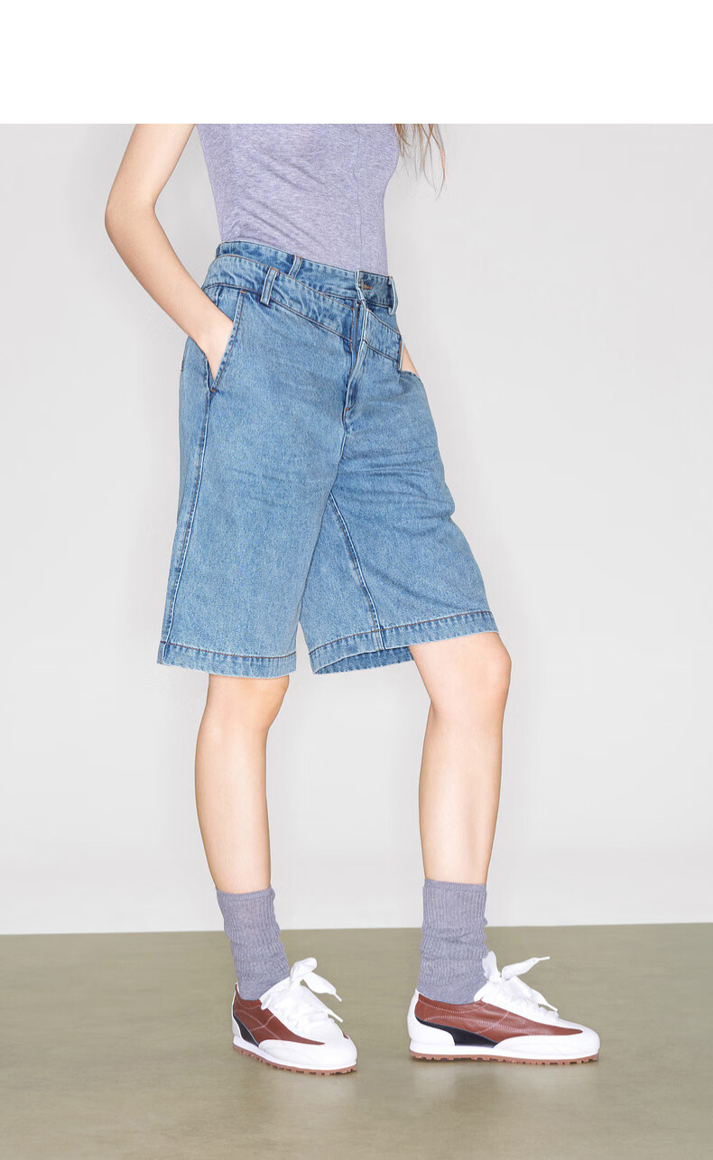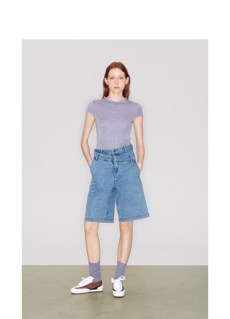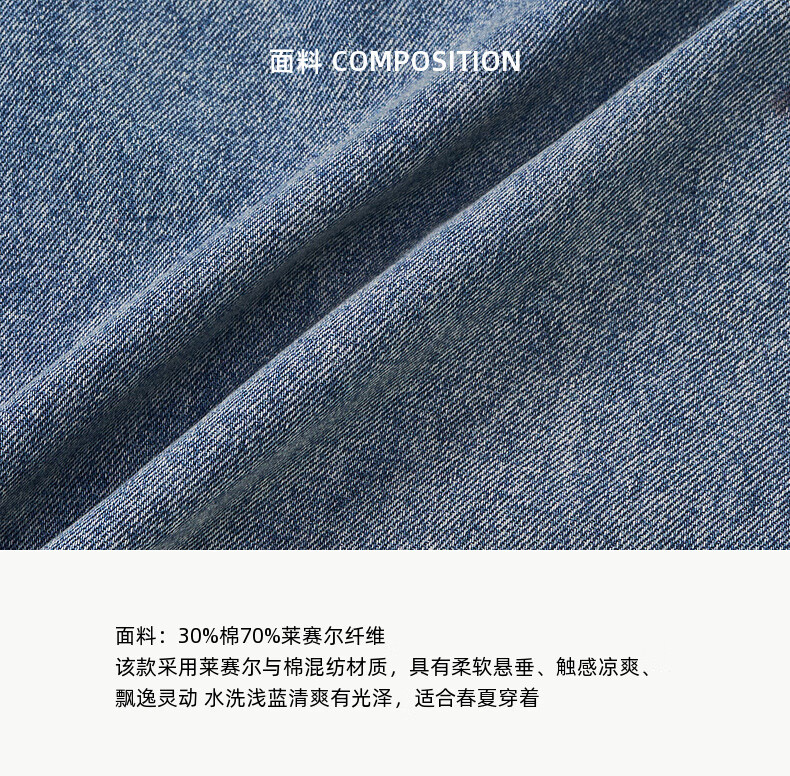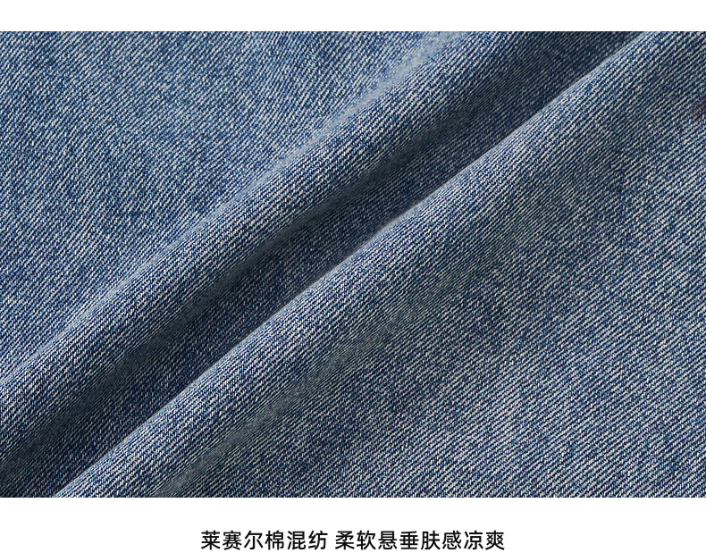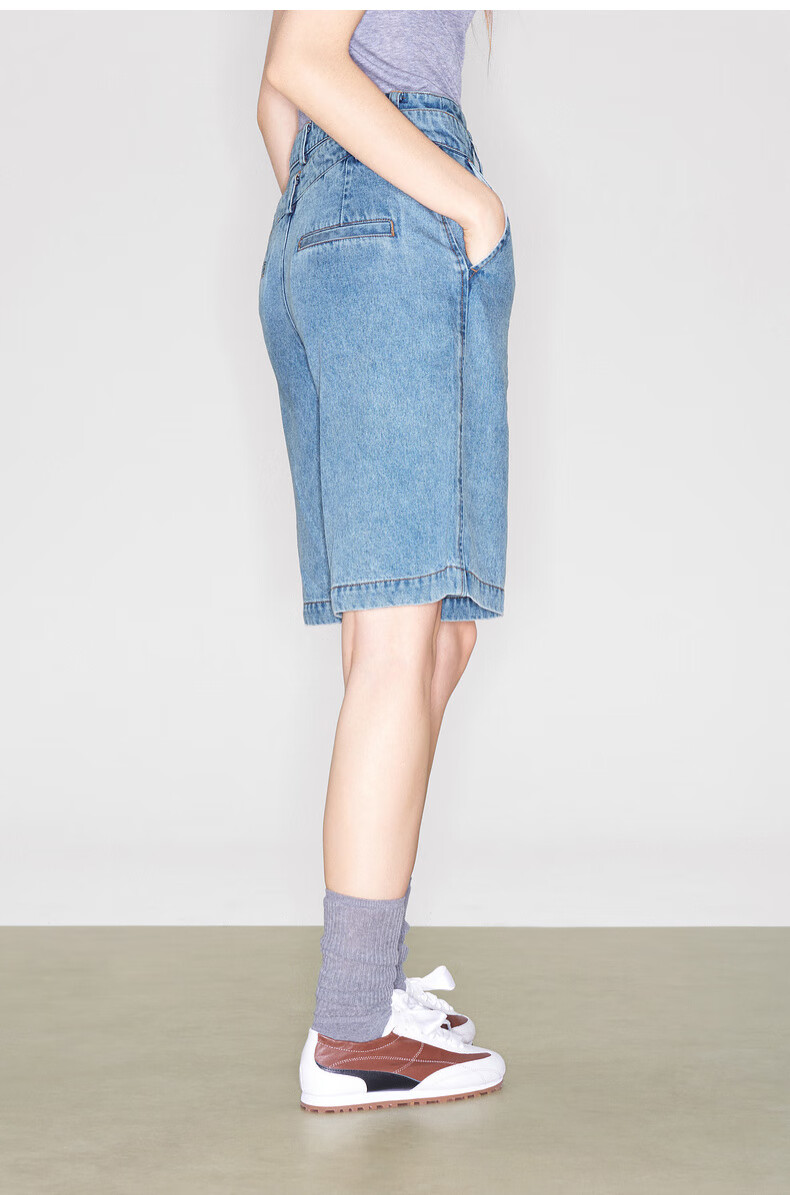 lost in echo2025秋冬新款宽松直筒个性双腰头百搭牛仔阔腿中裤女 水洗浅蓝 S