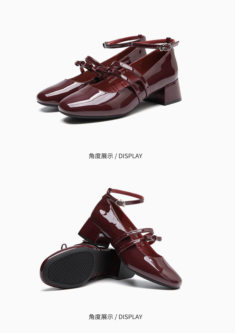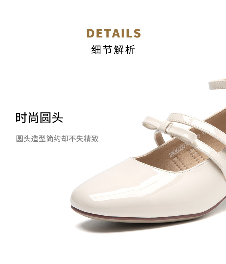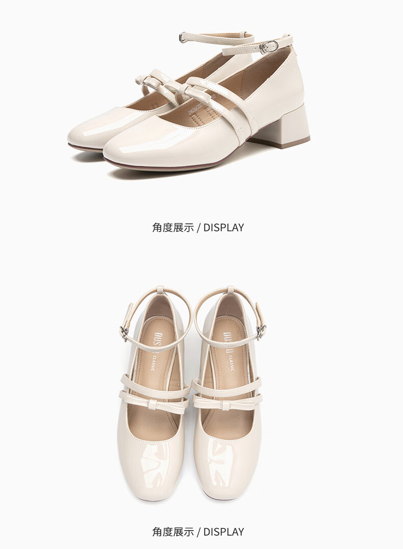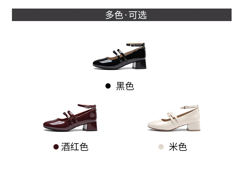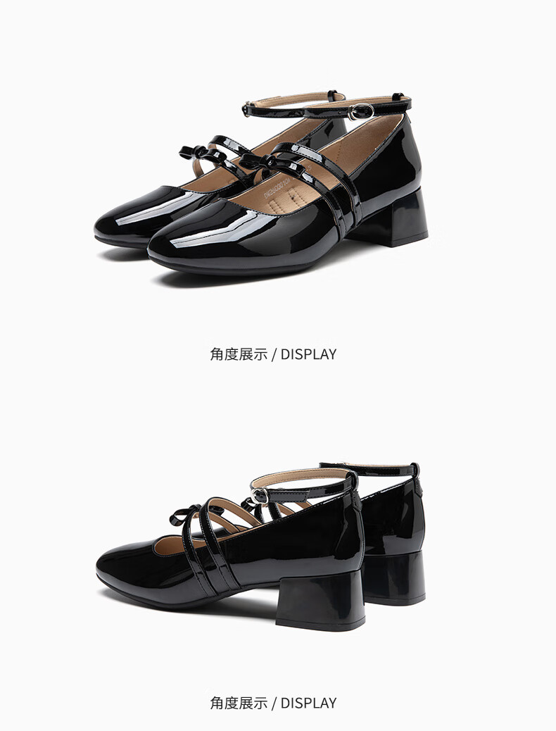 大东玛丽珍鞋女鞋2025年春季优雅粗跟一字扣带粗跟单鞋0010 黑色 34