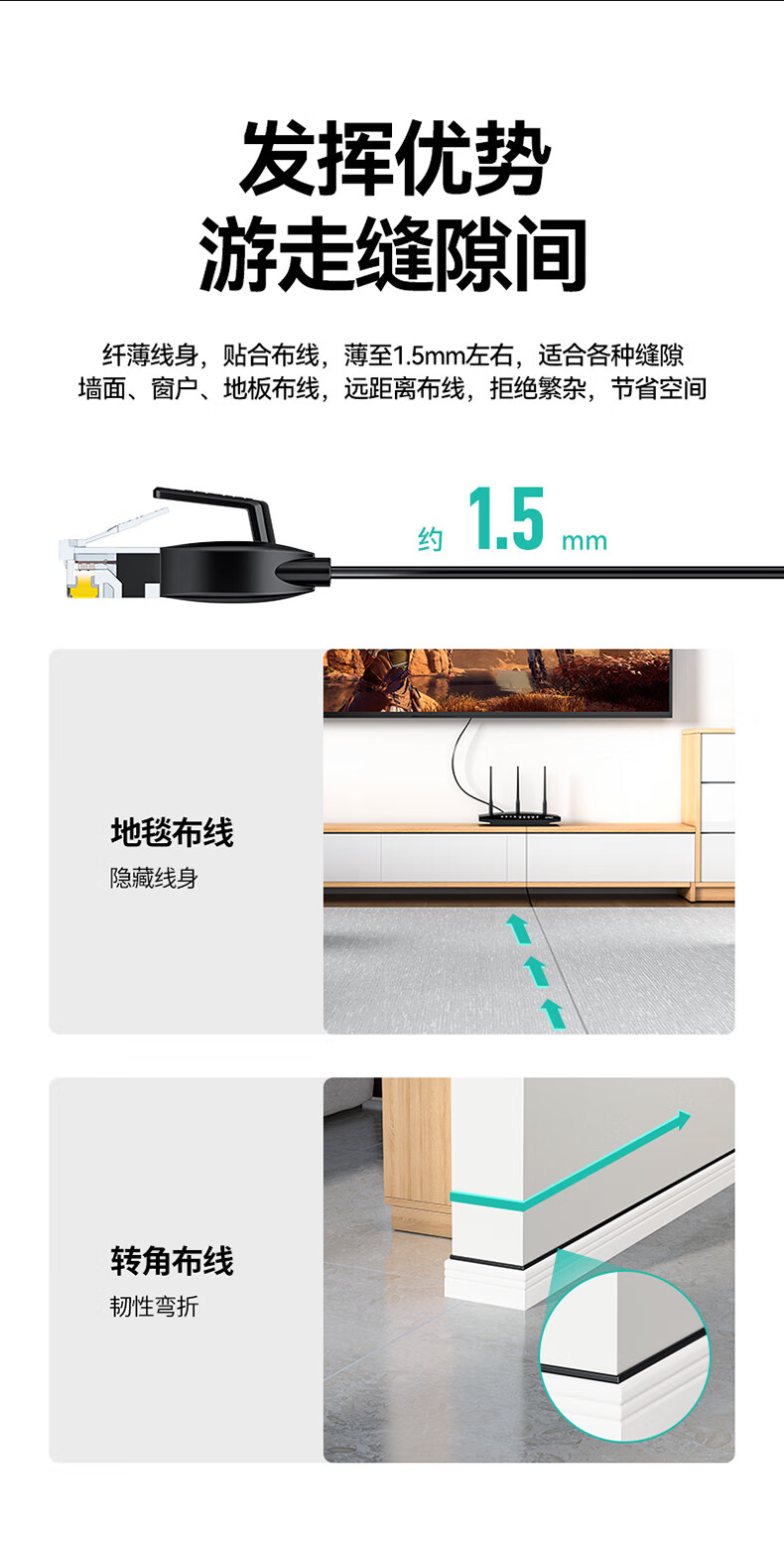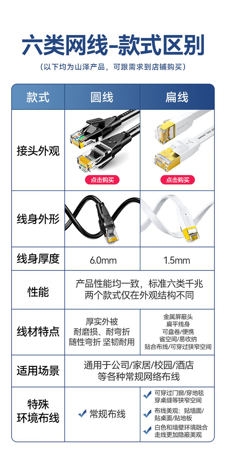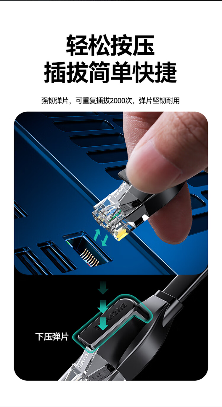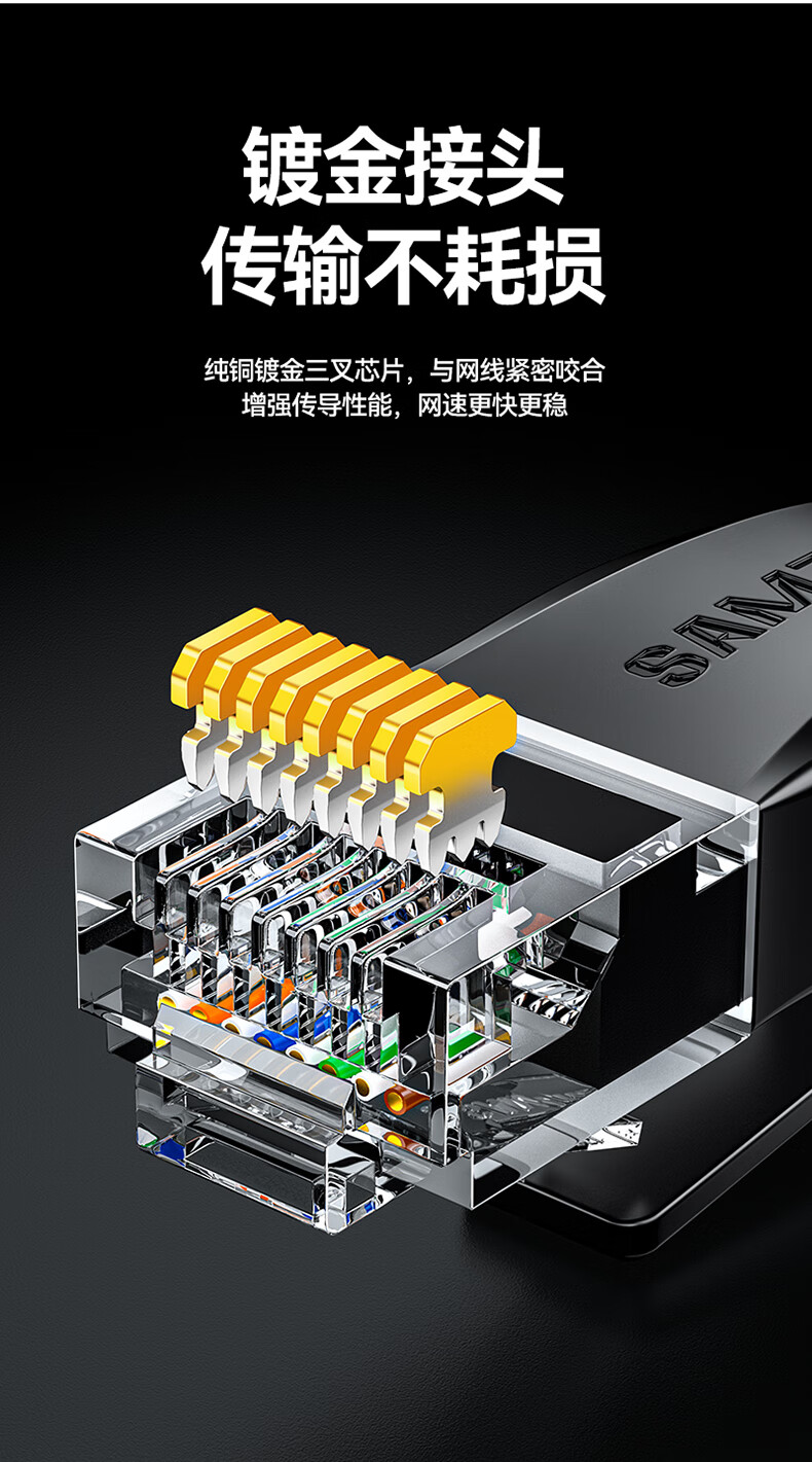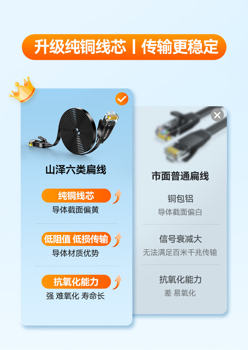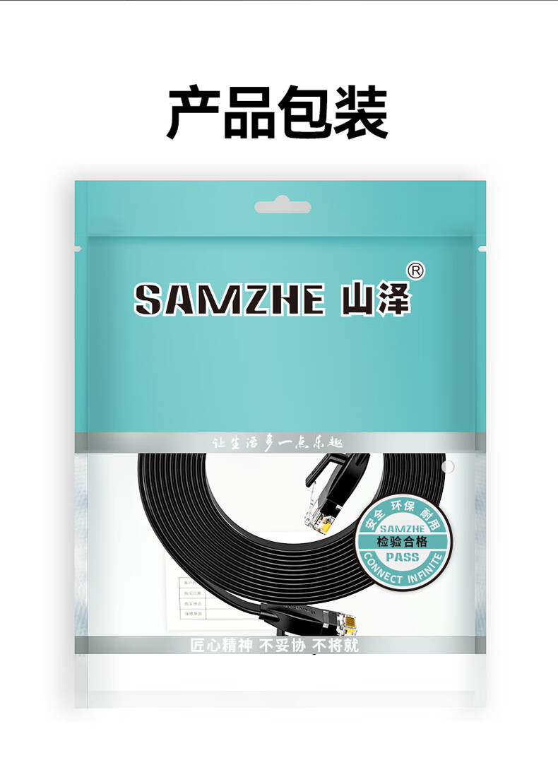 山泽 六类网线 CAT6类千兆纯铜扁平网线 电脑宽带家用监控网络连接成品跳线 黑色2米HBP602