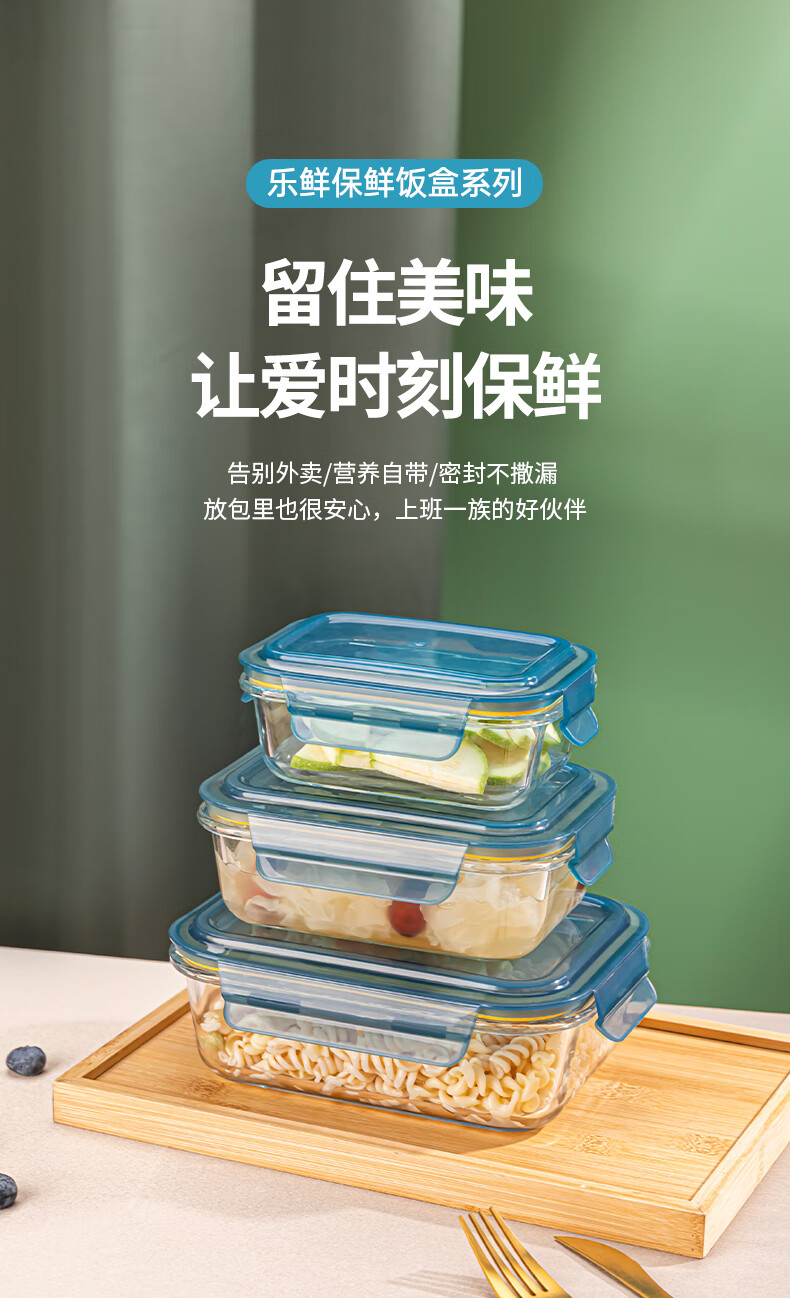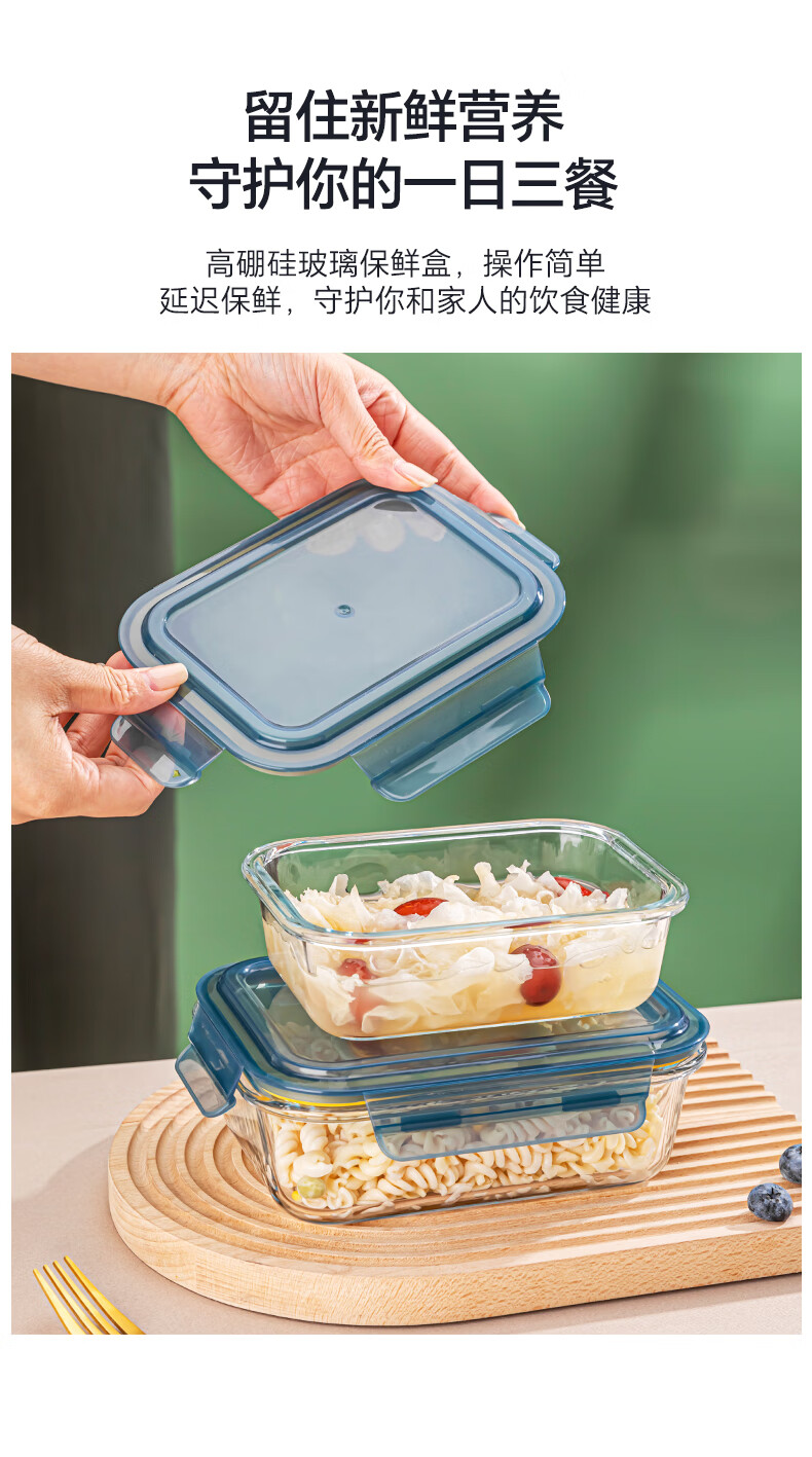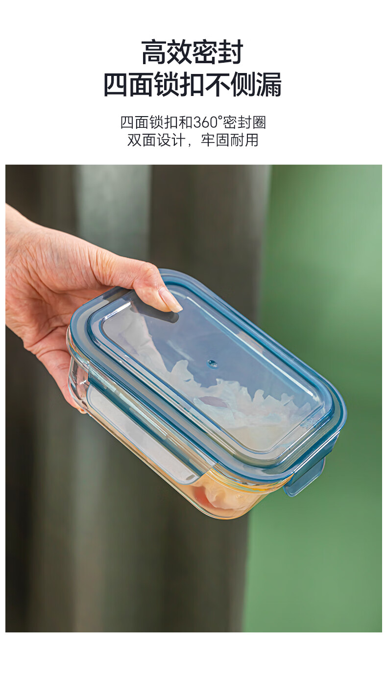 乐唯诗 高硼玻璃保鲜饭盒可微波炉加热餐盒便当碗冰箱保鲜盒 乐鲜一体盖【1040ml】大号