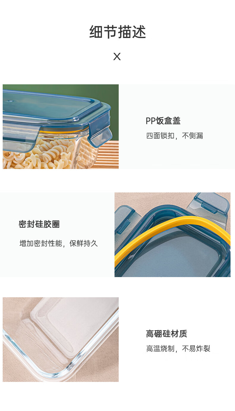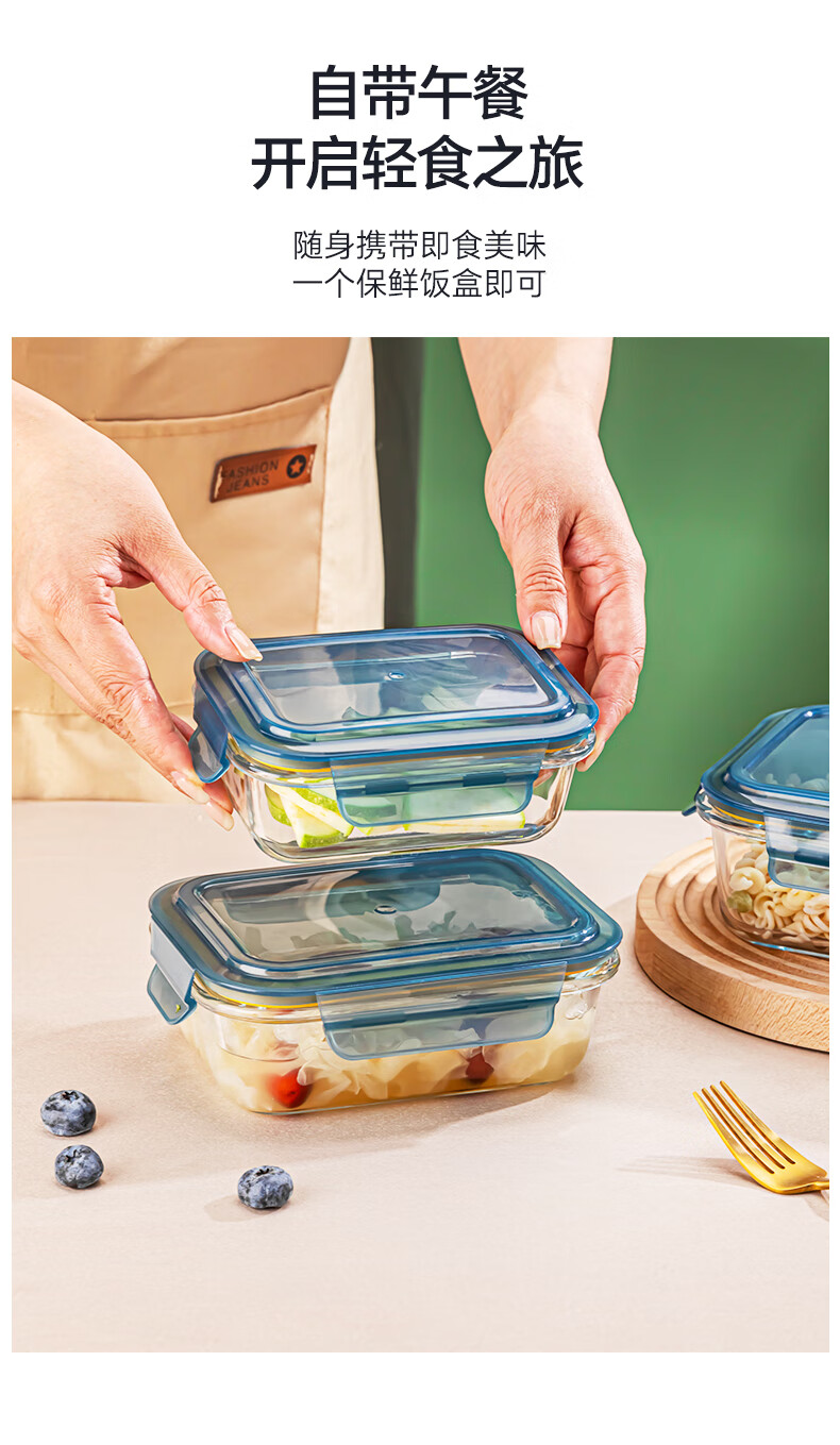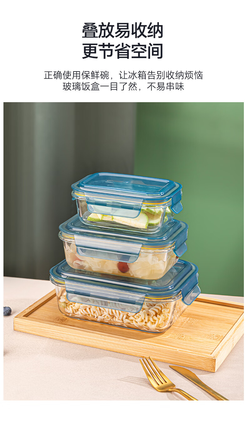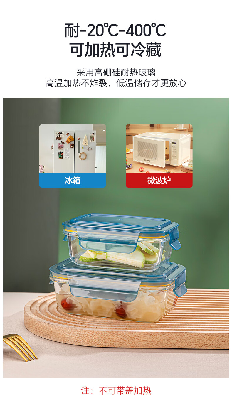 乐唯诗 高硼玻璃保鲜饭盒可微波炉加热餐盒便当碗冰箱保鲜盒 乐鲜一体盖【1040ml】大号