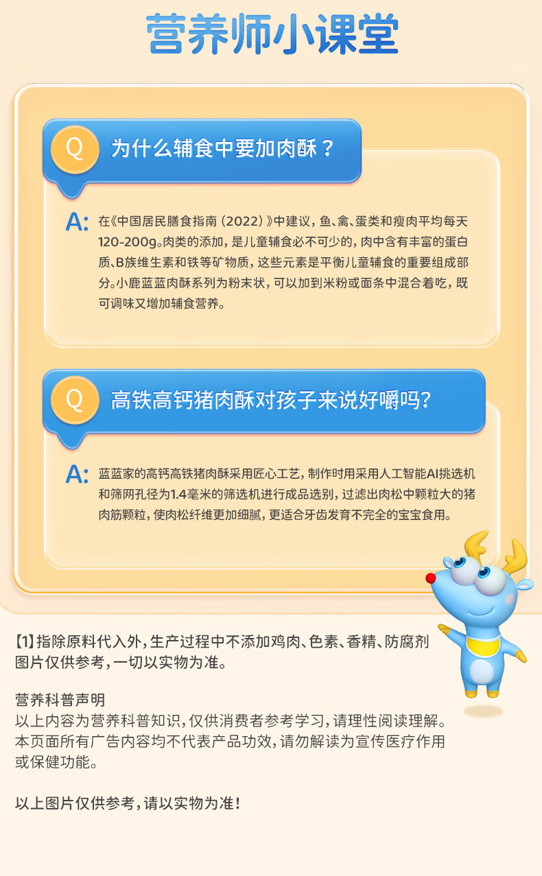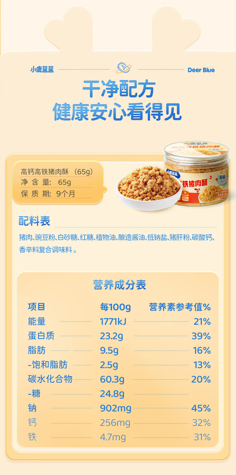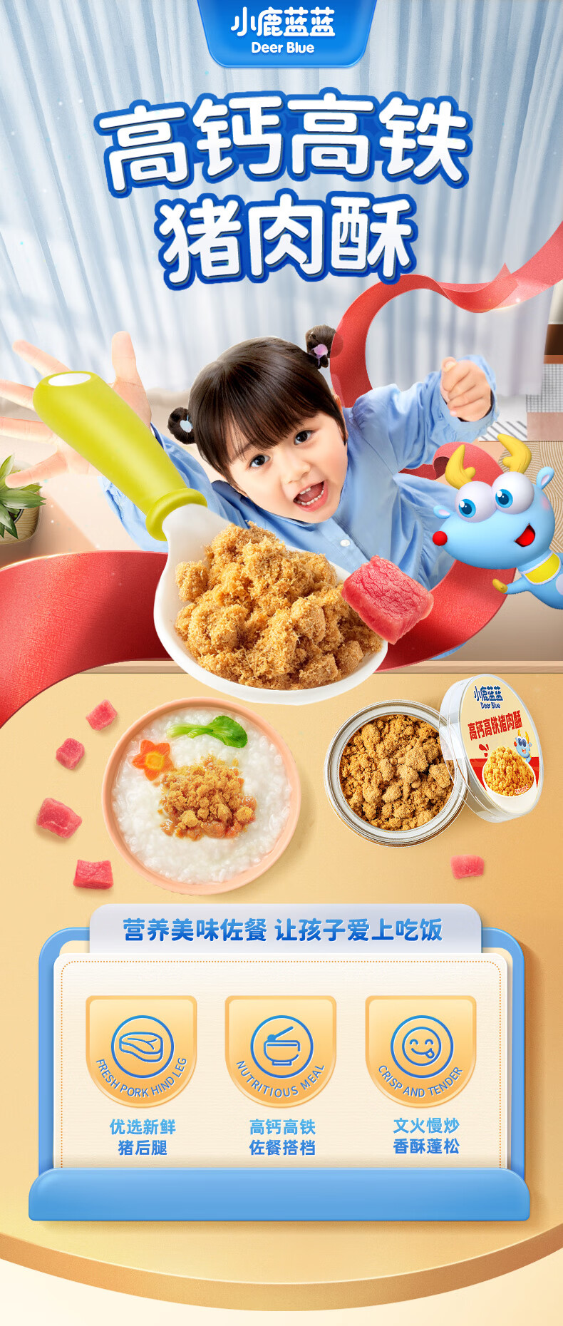 小鹿蓝蓝宝宝肉松高蛋白高铁猪肉酥65g/罐儿童零食拌饭拌面调味