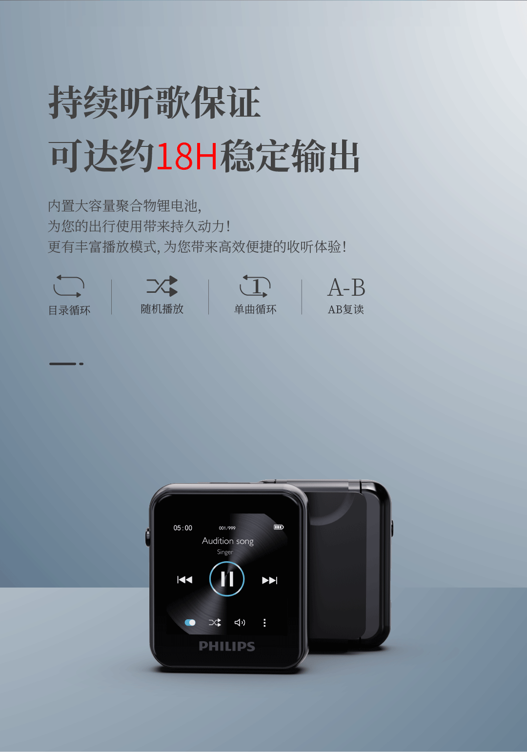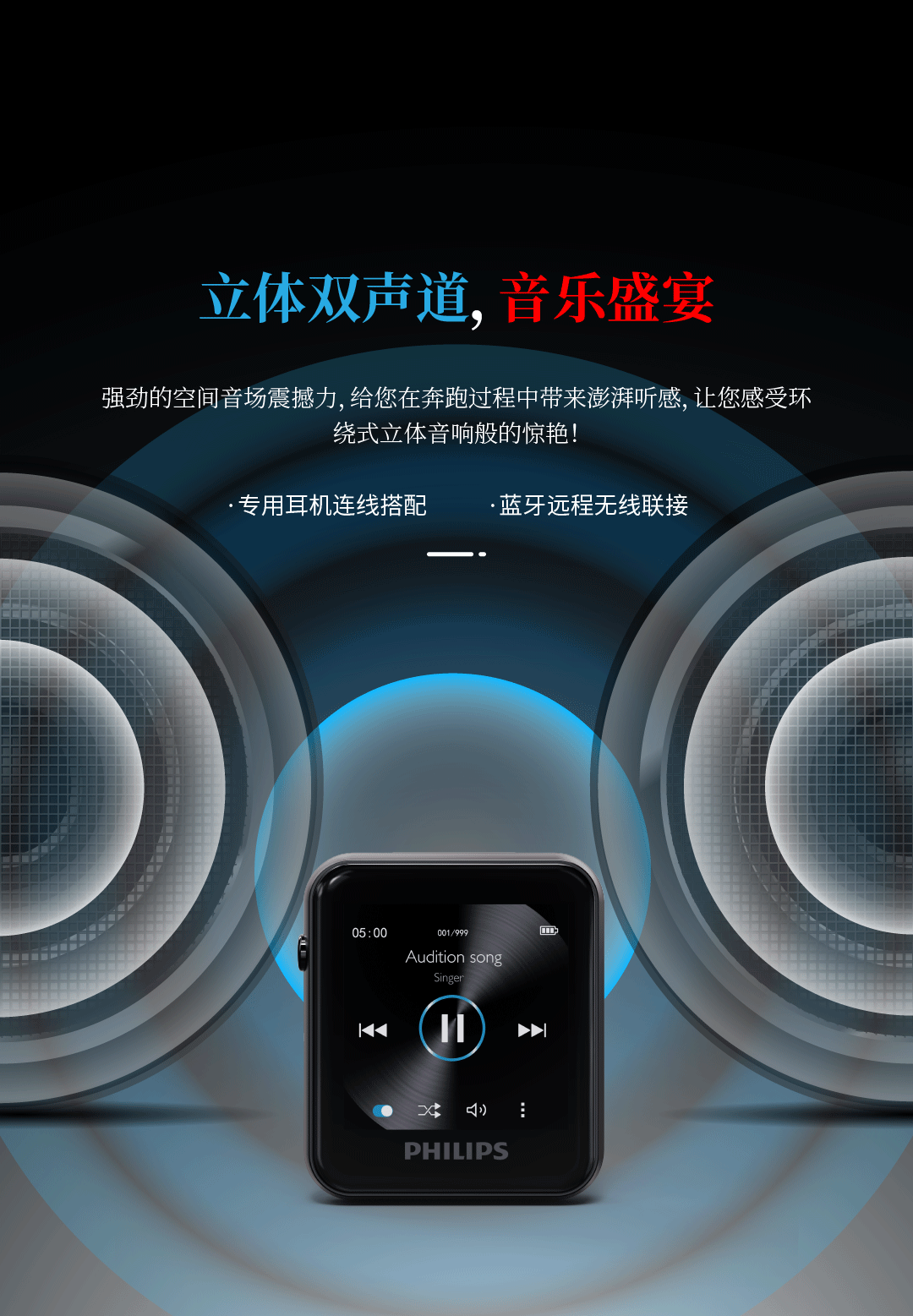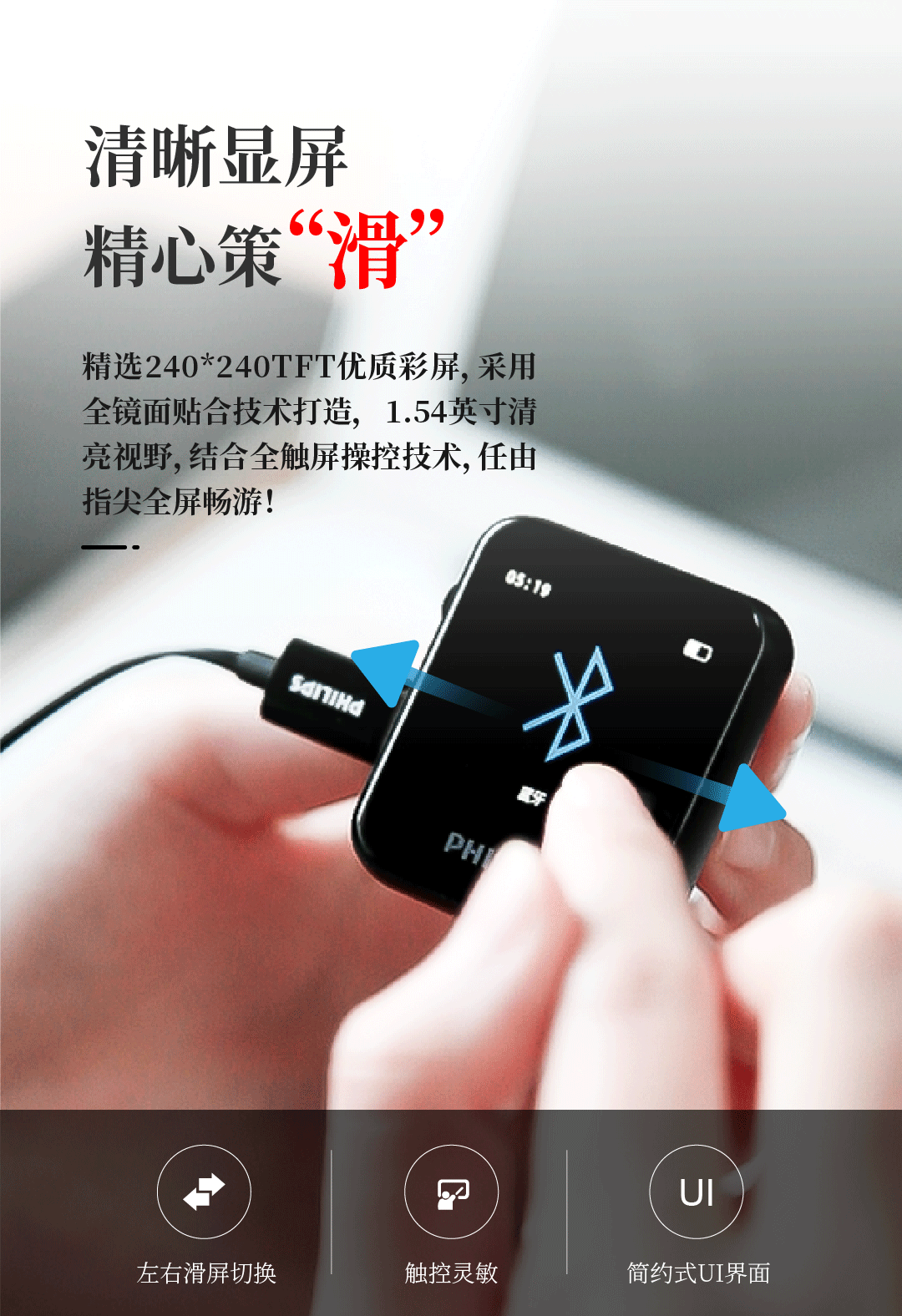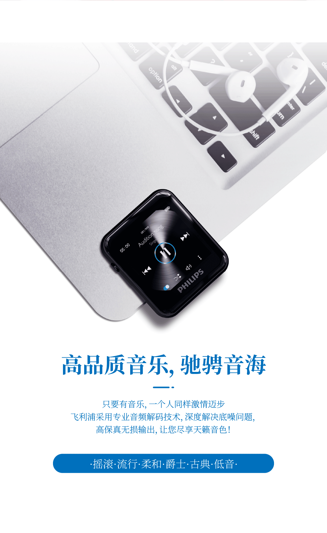飞利浦SA6116 HIFI无损音乐MP3播放器 触摸屏蓝牙5.0 FM收音学生运动跑步可定时 16G