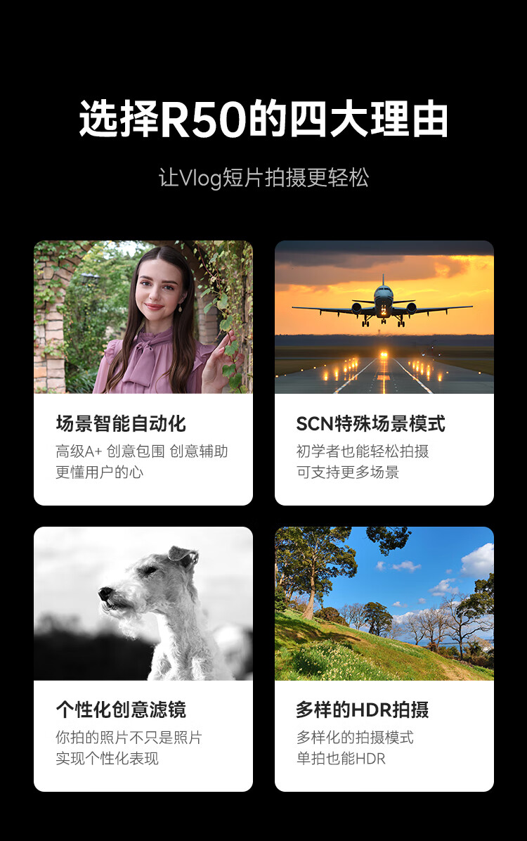 佳能r50相机 入门级微单 旅行家用学生vlog视频 4k小巧便携半画幅R50数码照相机 EOSR50 18-45 STM黑色套机 送礼好物 官方标配【不含内存卡相机包等必要配件 推荐选套餐】
