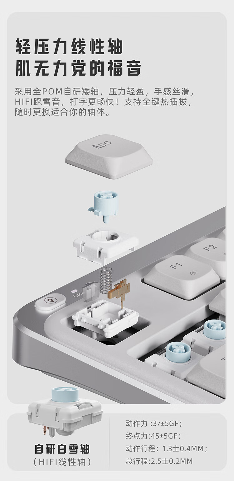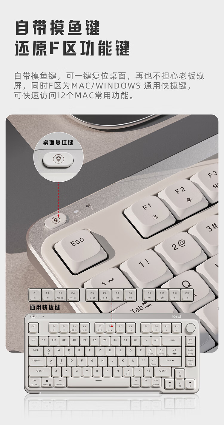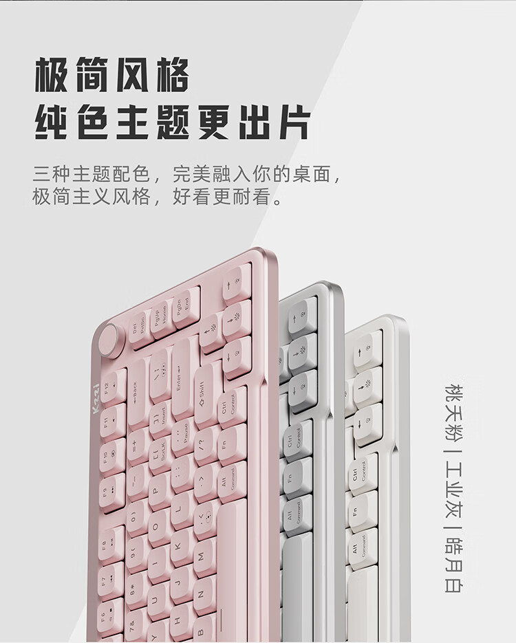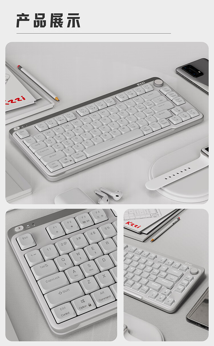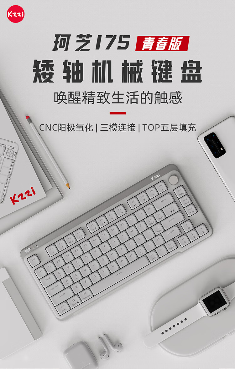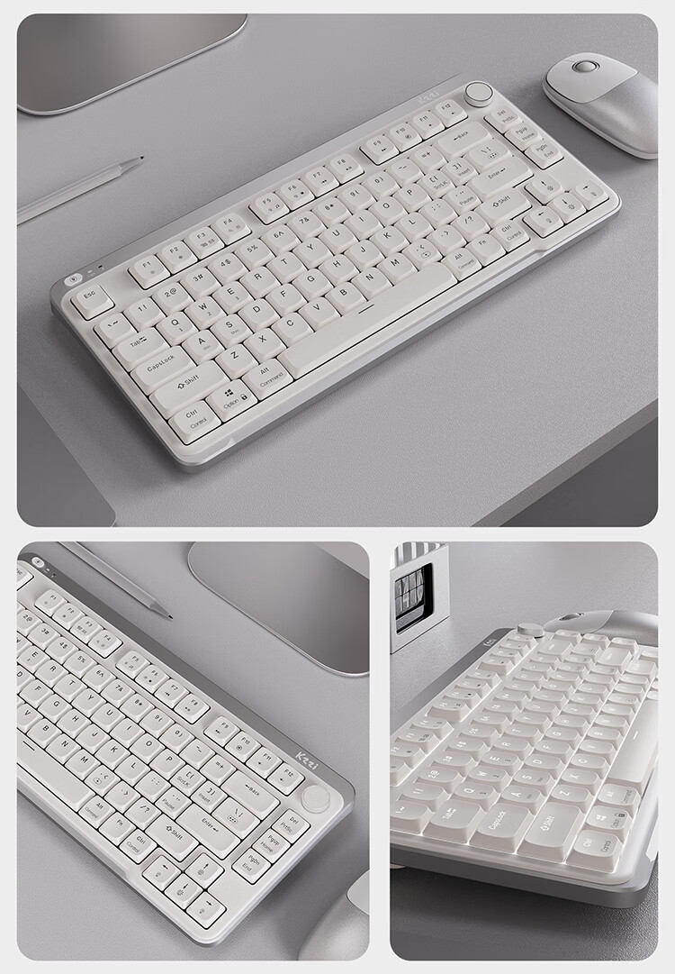 珂芝(KZZI) i75青春版矮轴三模机械键盘商务办公轻薄便携全键热插拔适用苹果风长续航RGB皓月白白雪轴