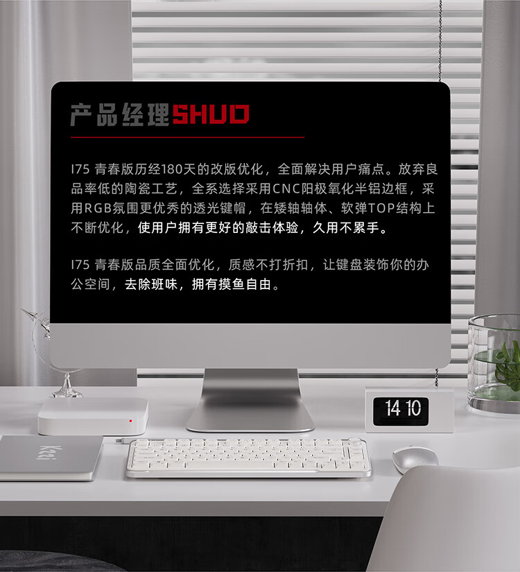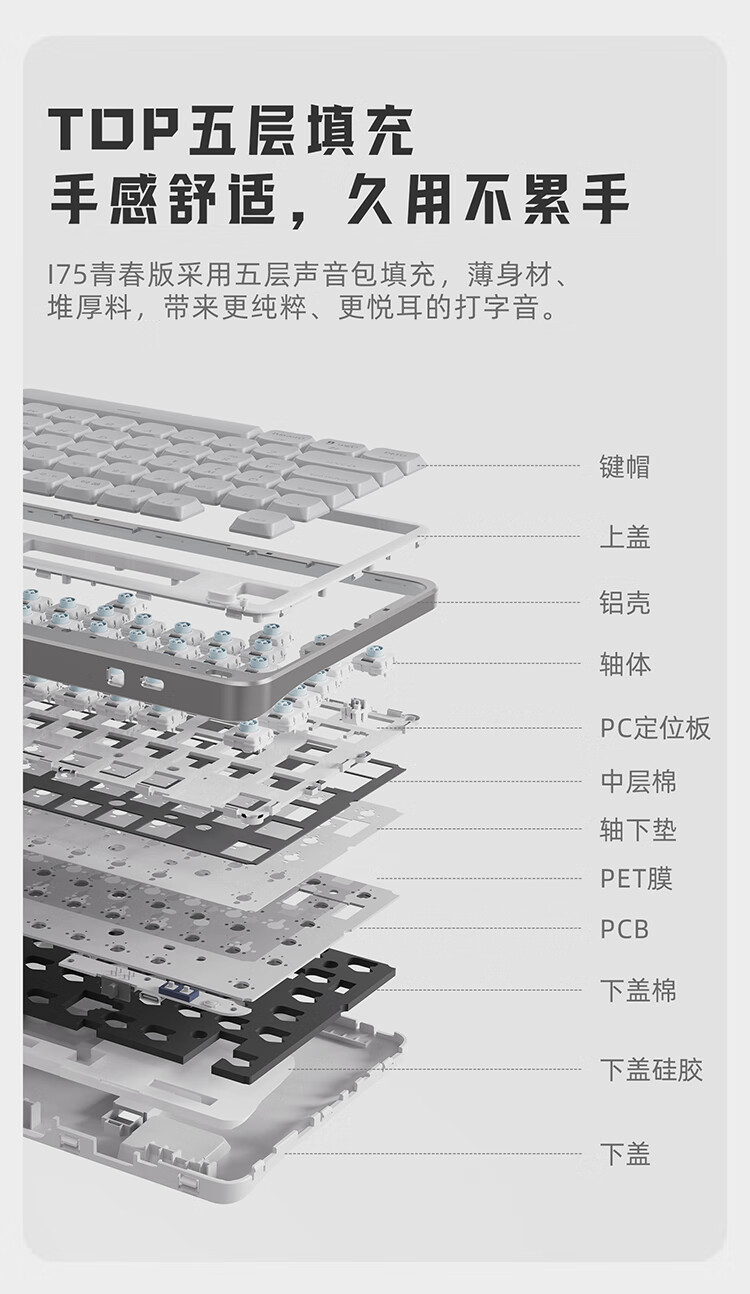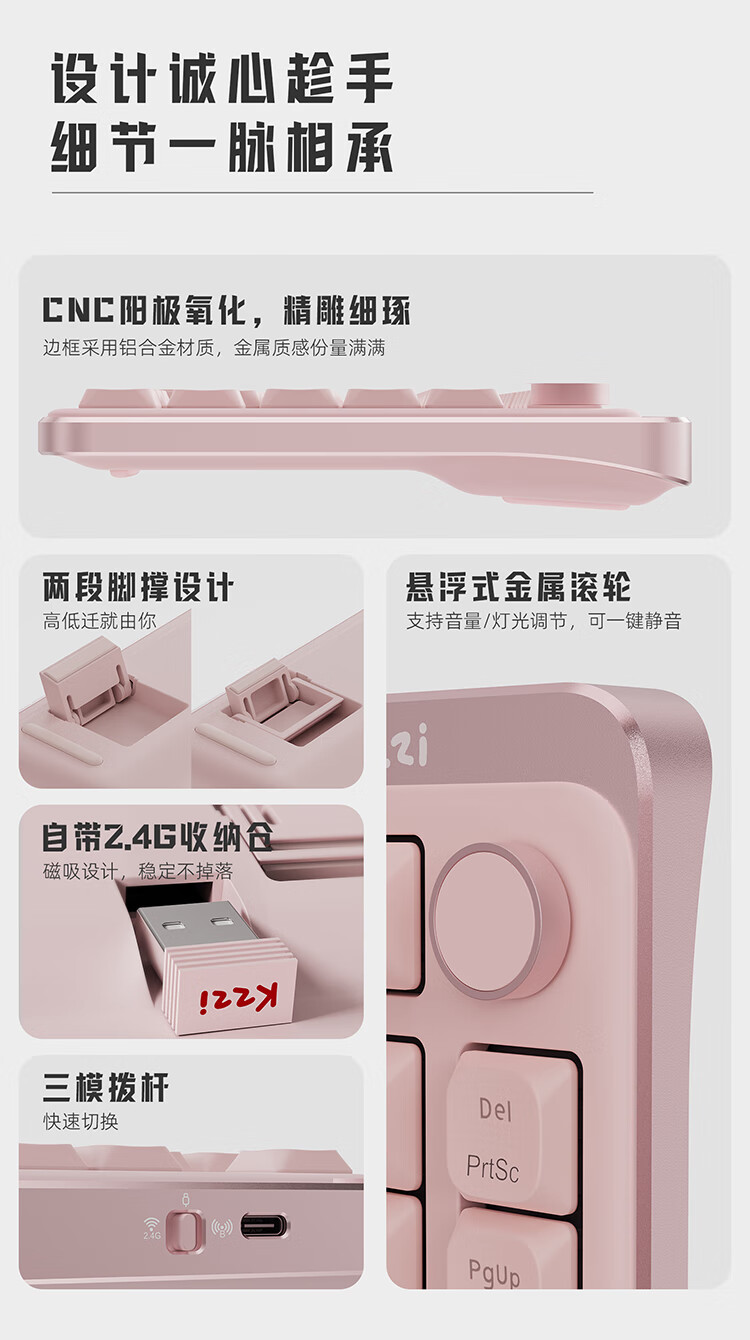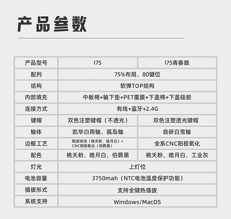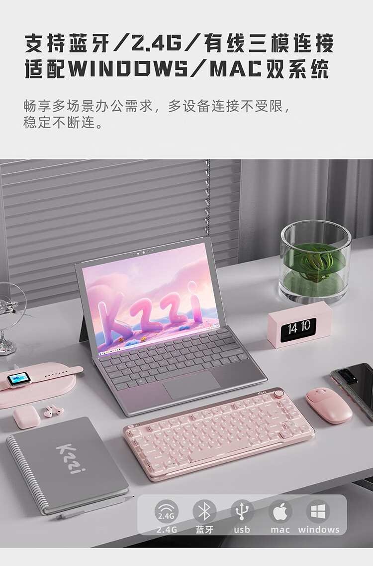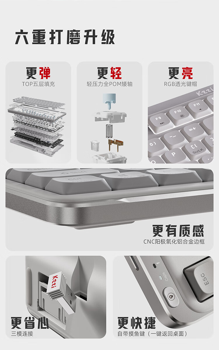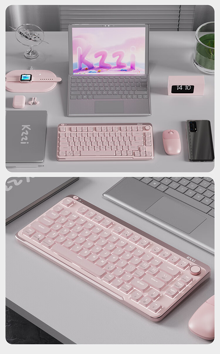 珂芝(KZZI) i75青春版矮轴三模机械键盘商务办公轻薄便携全键热插拔适用苹果风长续航RGB皓月白白雪轴