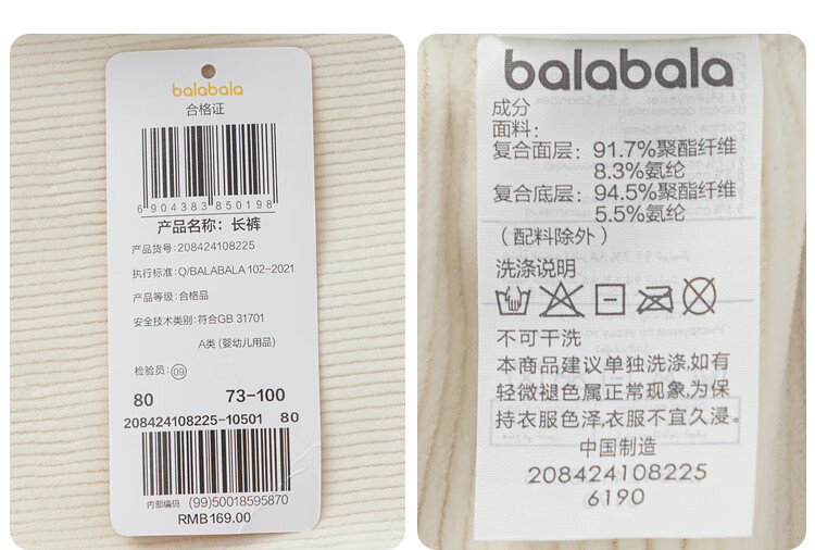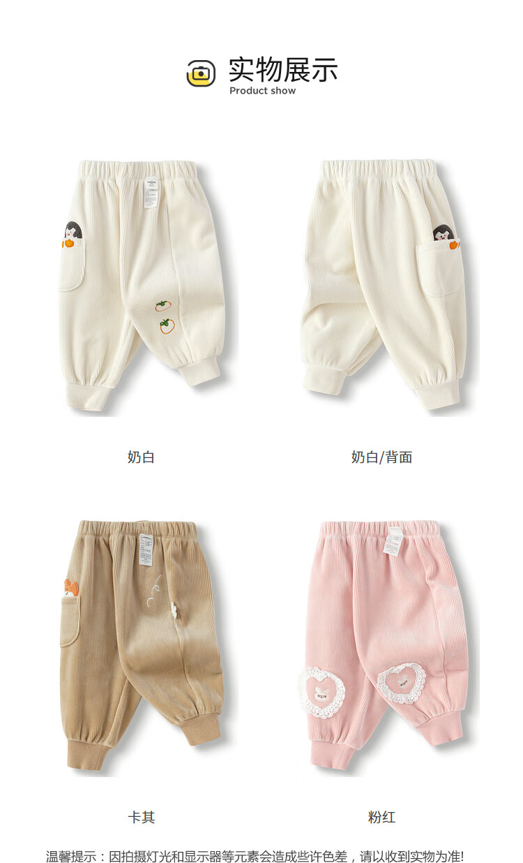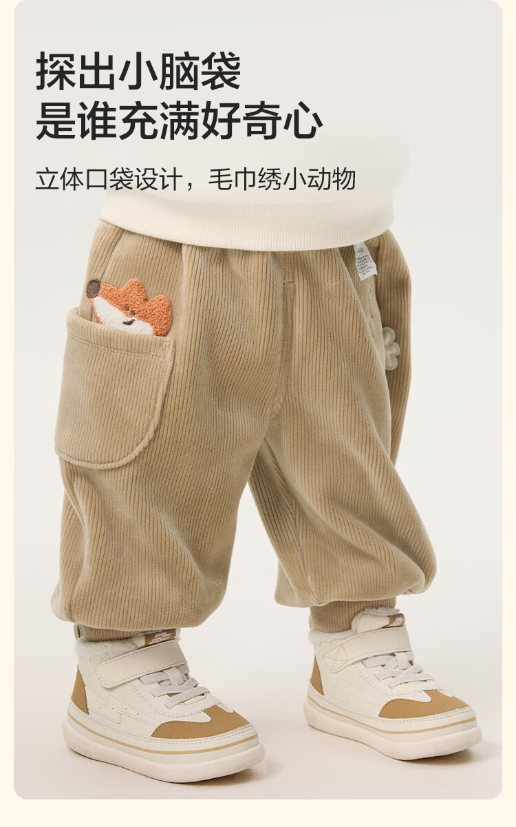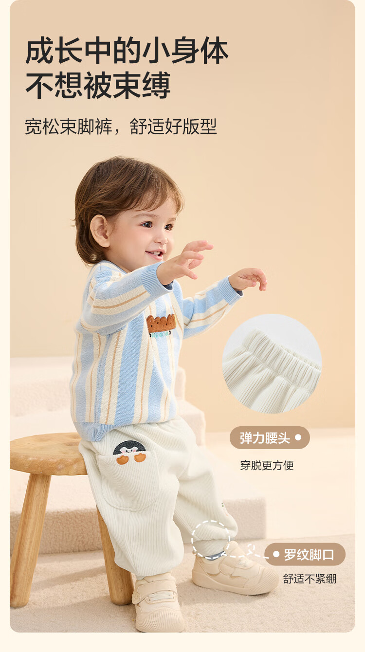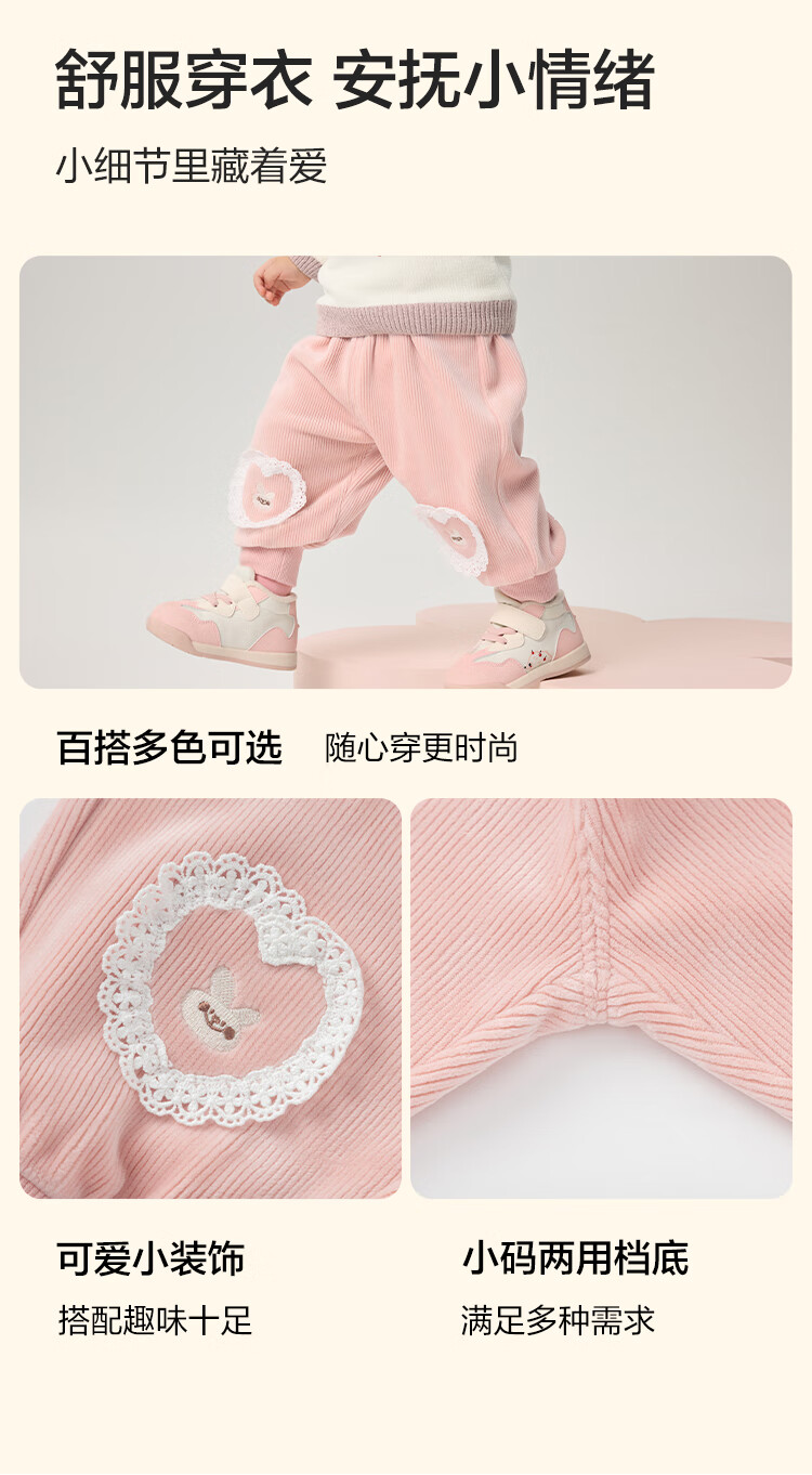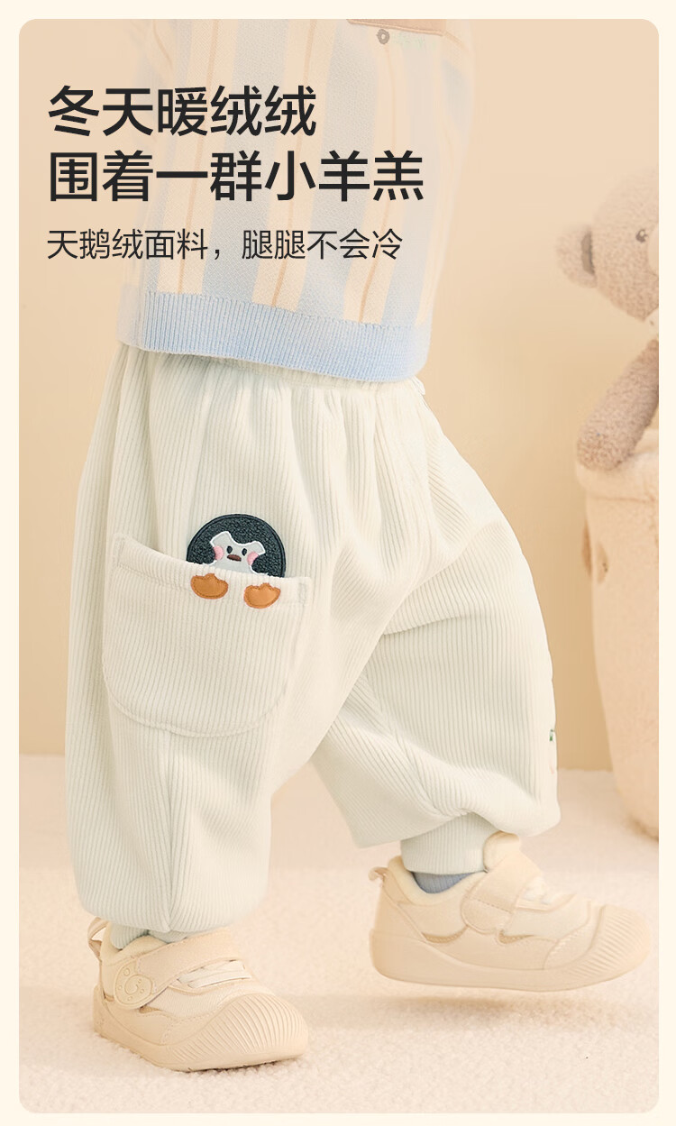 巴拉巴拉婴儿裤子2024宝宝秋冬男女童长裤卫裤天鹅绒时尚洋气208424108225