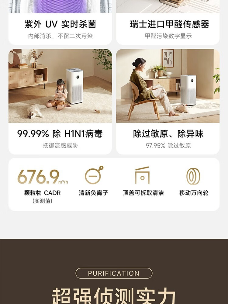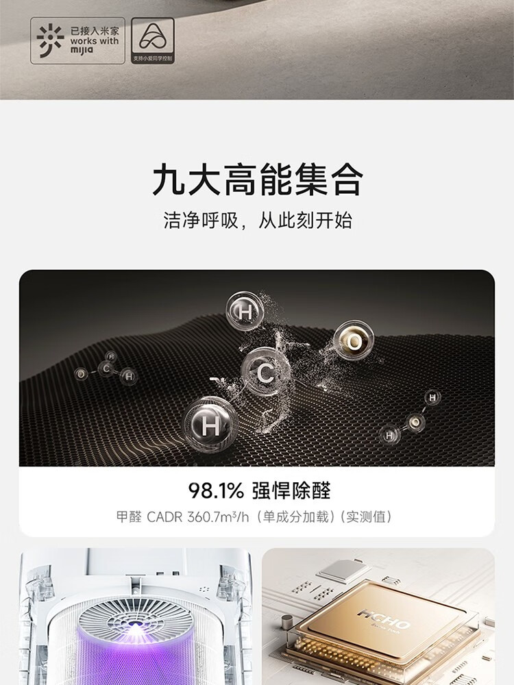 米家小米空气净化器4Pro H家用除甲醛除菌除二手烟味除异味 轻音设计空气伴侣 除PM2.5 米家空气净化器 4 Pro H