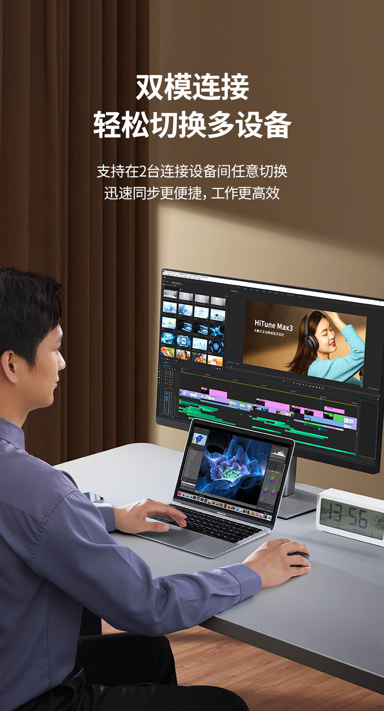 绿联无线蓝牙双模鼠标 办公轻音鼠标 适用苹果Mac华为Mate笔记本iPad平板 按键可自定义人体工学鼠标