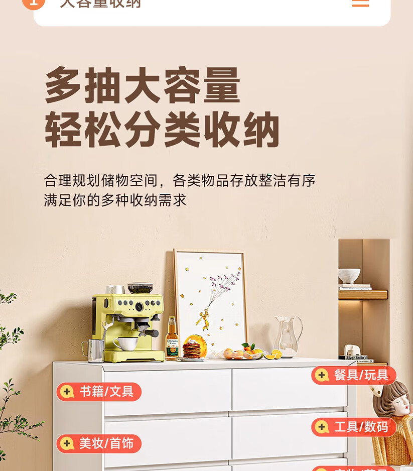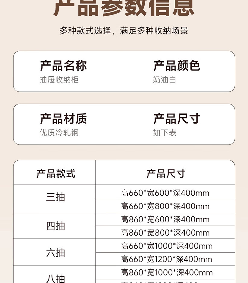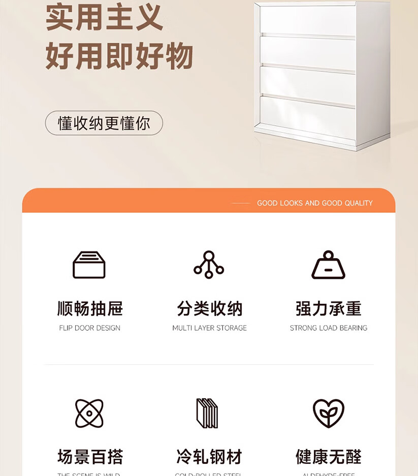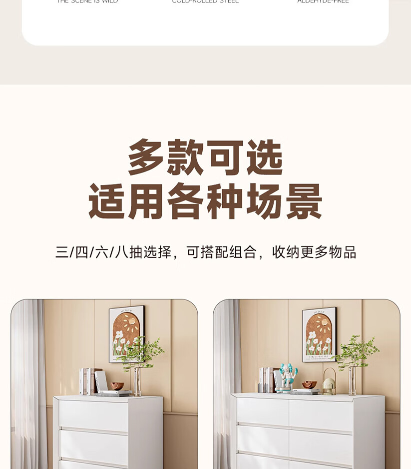 菲利特钢制菱形斗柜简约铁艺储物柜收纳柜抽屉柜奶油风落地多层抽屉柜 三抽收纳柜80cm宽 自行安装