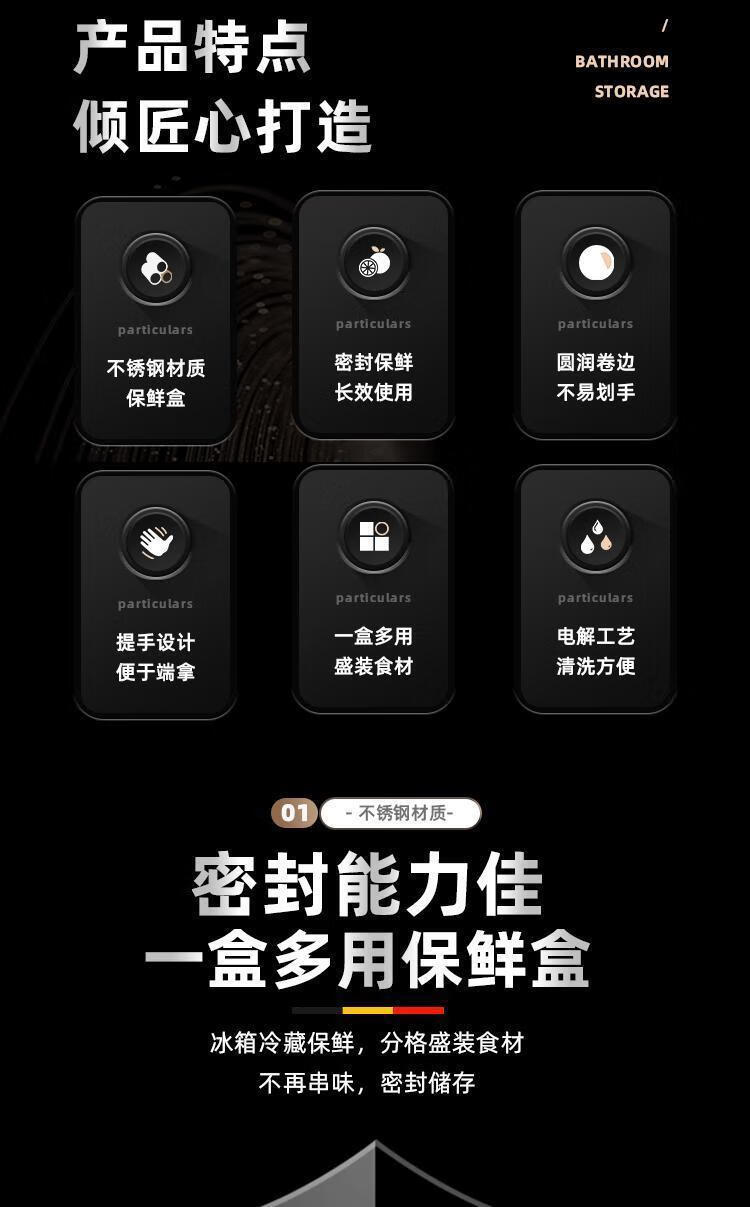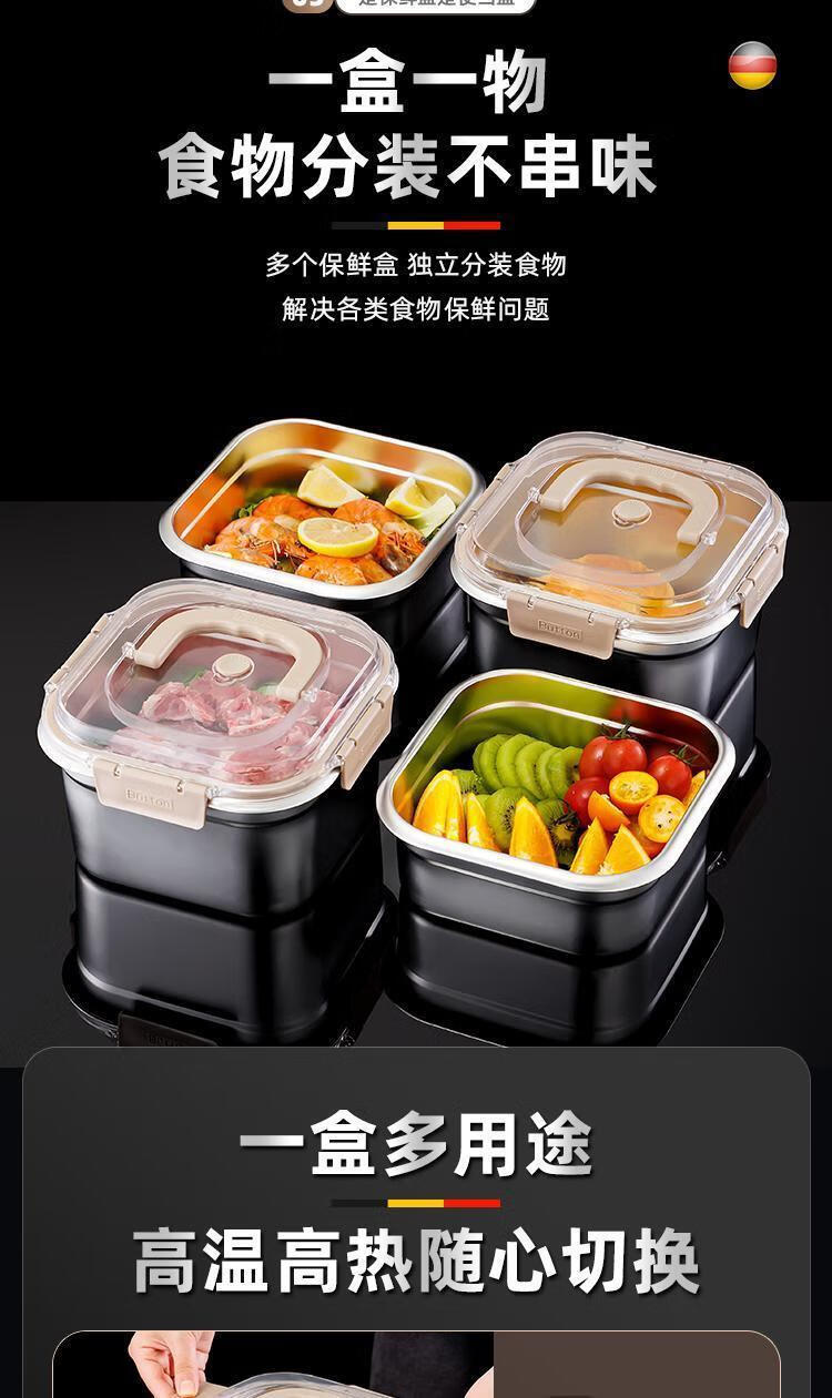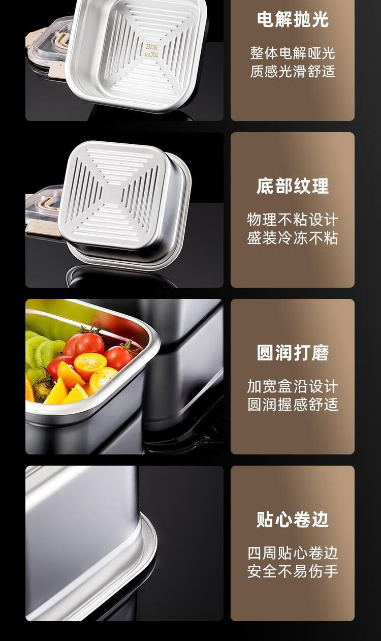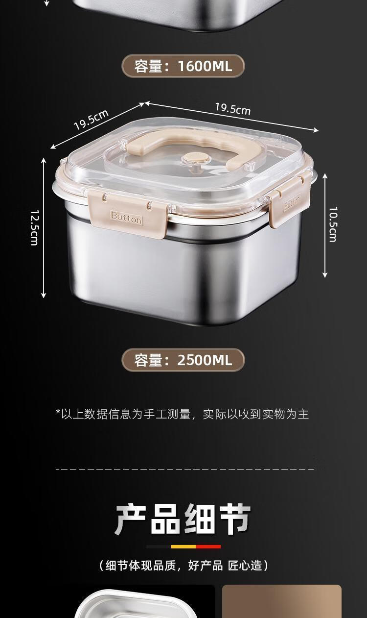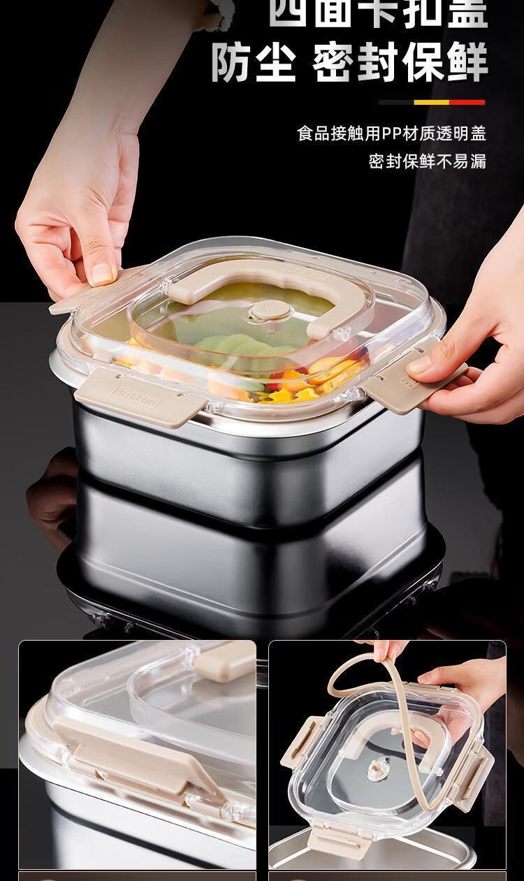 LZJV316L不锈钢保鲜盒加厚带盖密封冰箱收纳盒户外便携式 2400ml