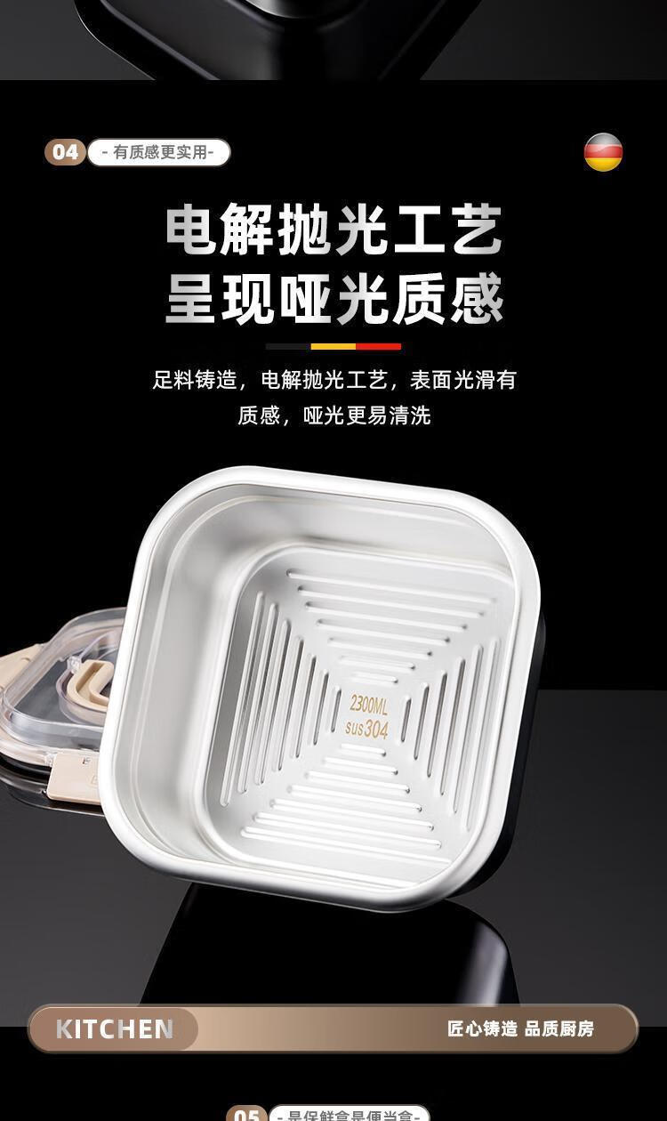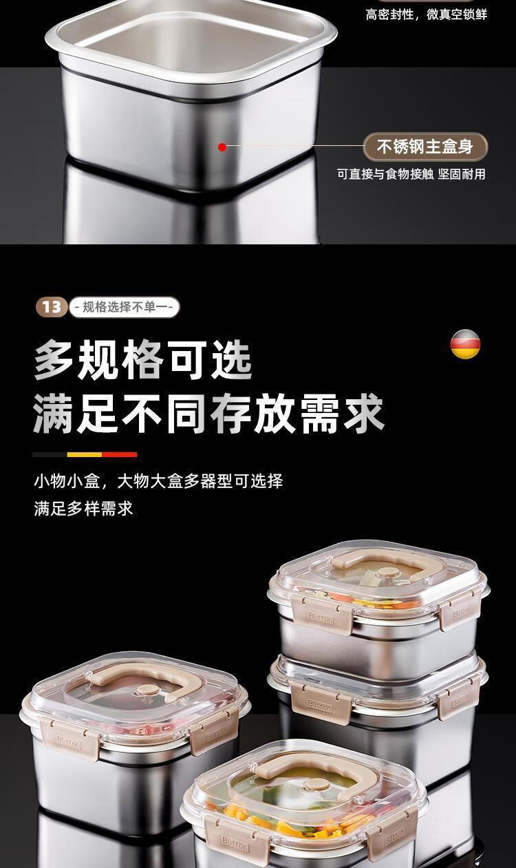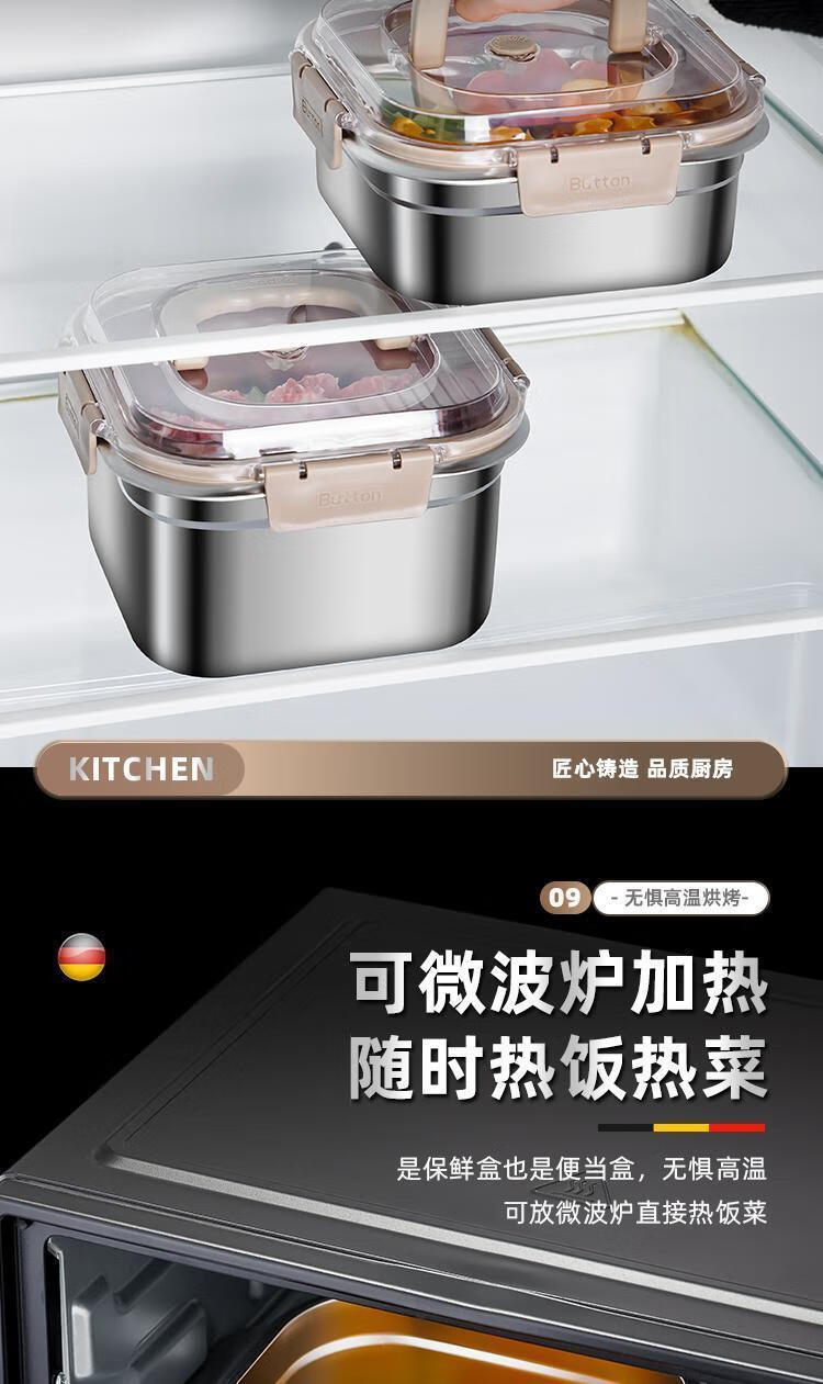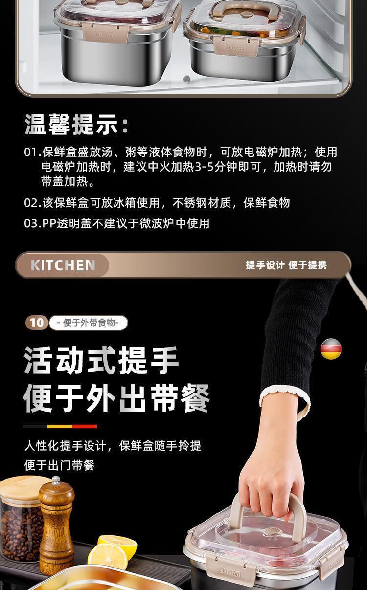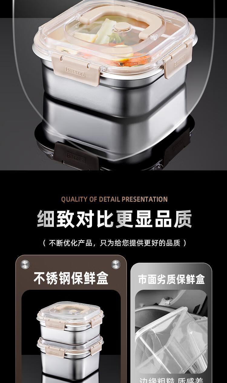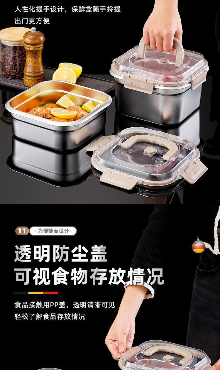 LZJV316L不锈钢保鲜盒加厚带盖密封冰箱收纳盒户外便携式 2400ml