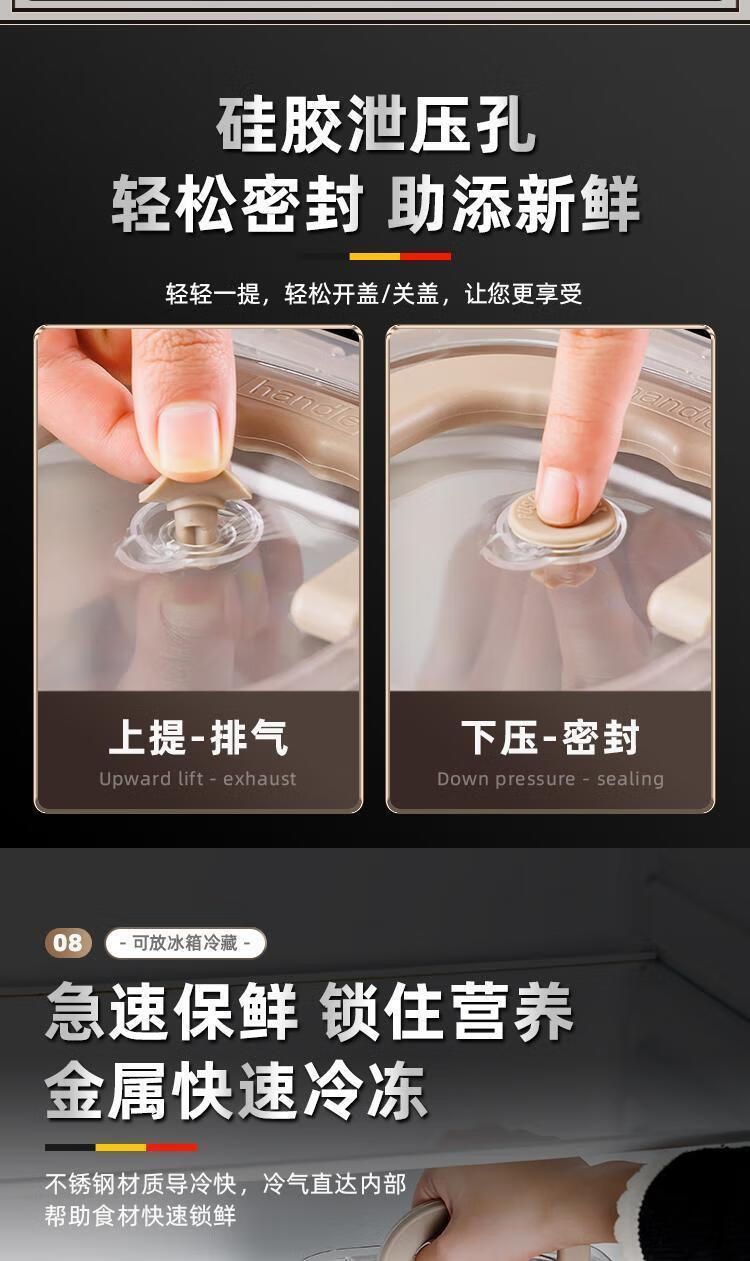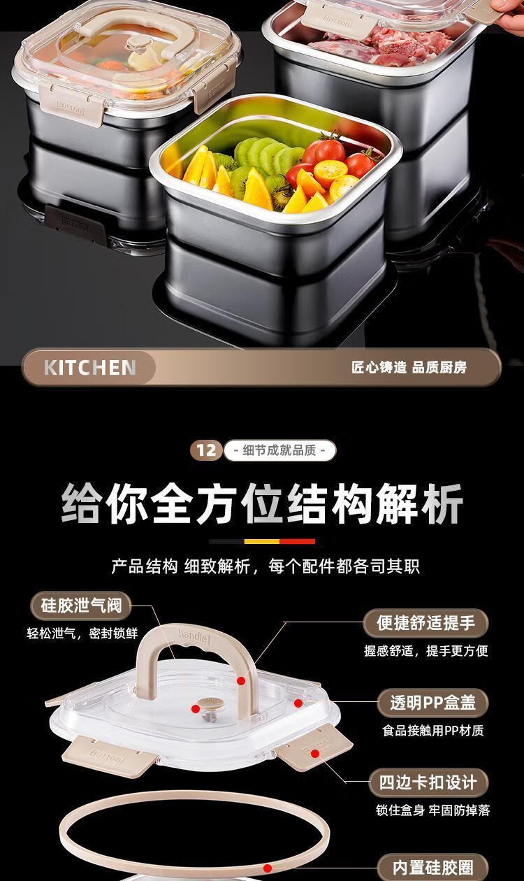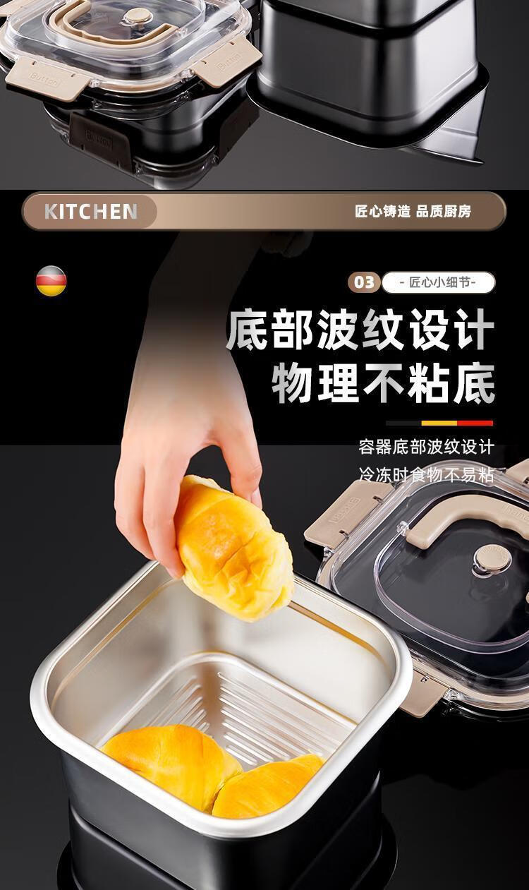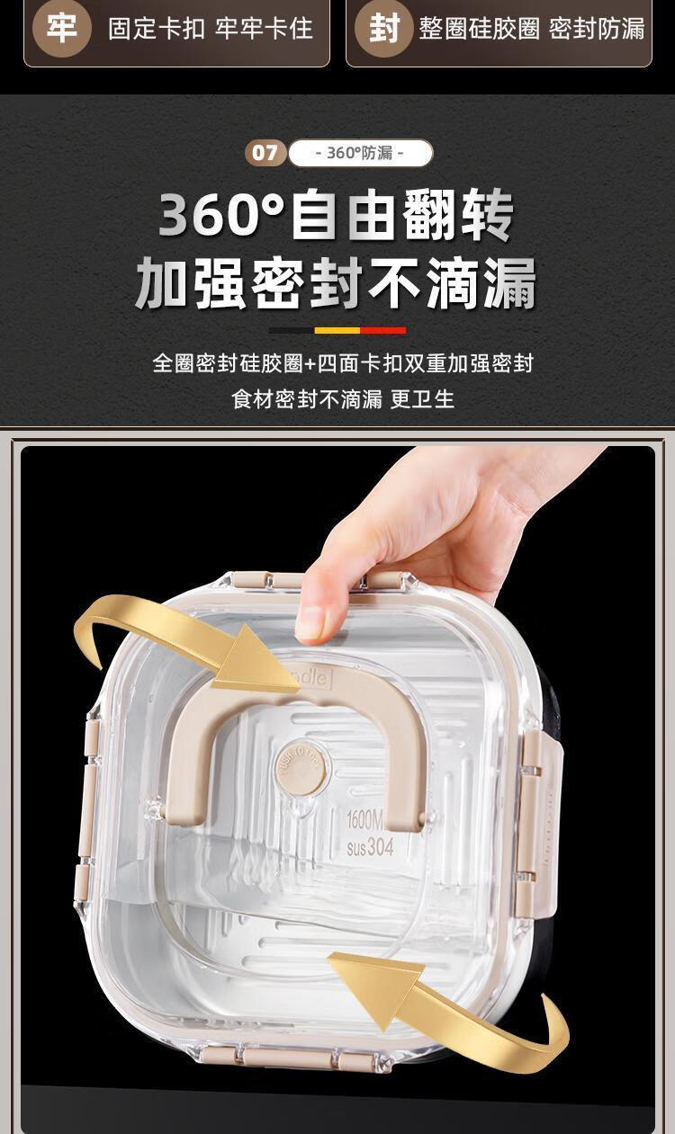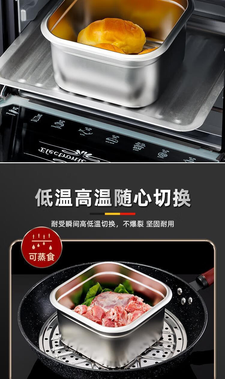 LZJV316L不锈钢保鲜盒加厚带盖密封冰箱收纳盒户外便携式 2400ml