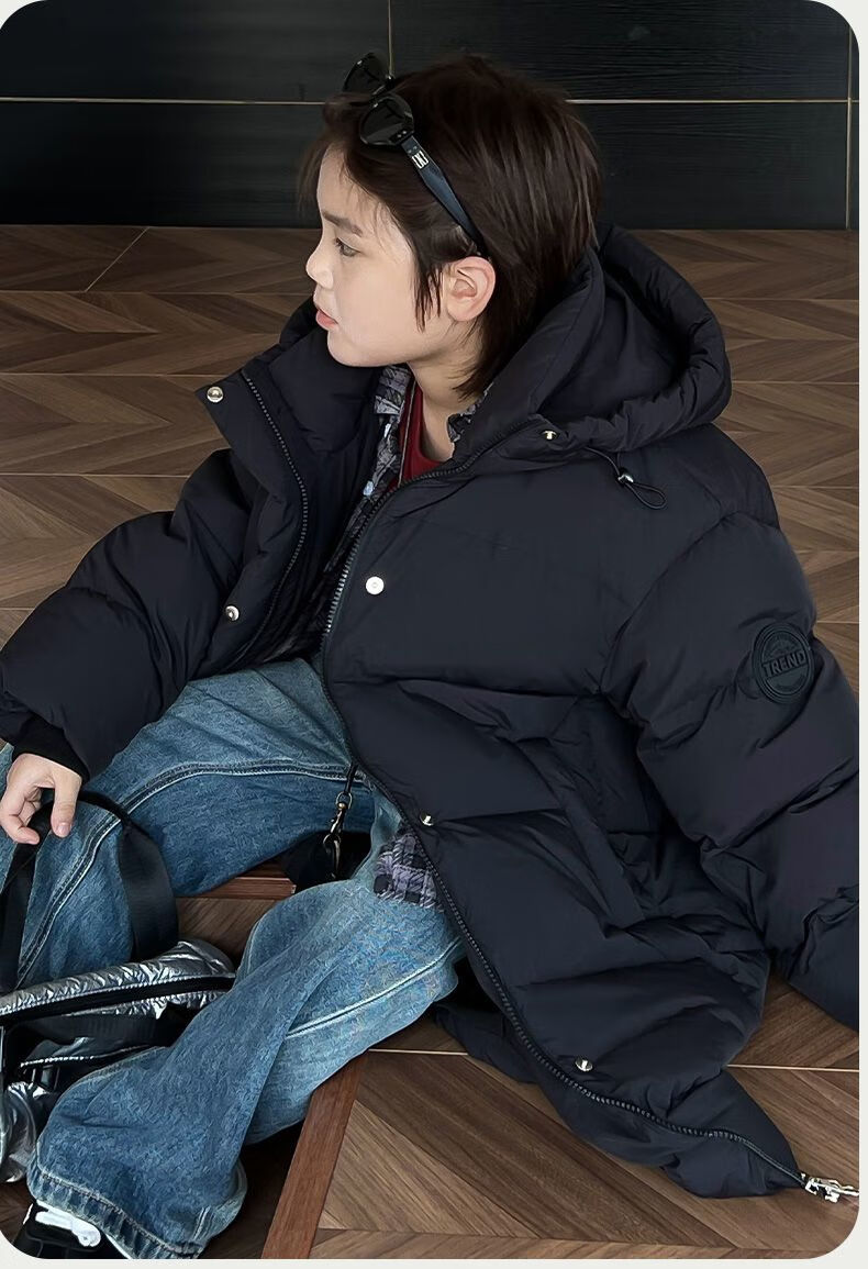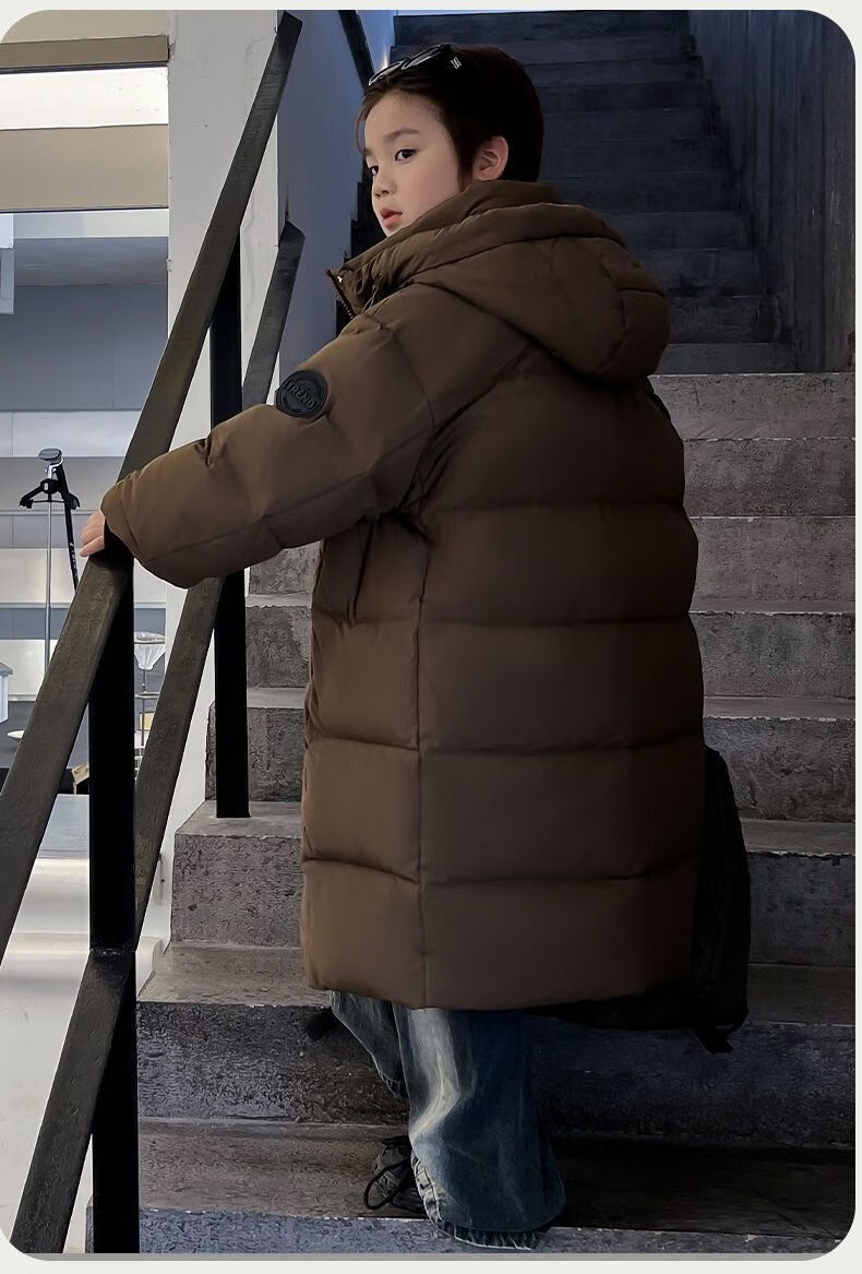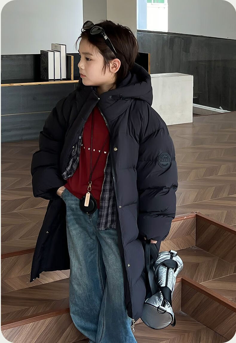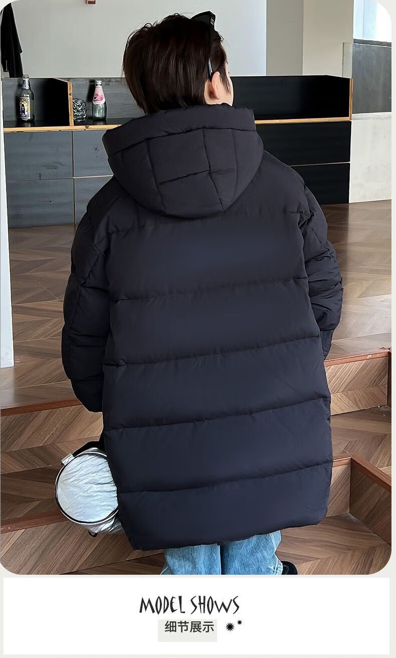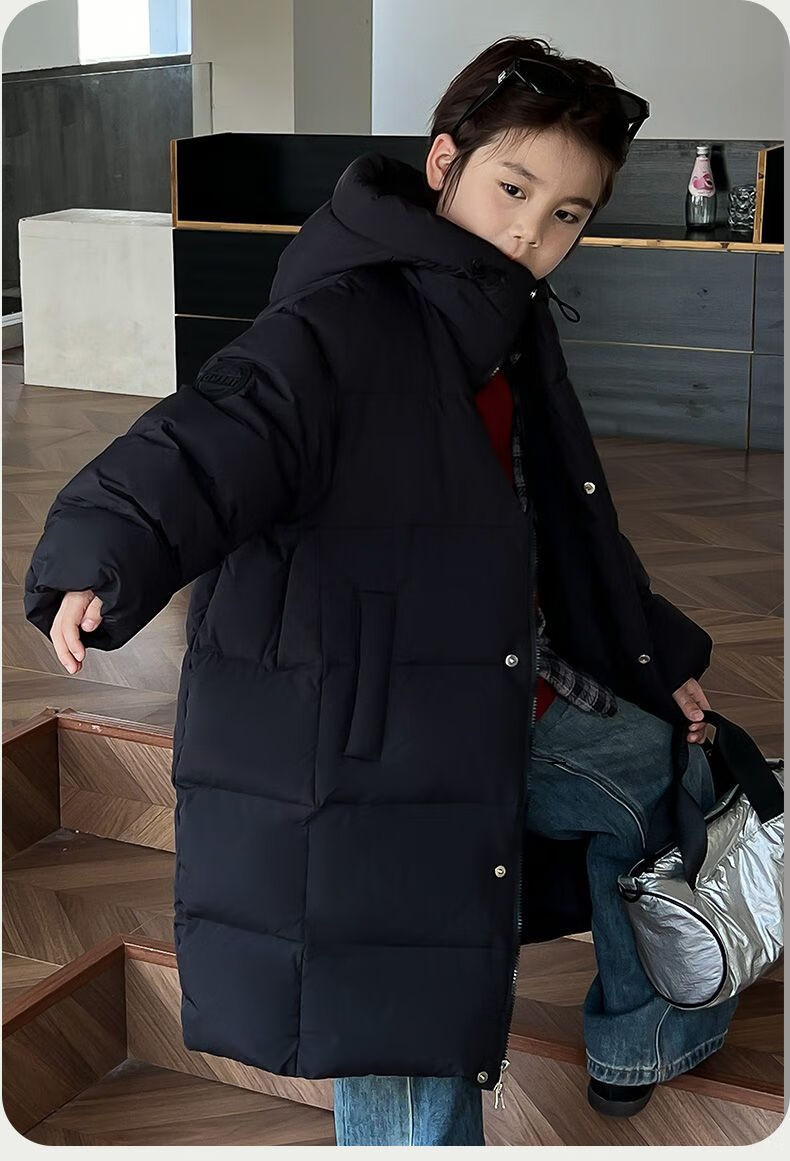 迪士尼(Disney)儿童羽绒服男童中长款2025冬季新款韩版洋气加厚冬装中大童装外套 官方旗舰黑色 130