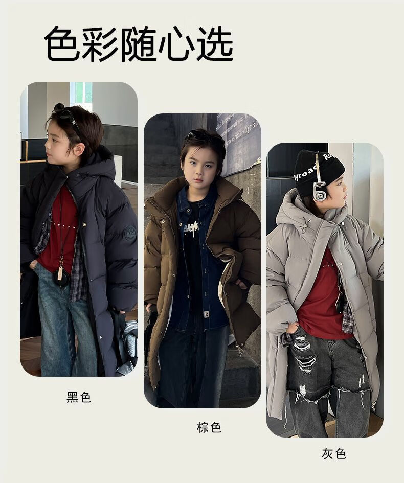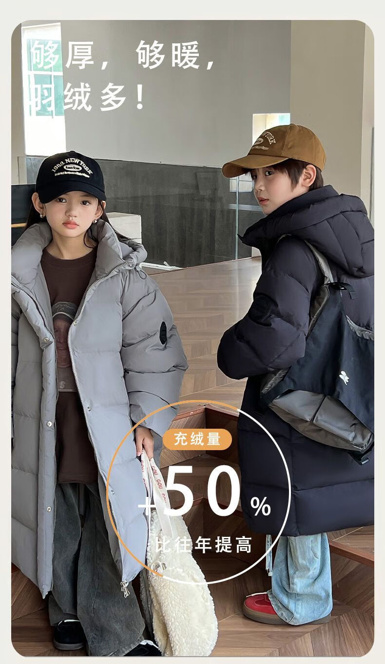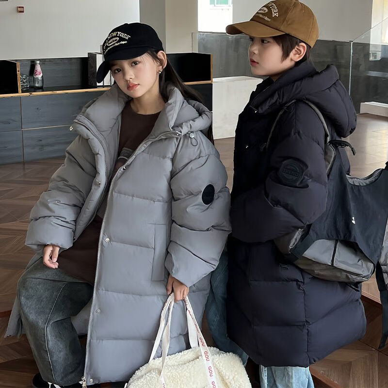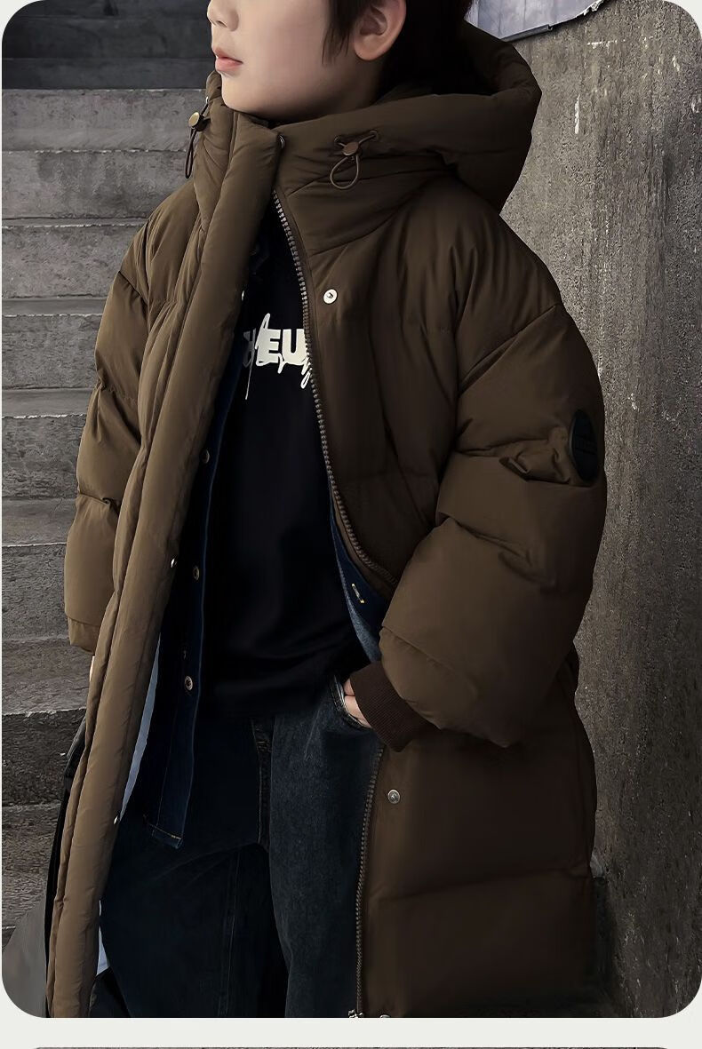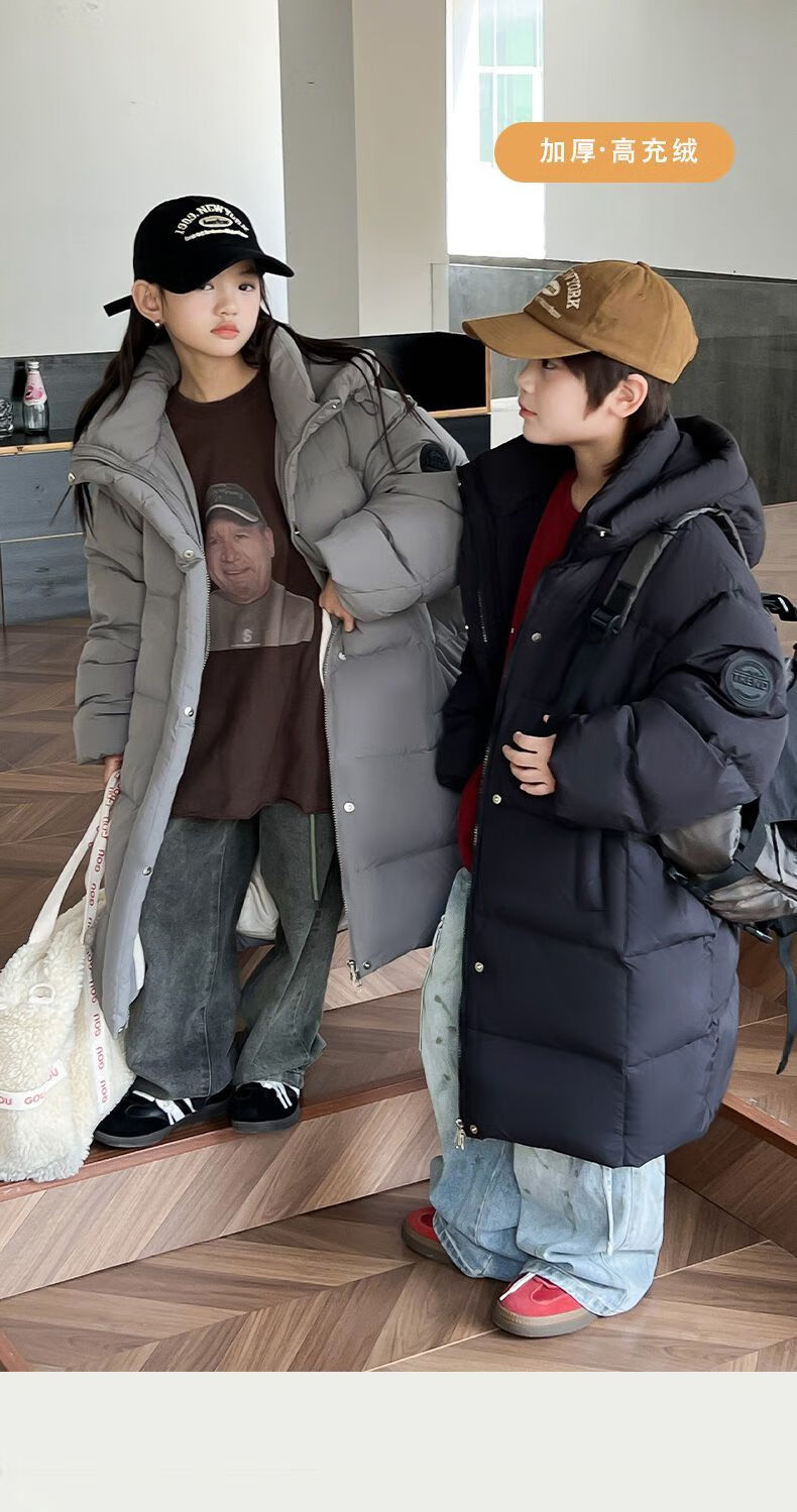 迪士尼(Disney)儿童羽绒服男童中长款2025冬季新款韩版洋气加厚冬装中大童装外套 官方旗舰黑色 130