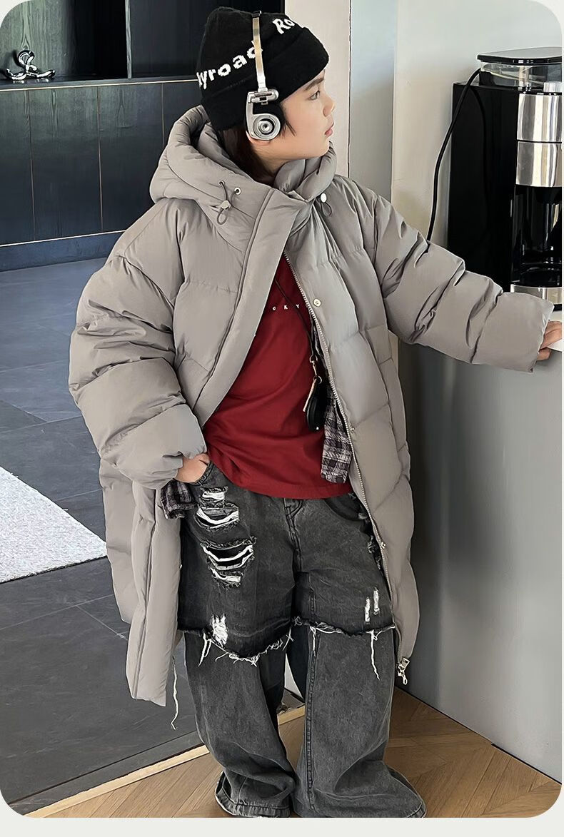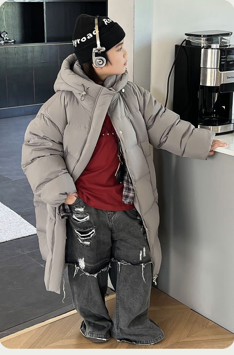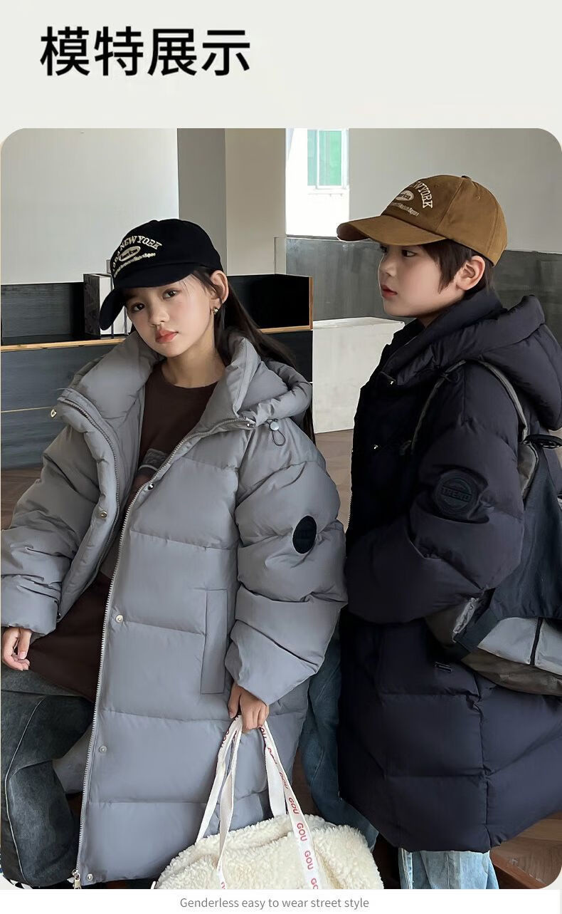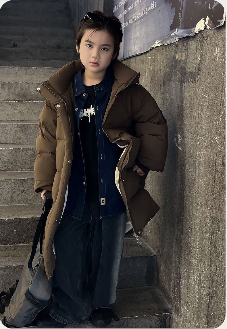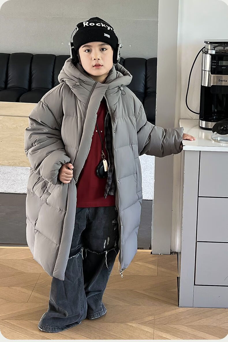 迪士尼(Disney)儿童羽绒服男童中长款2025冬季新款韩版洋气加厚冬装中大童装外套 官方旗舰黑色 130