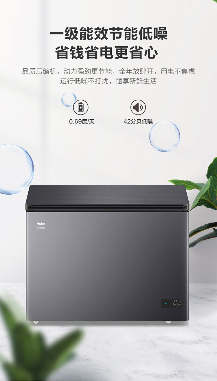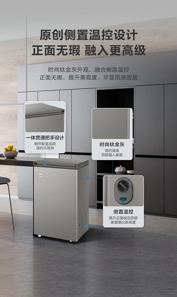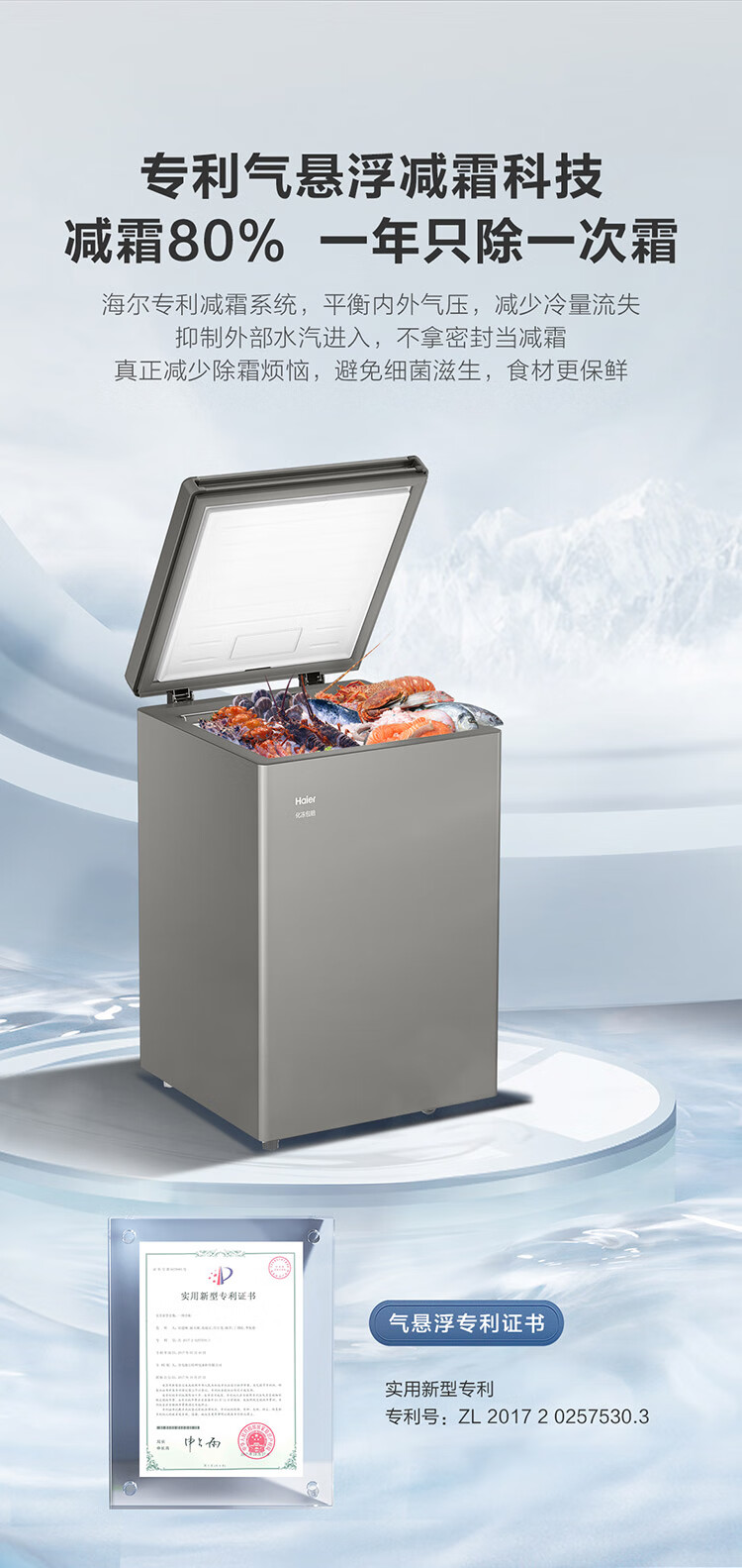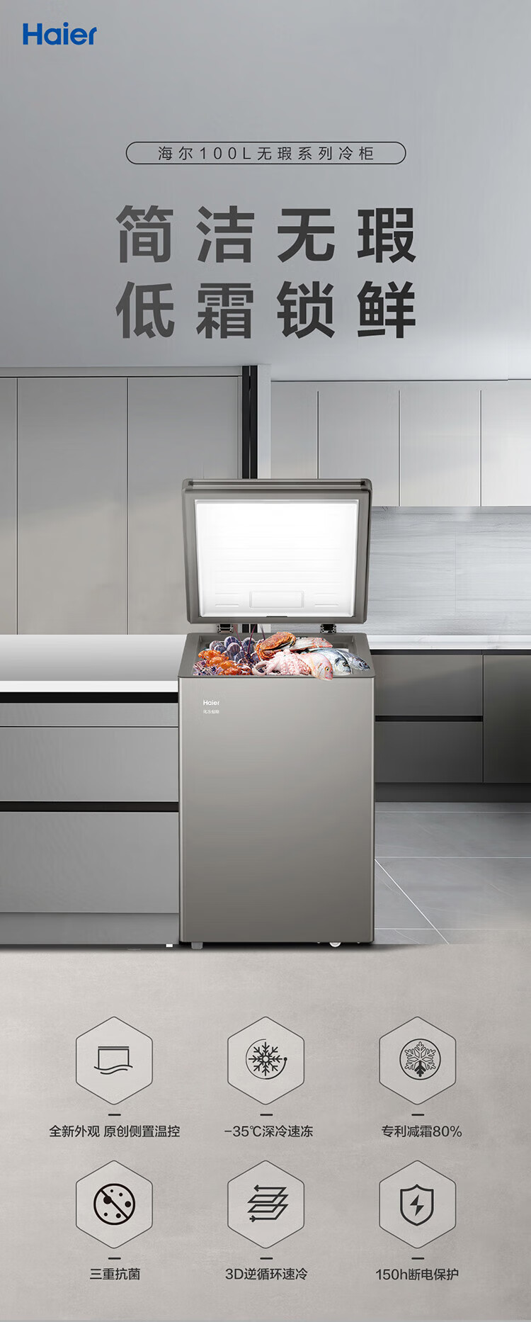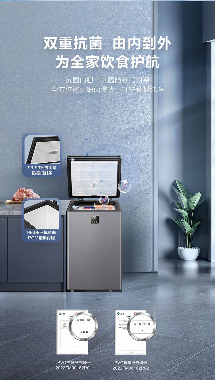 海尔(Haier)冰柜家用 深冷速冻锁鲜一级能效节能省电减霜80%抗菌100小时断电保护卧式小冰柜冷冻冷藏柜 100L |-35℃深冷+三重抗菌+减霜80%