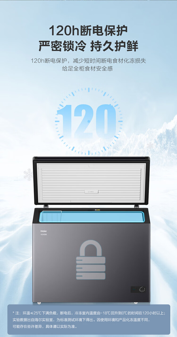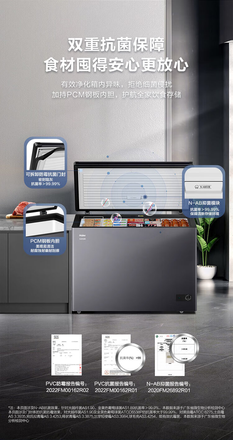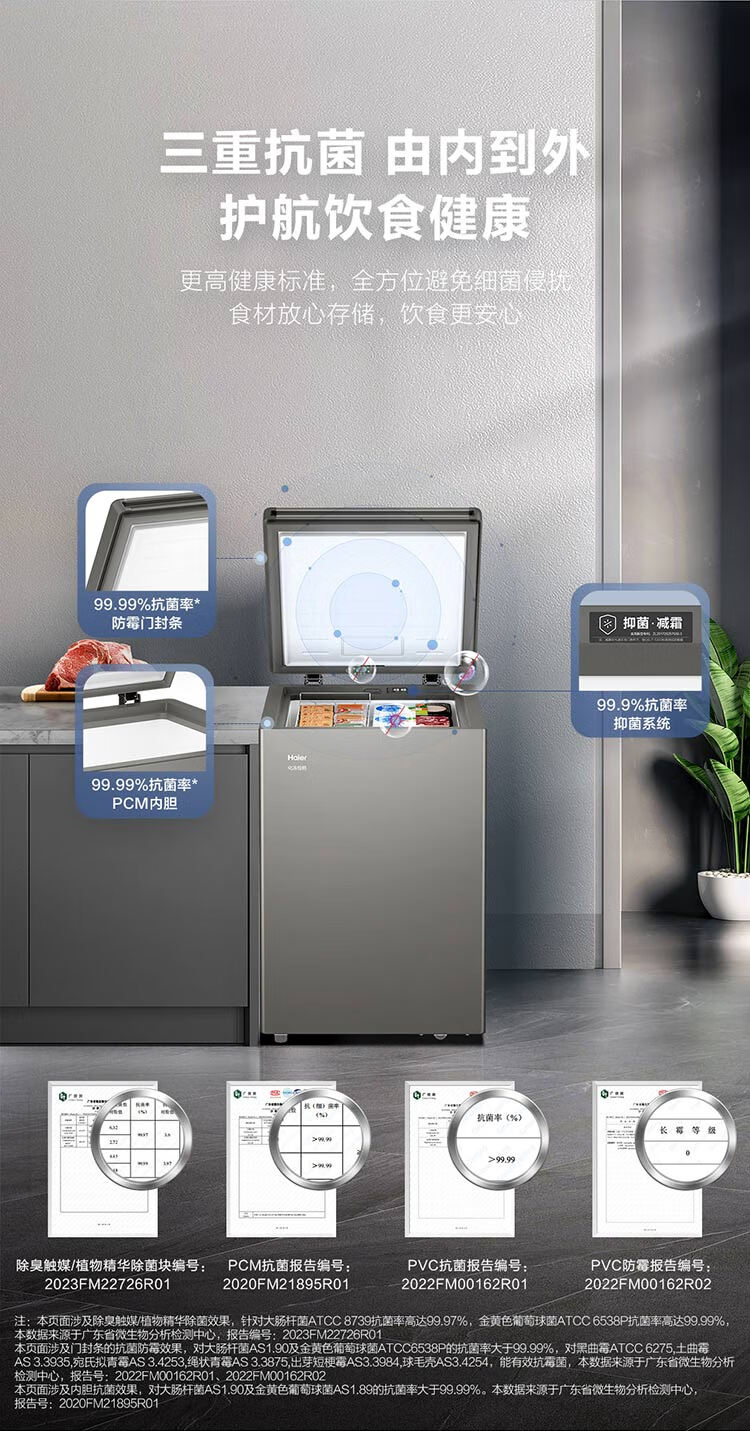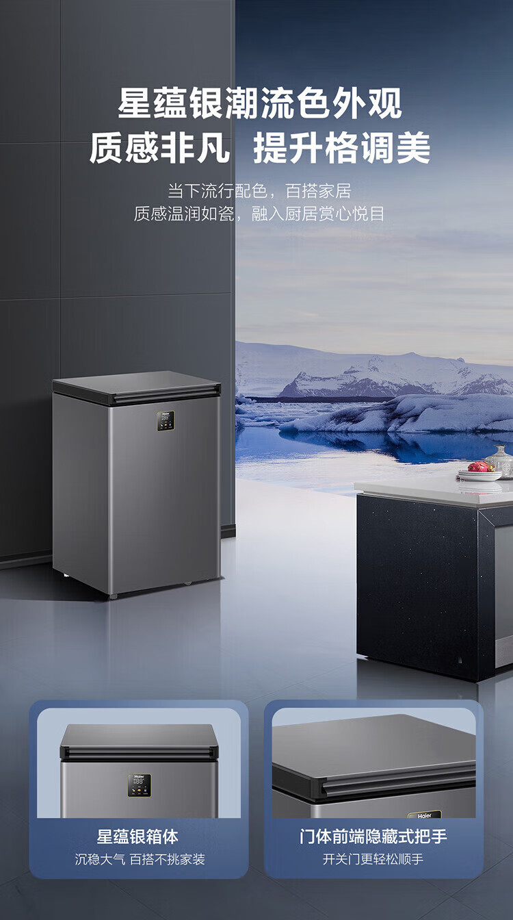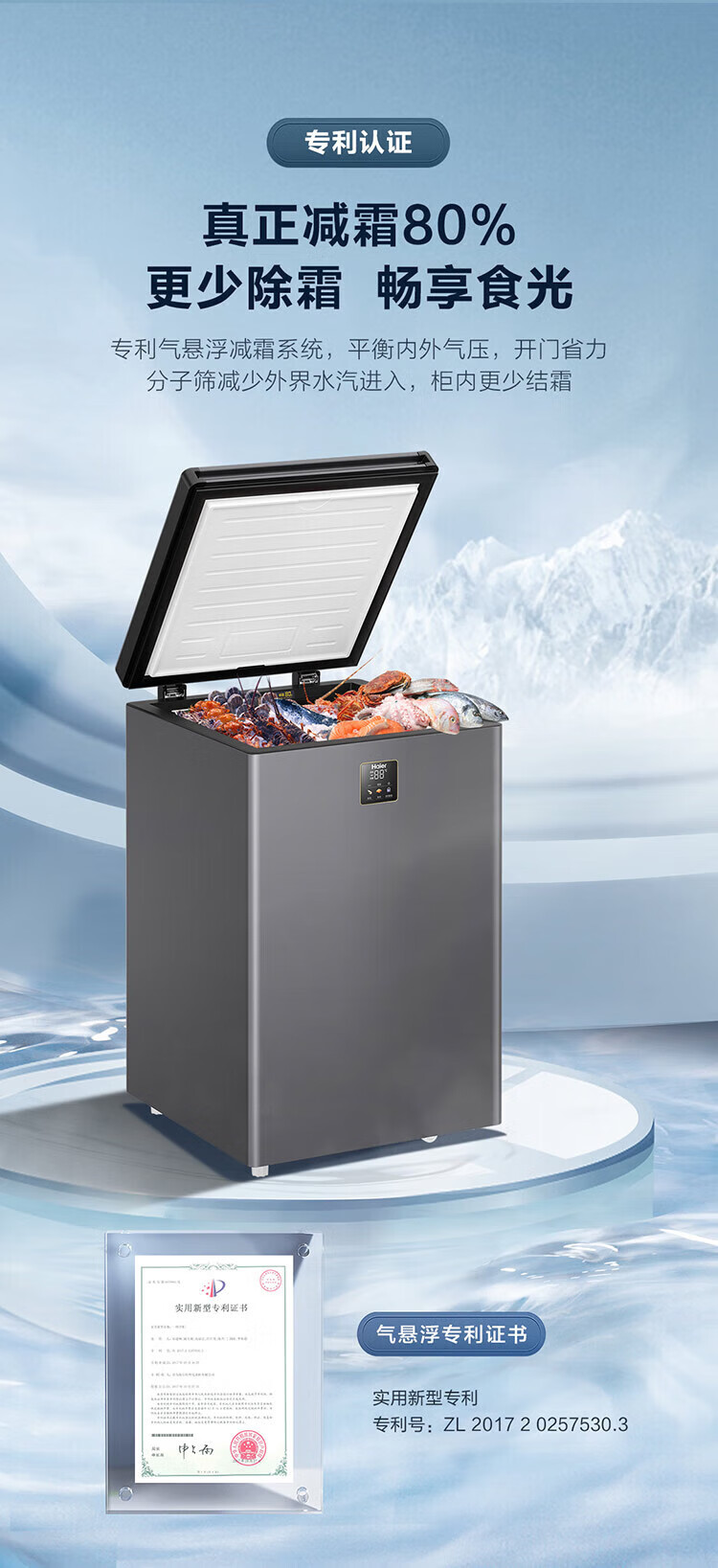 海尔(Haier)冰柜家用 深冷速冻锁鲜一级能效节能省电减霜80%抗菌100小时断电保护卧式小冰柜冷冻冷藏柜 100L |-35℃深冷+三重抗菌+减霜80%
