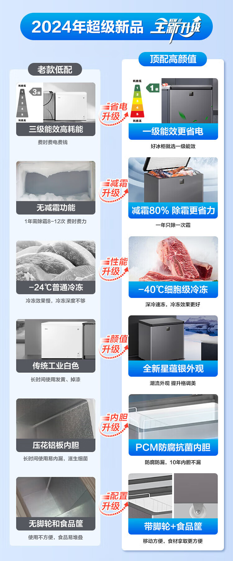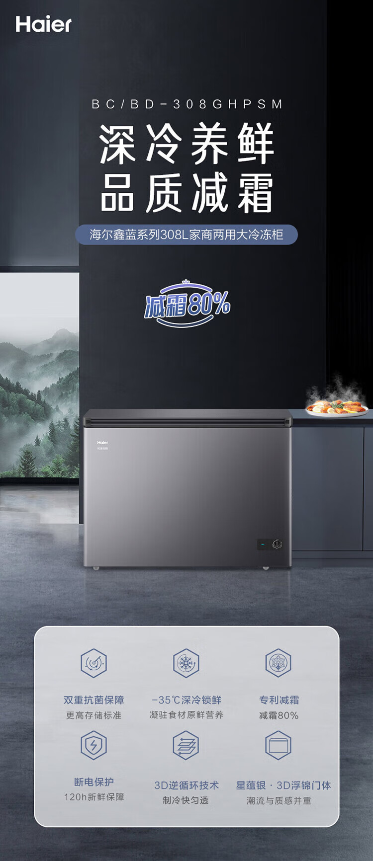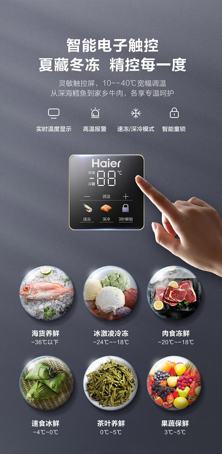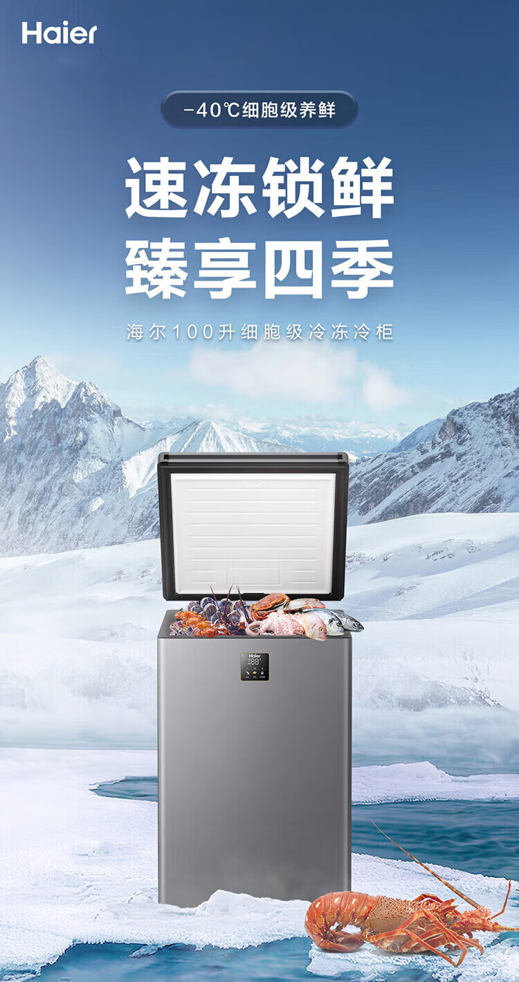 海尔(Haier)冰柜家用 深冷速冻锁鲜一级能效节能省电减霜80%抗菌100小时断电保护卧式小冰柜冷冻冷藏柜 100L |-35℃深冷+三重抗菌+减霜80%