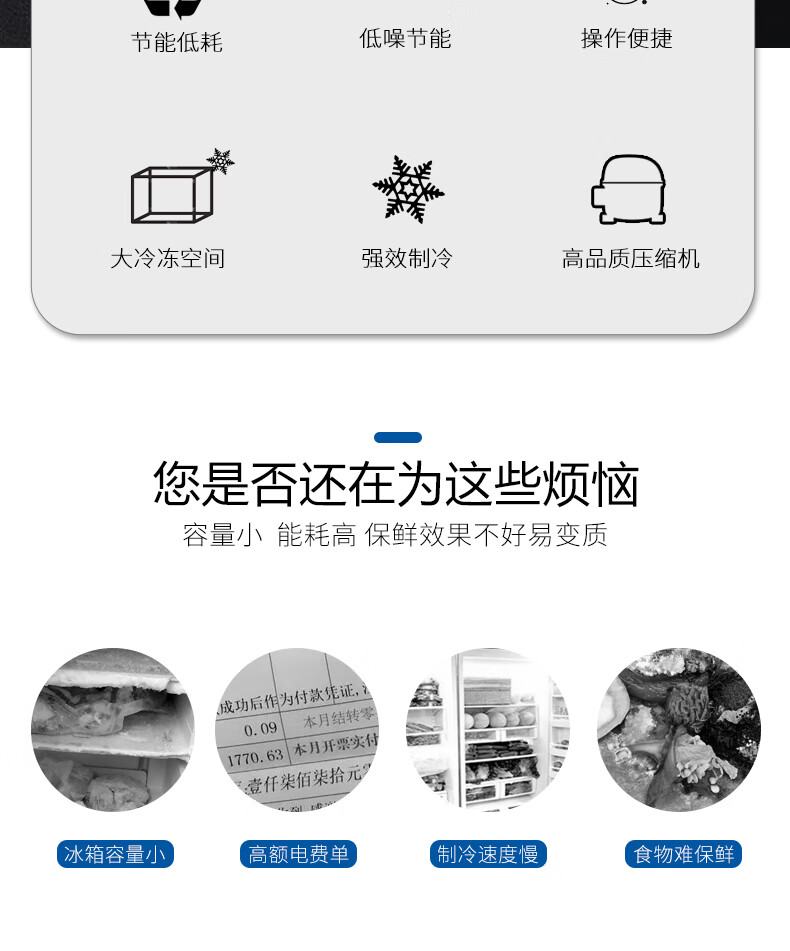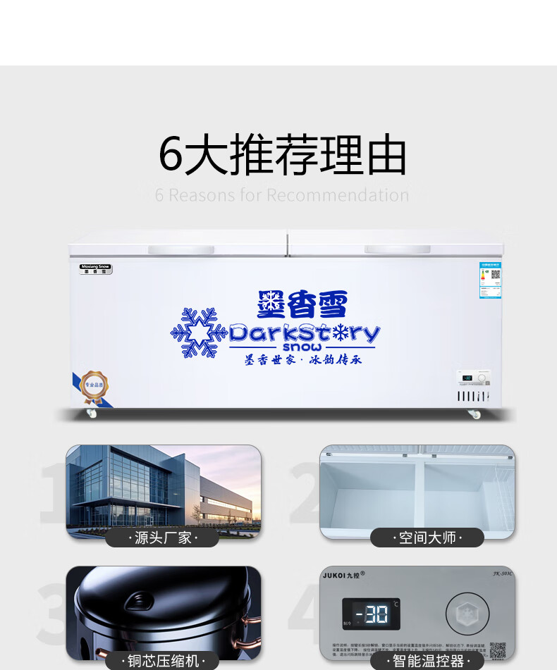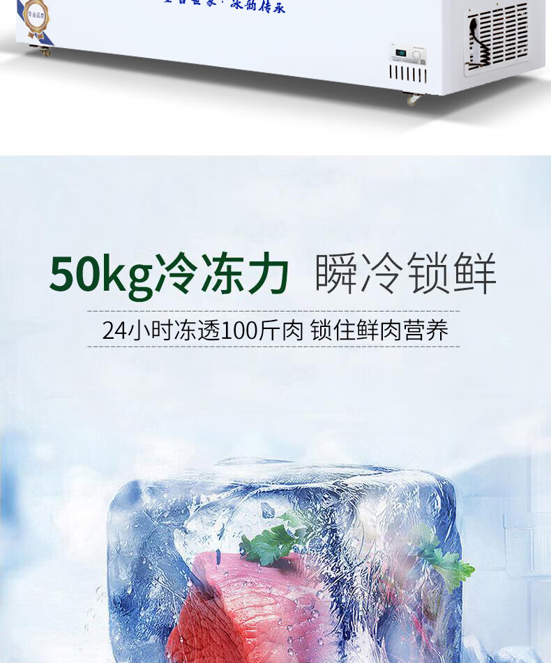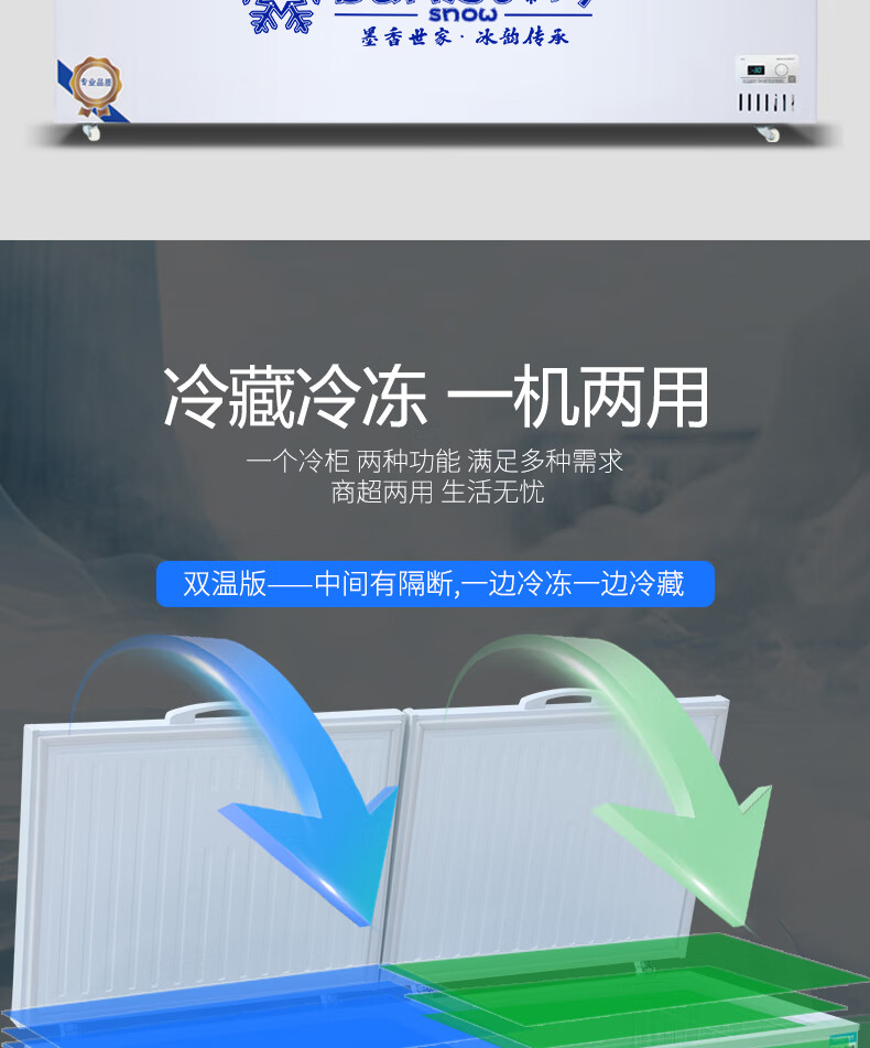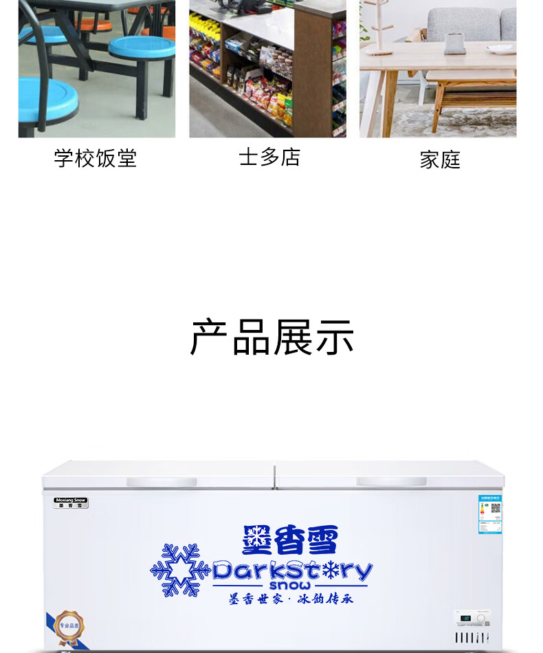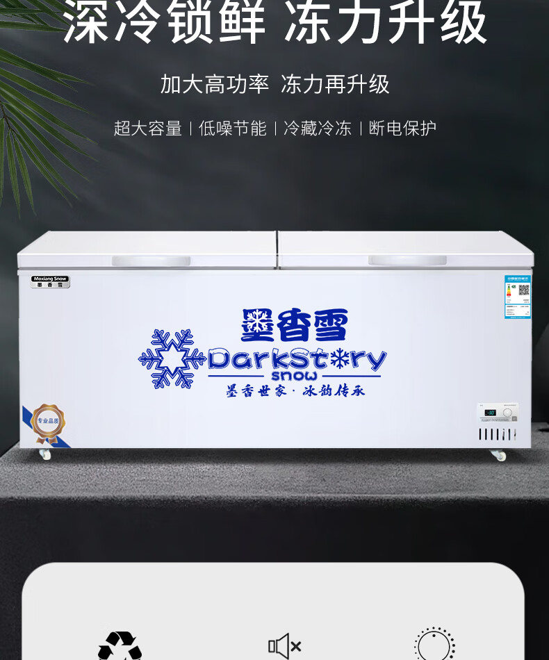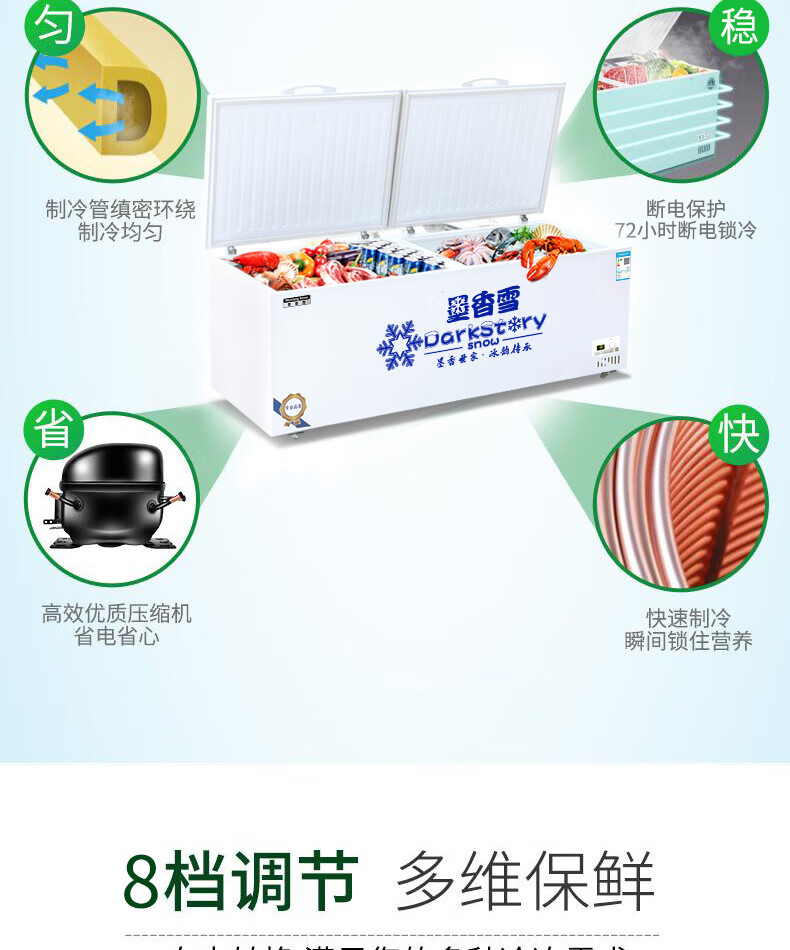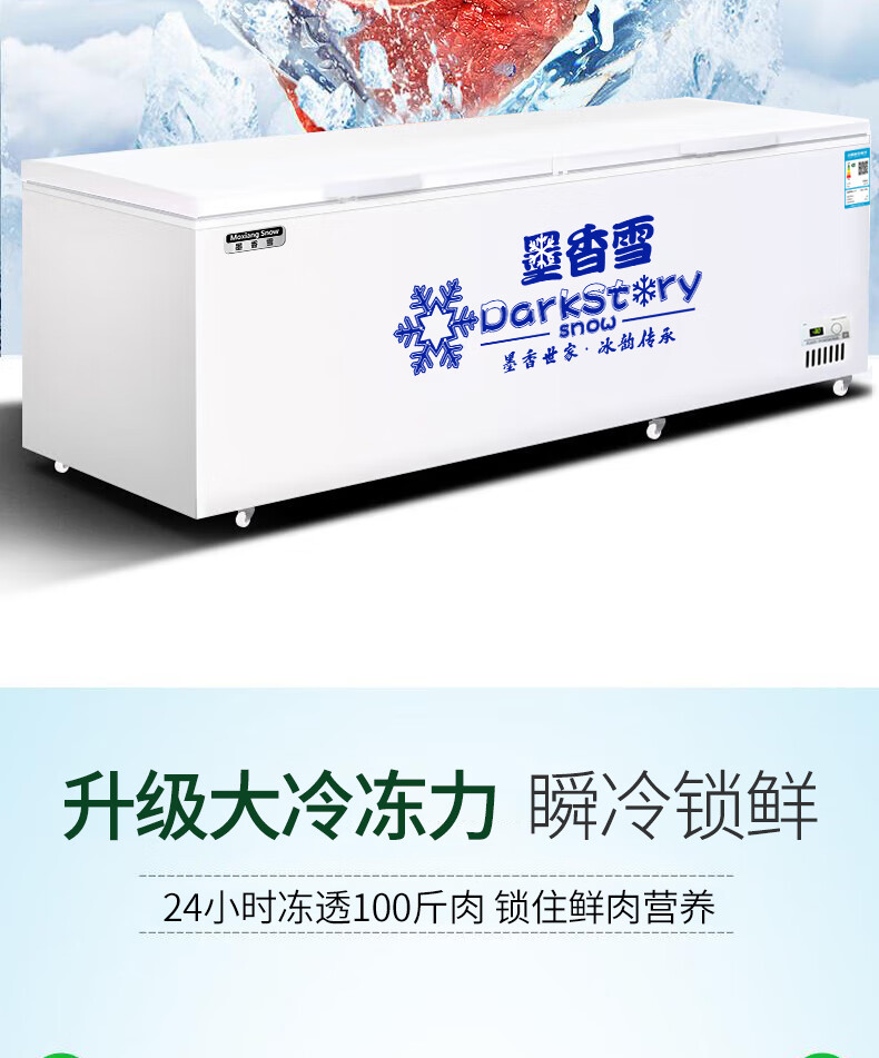 墨香雪冰柜商用大容量全冷冻冷藏卧式冷柜家用单双温两用大冰柜展示柜 1688单温铜管智尊款(长2.2米商用大容量)
