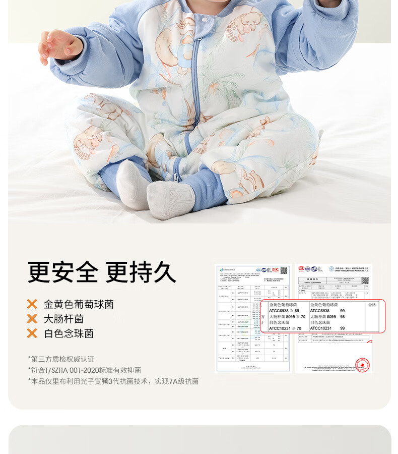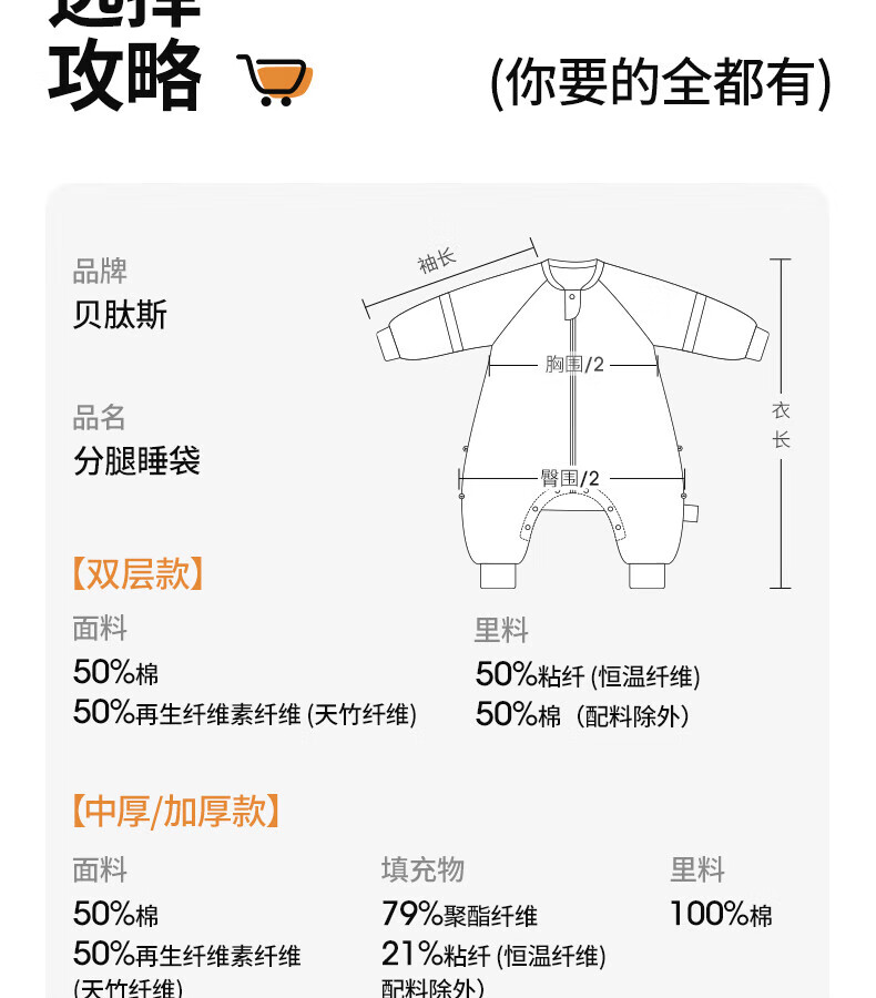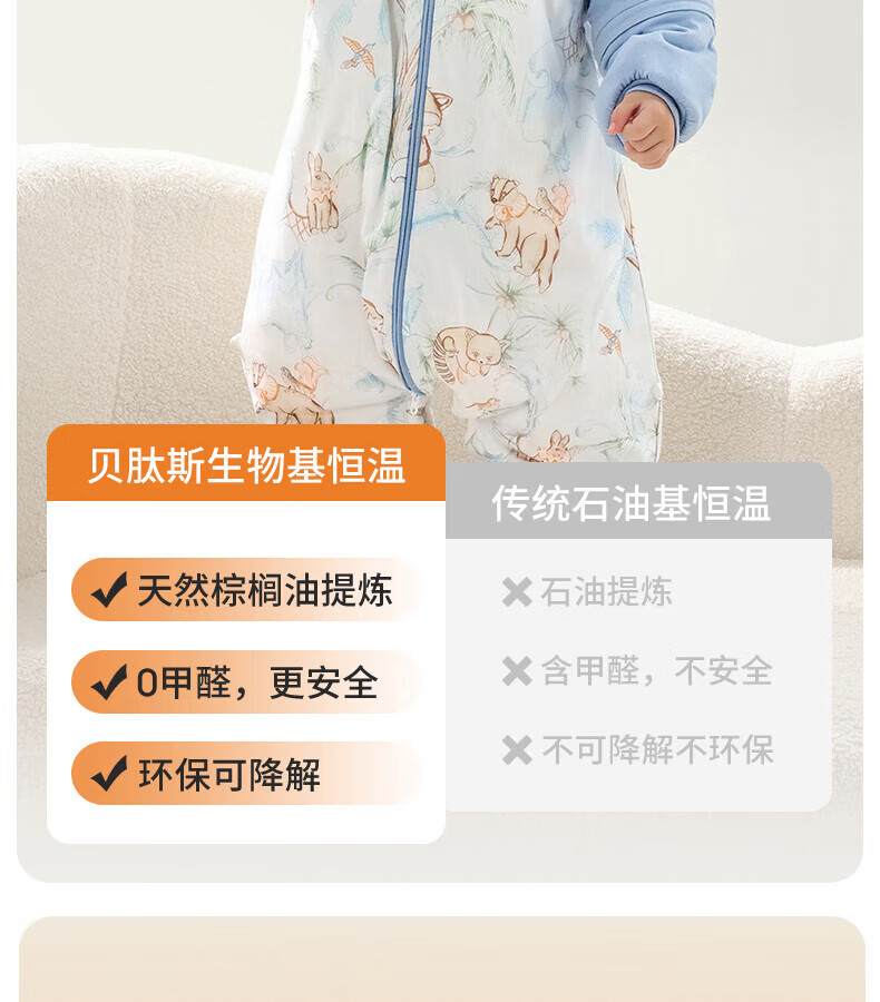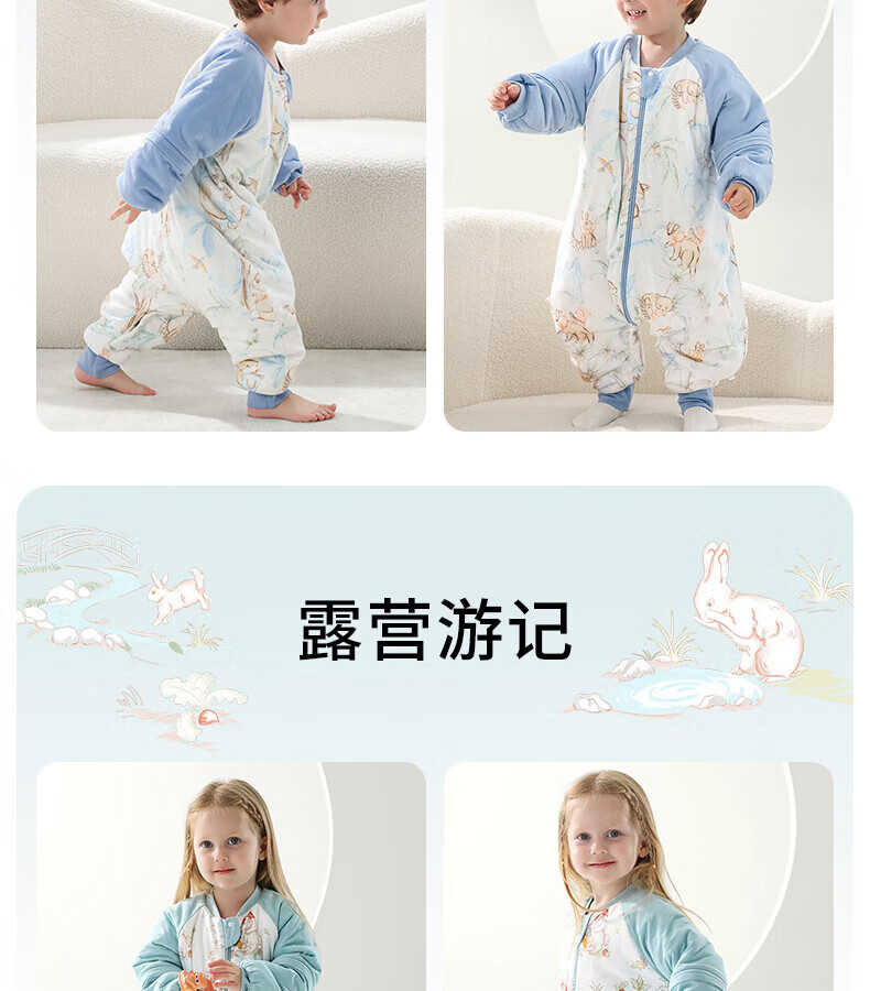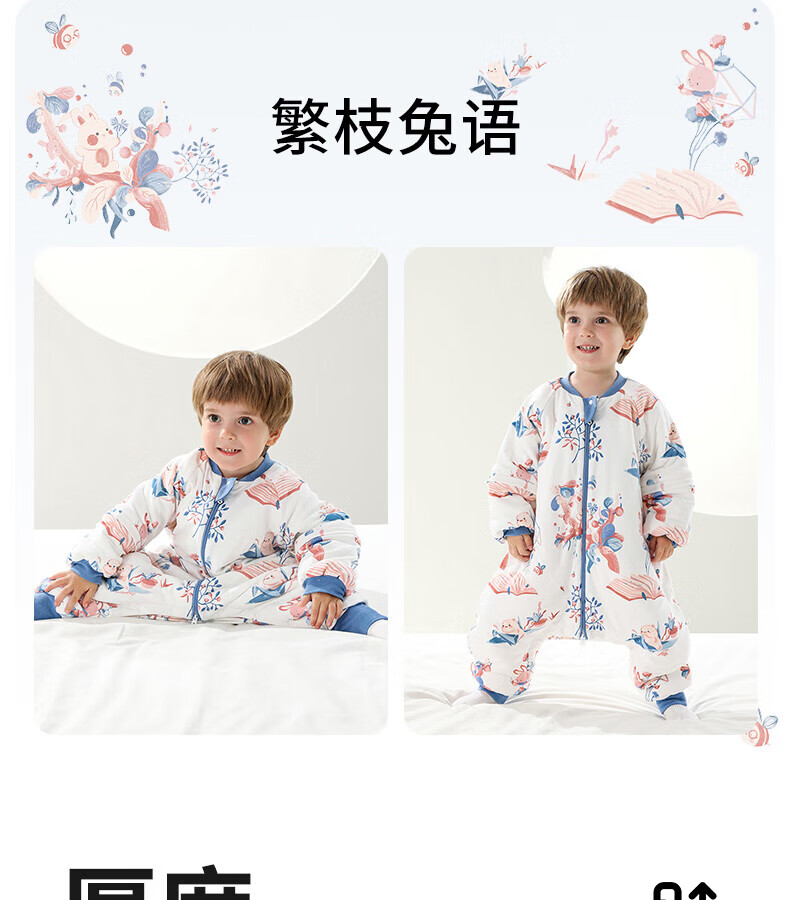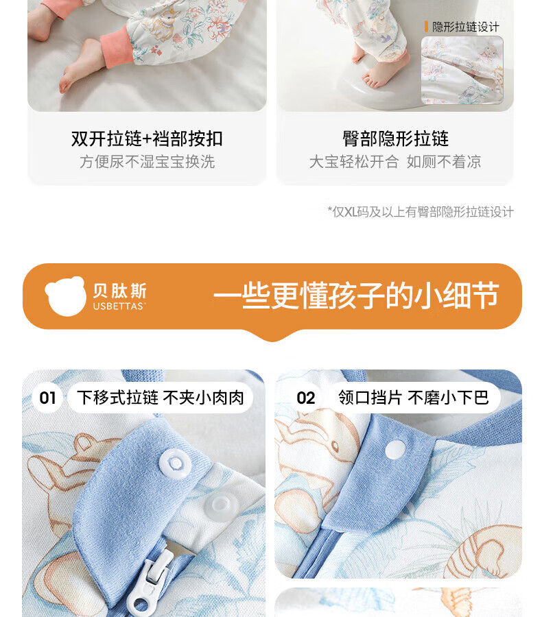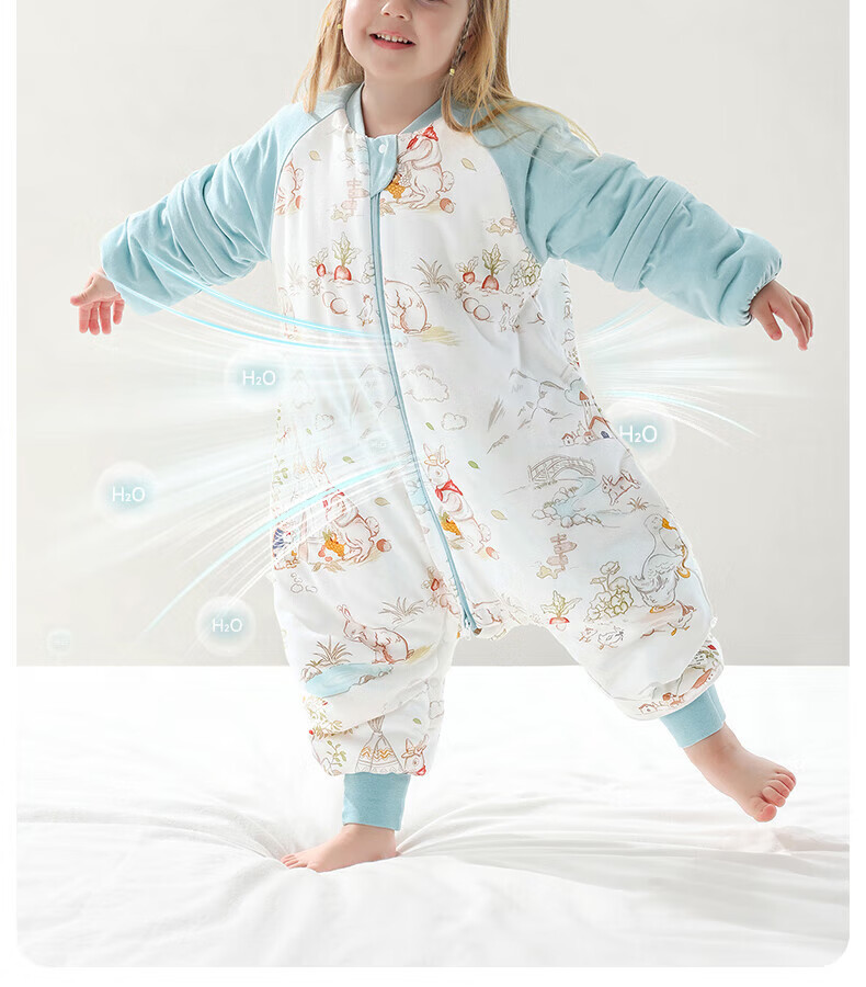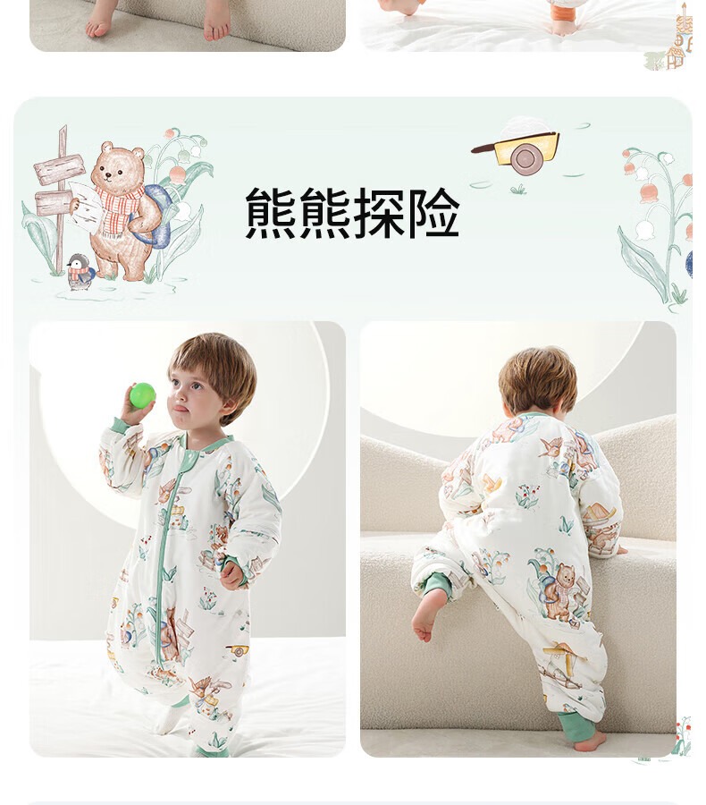 贝肽斯睡袋婴儿春秋冬新生儿宝宝恒温分腿睡袋儿童防踢被保暖分腿连体衣 熊熊探险【春秋双层 室温20-26℃】导湿排汗 M【80-95cm】15个月-2.5岁