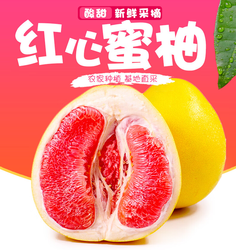 京觅梅州红心蜜柚 2粒净重4.5-5斤 当季新鲜采摘 源头直发包邮