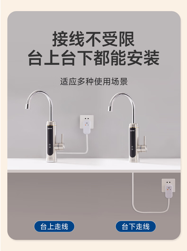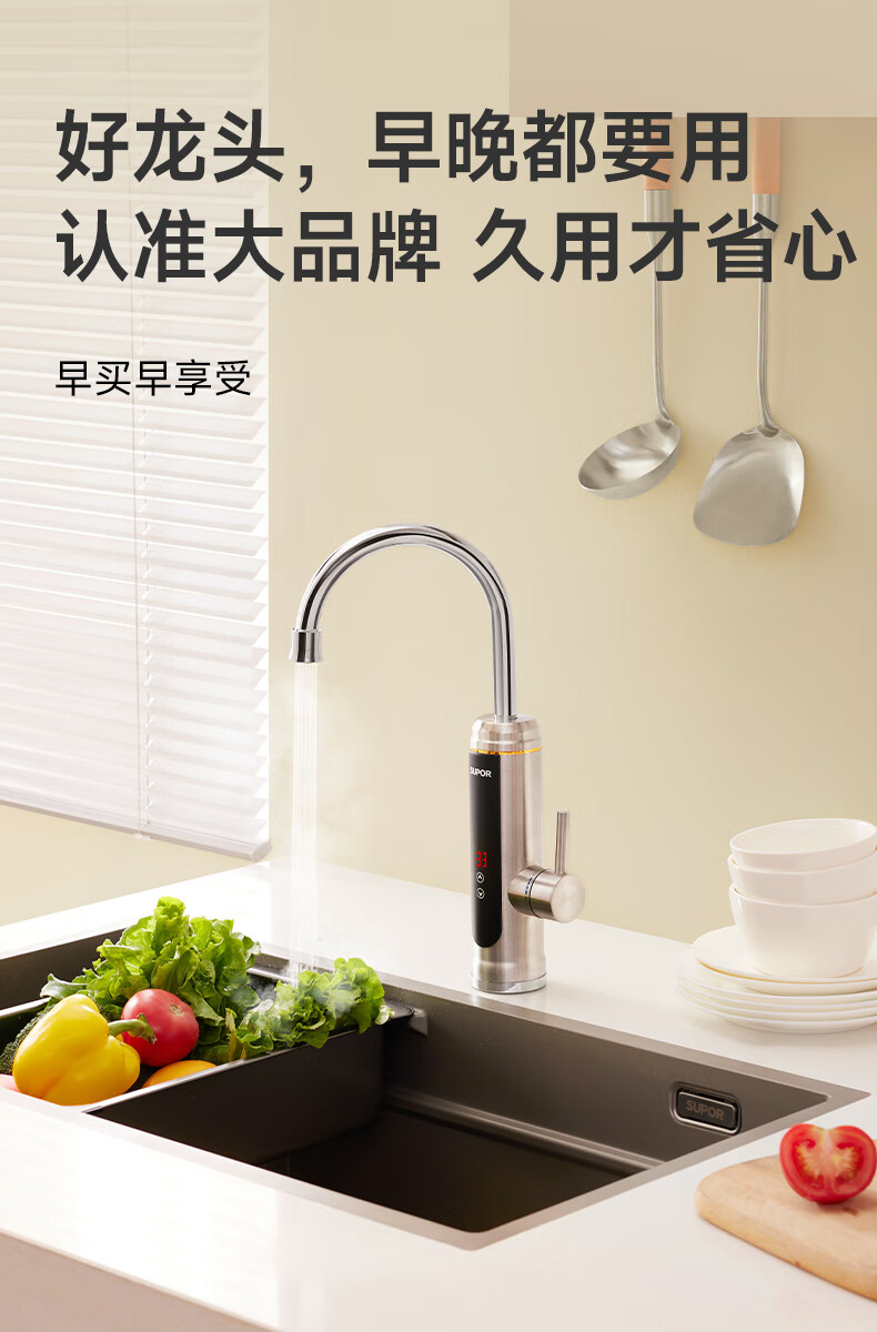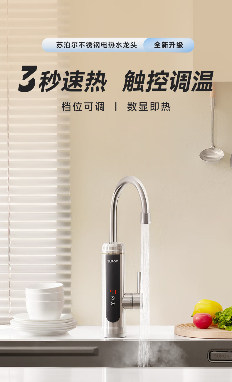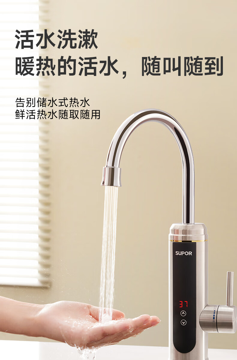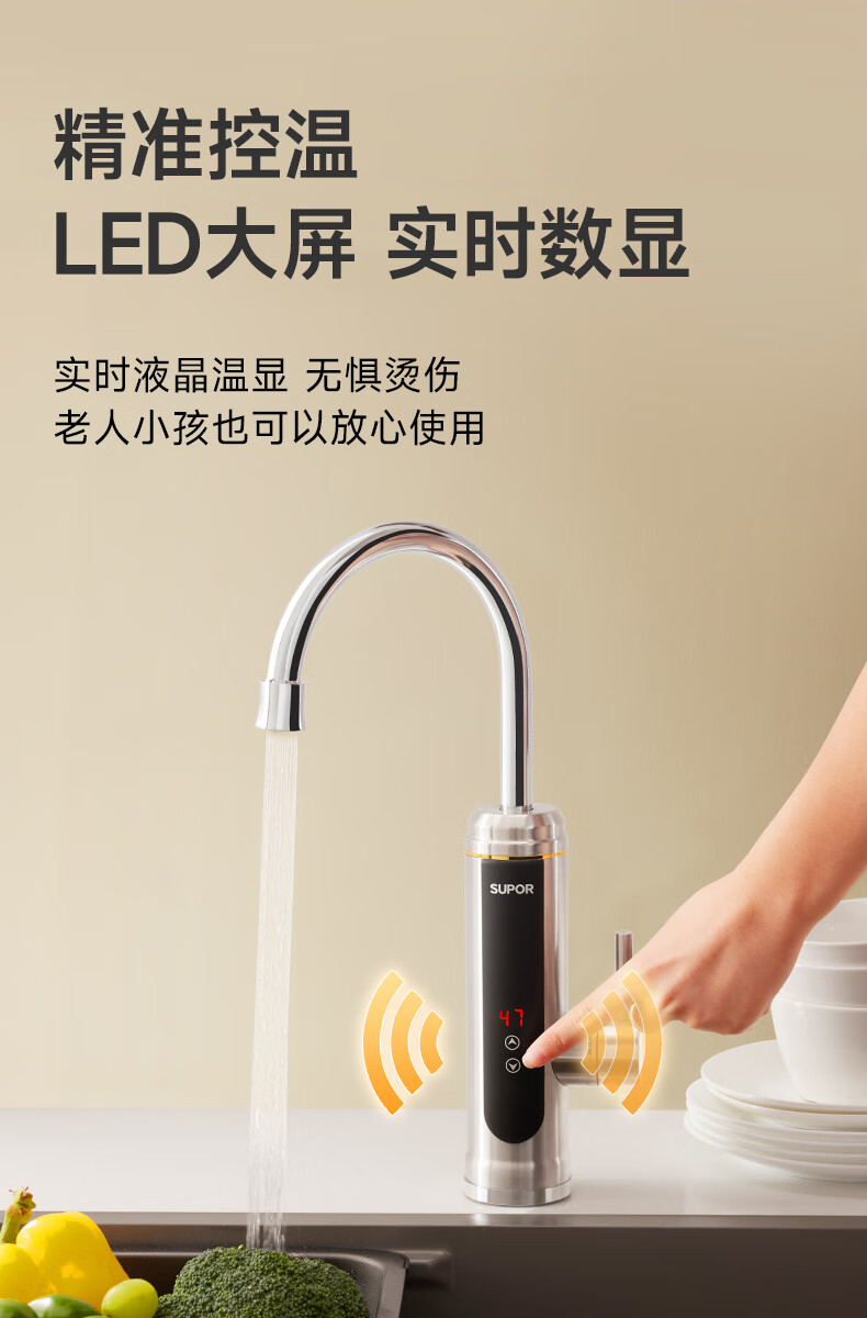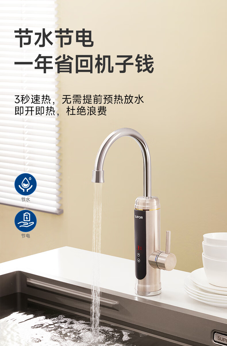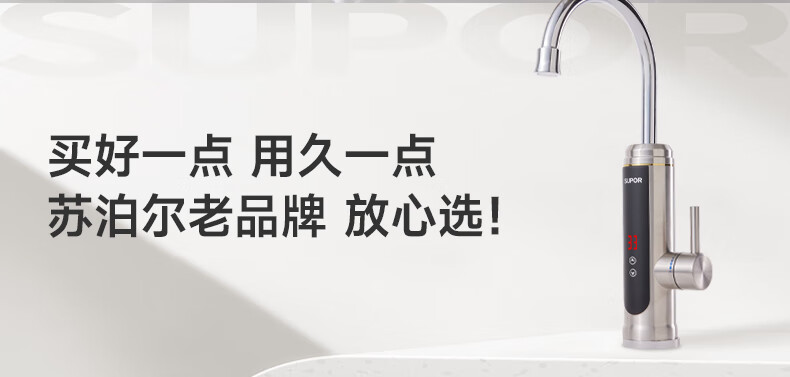 苏泊尔(SUPOR)可调档不锈钢智能电热水龙头即热式速热冷热两用厨房阳台热水器S