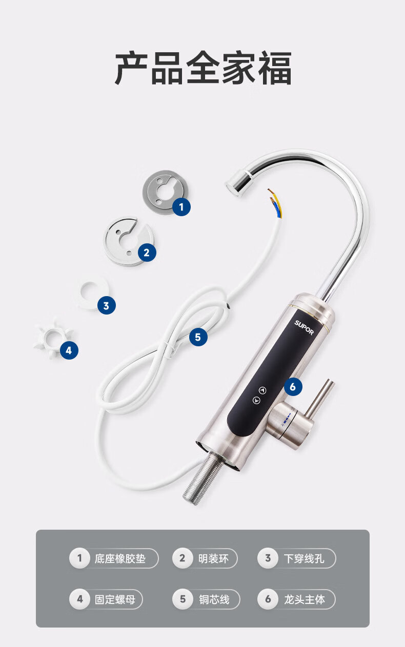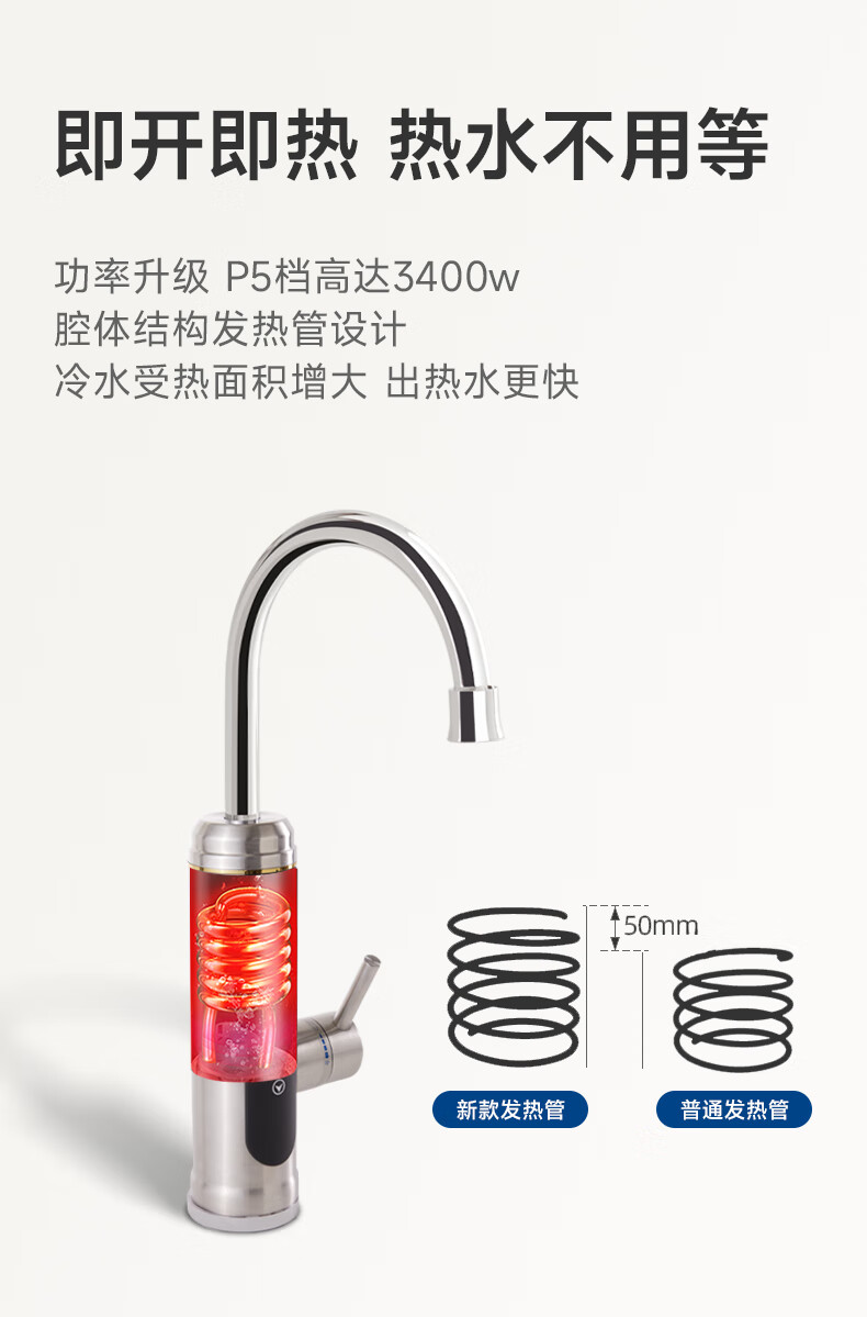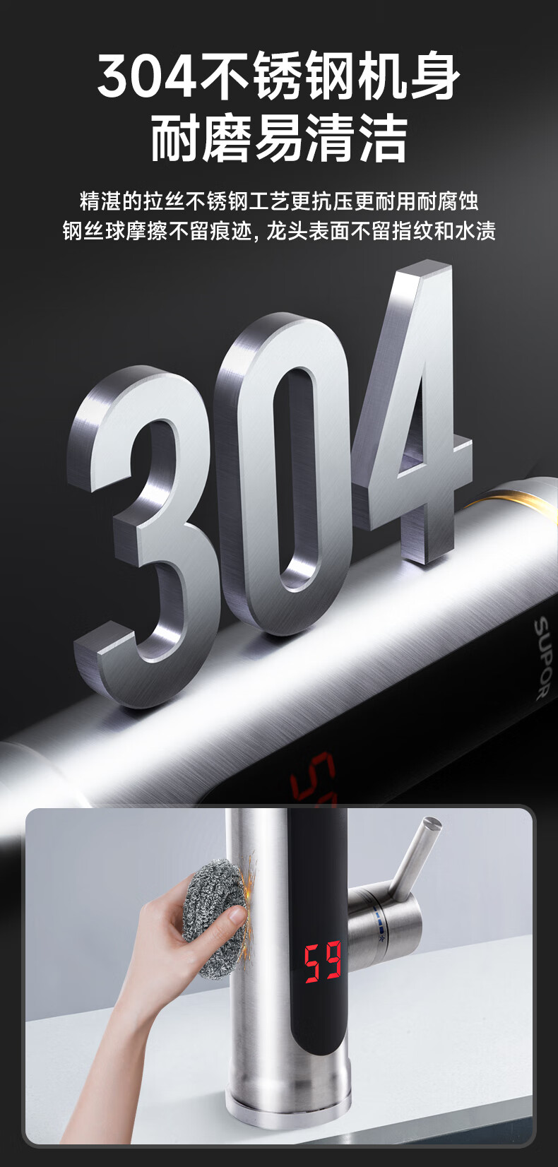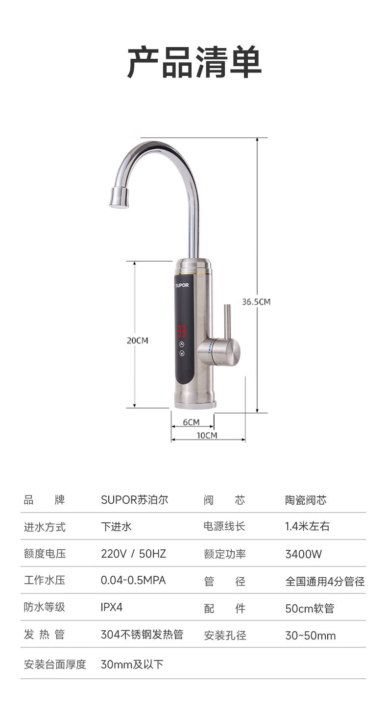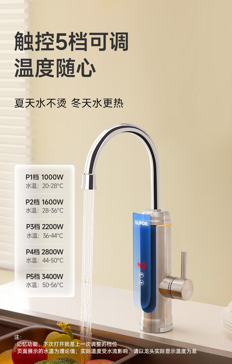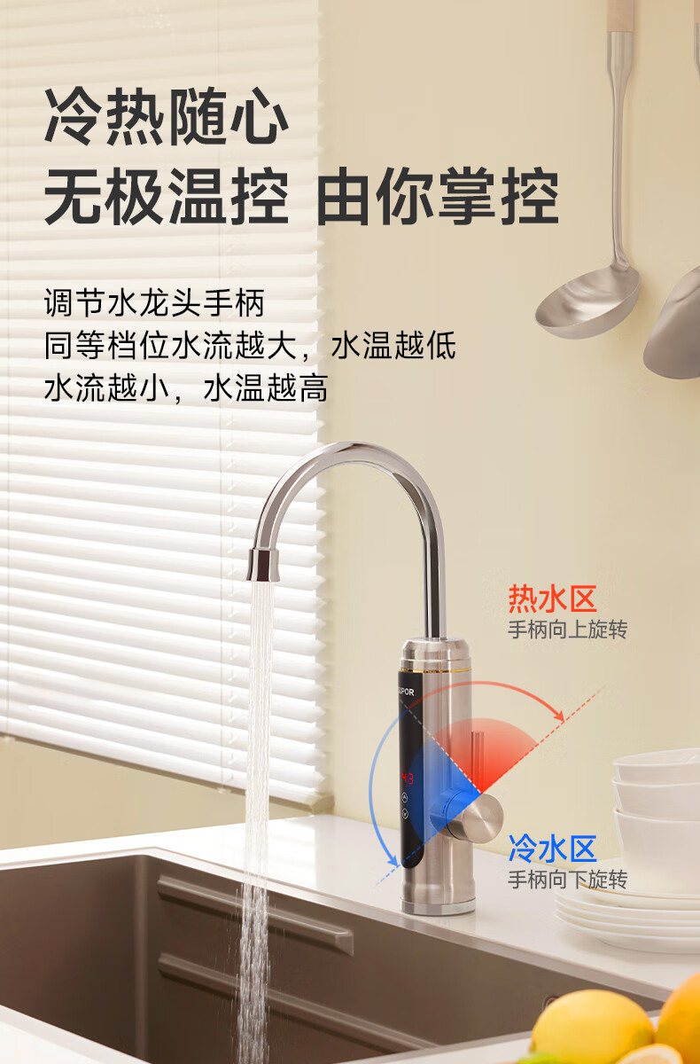 苏泊尔(SUPOR)可调档不锈钢智能电热水龙头即热式速热冷热两用厨房阳台热水器S