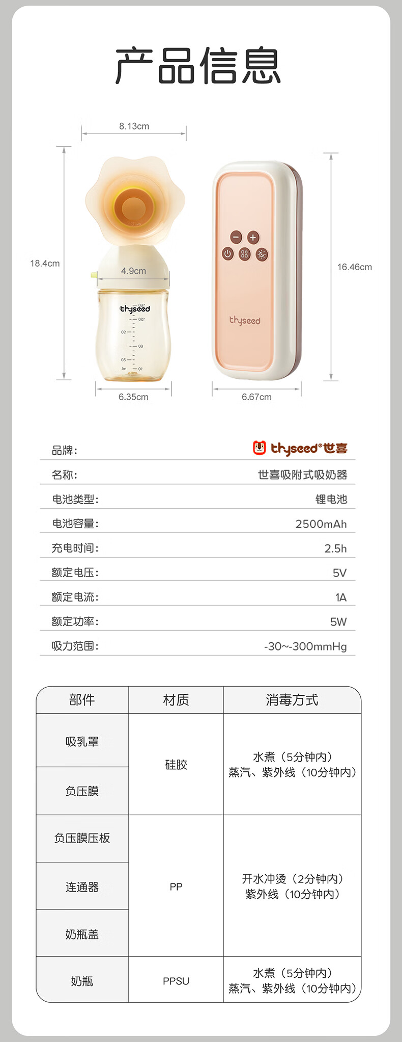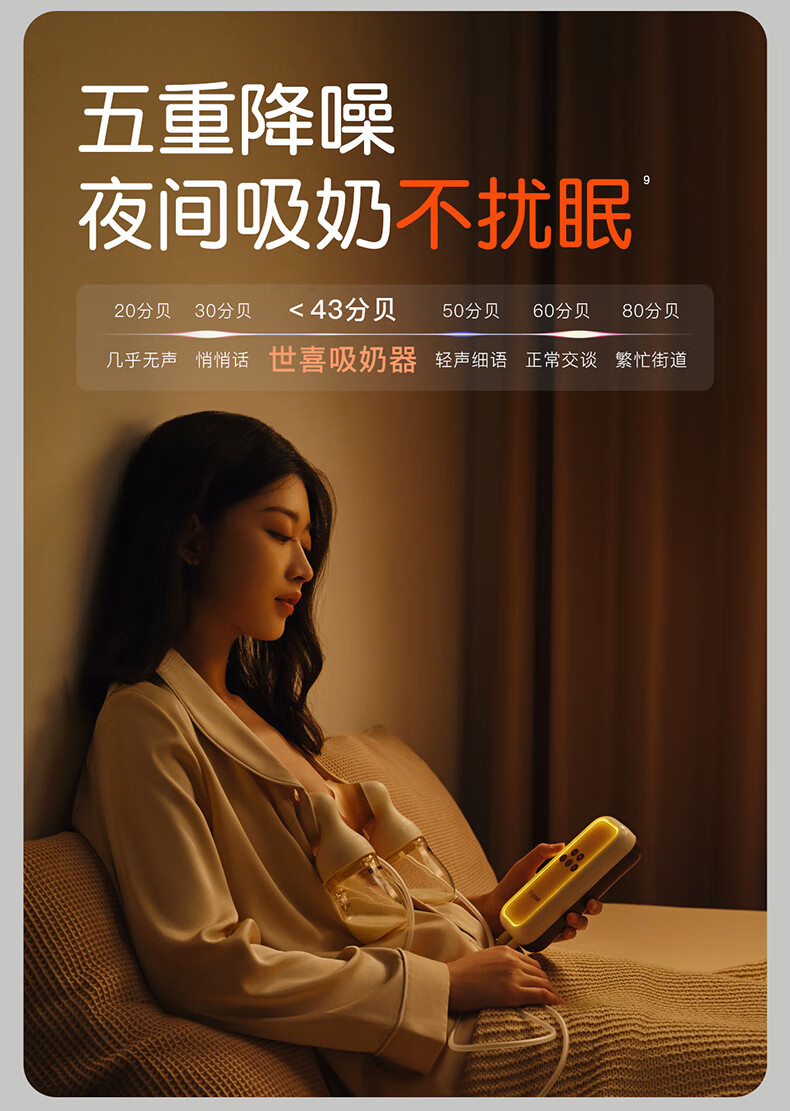 世喜吸奶器 电动无痛全自动免手扶双边吸奶器-吸乳罩
