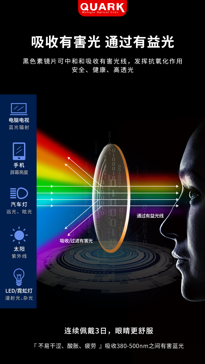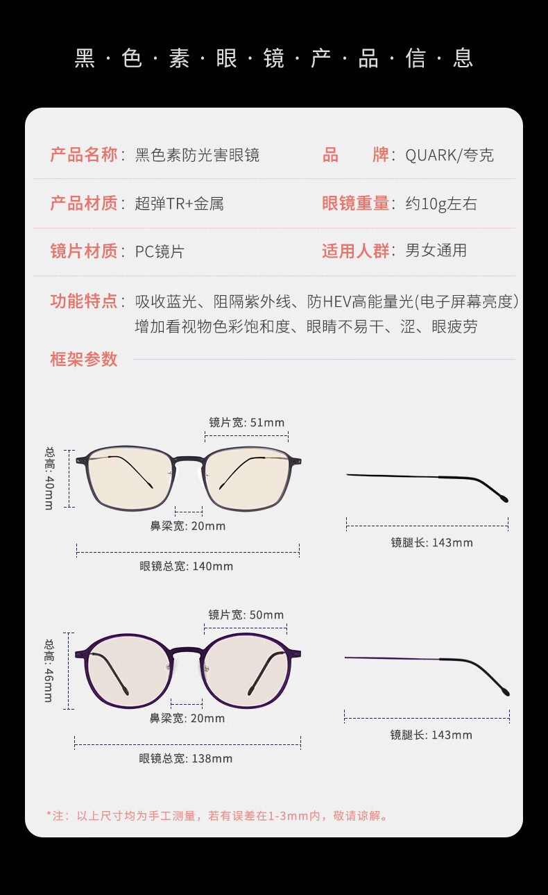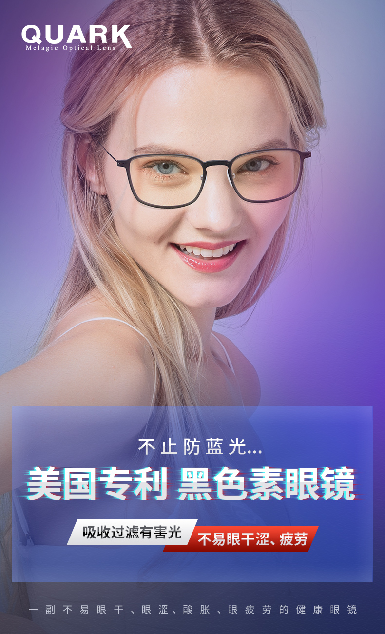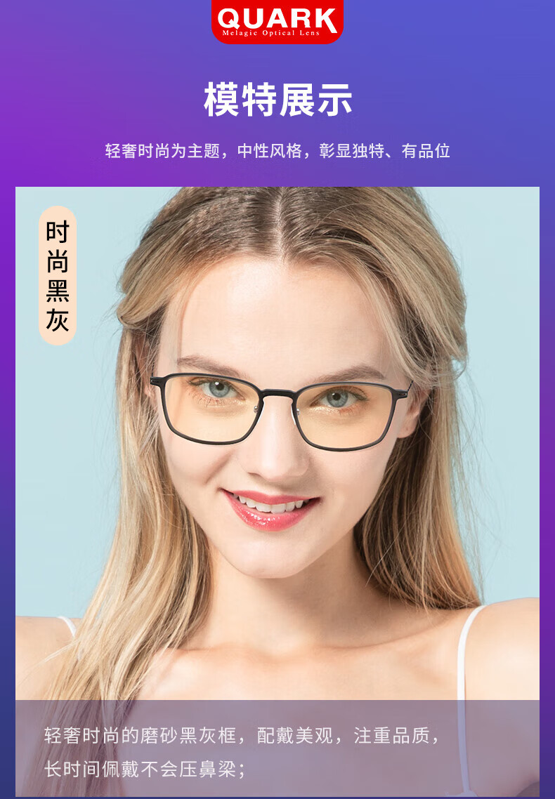 Quark防蓝光眼镜电脑办公辐射护目防紫外线干涩超轻无度数平光镜206红